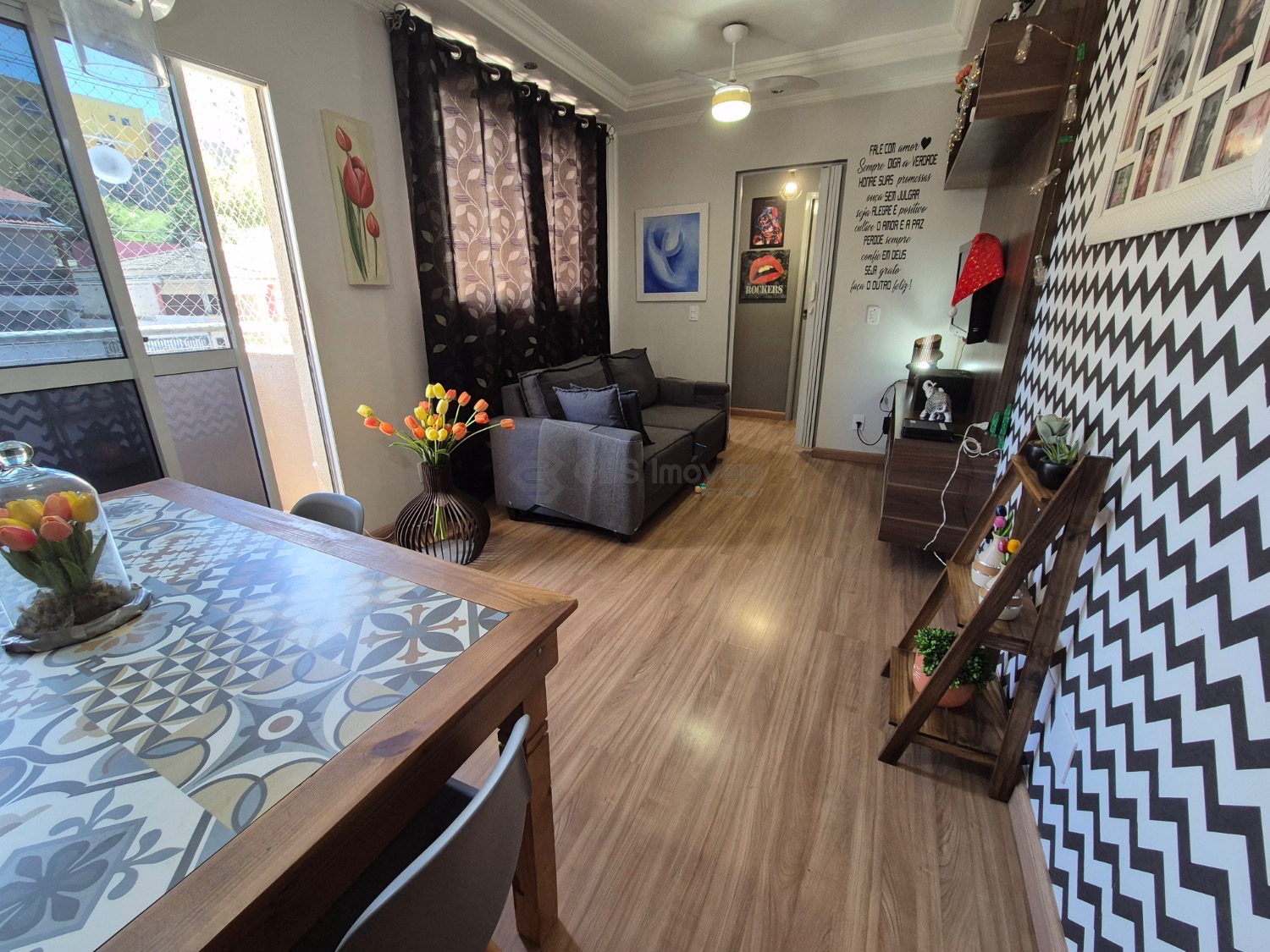 O apartamento possui 76 m² de área útil, distribuídos em 2 dormitórios, com sala ampla e bem iluminada, cozinha planejada, banheiro e 1 vaga de garagem coberta. Os quartos contam com moveis planejados e está situado em um condomínio fechado com portaria eletrônica, oferecendo segurança e praticidade.