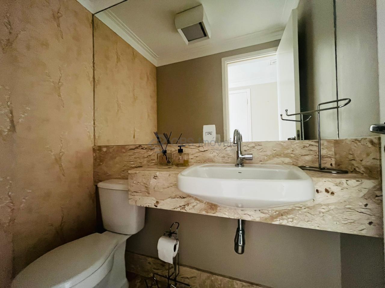 Na área íntima do apartamento possui 3 dormitórios, sendo 3 suítes com ar-condicionado. Lavabo, no total possui 4 banheiros. Varanda gourmet com churrasqueira a carvão, vista para o lazer do condomínio.