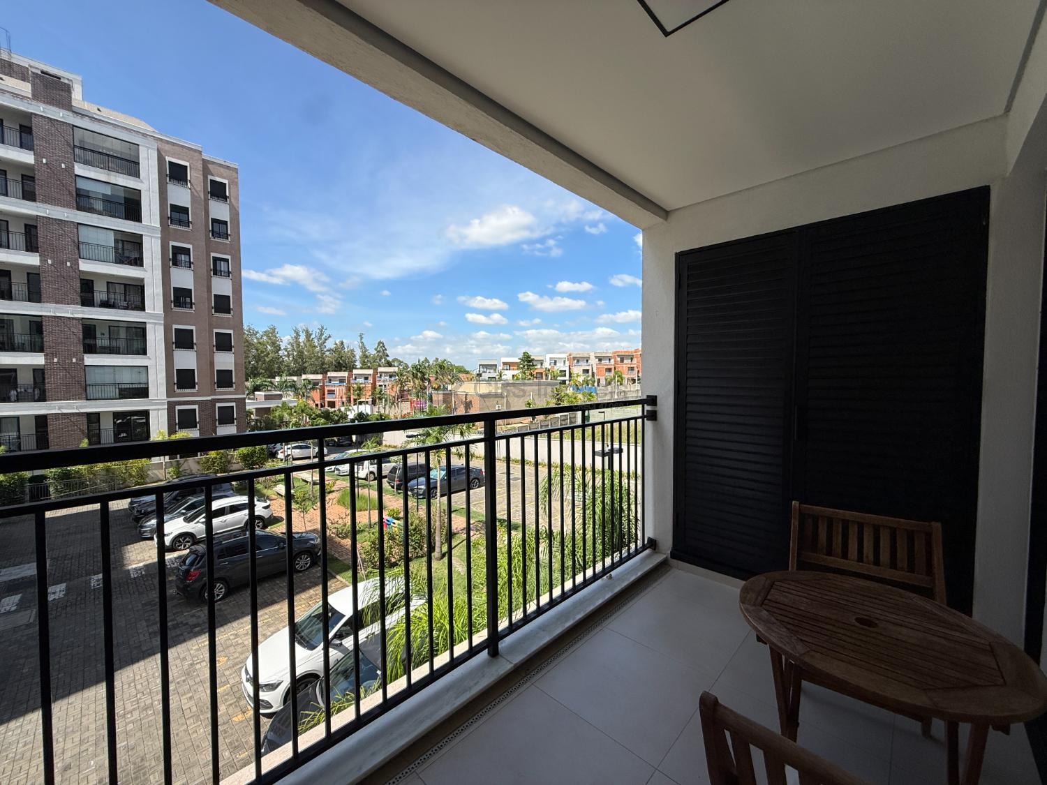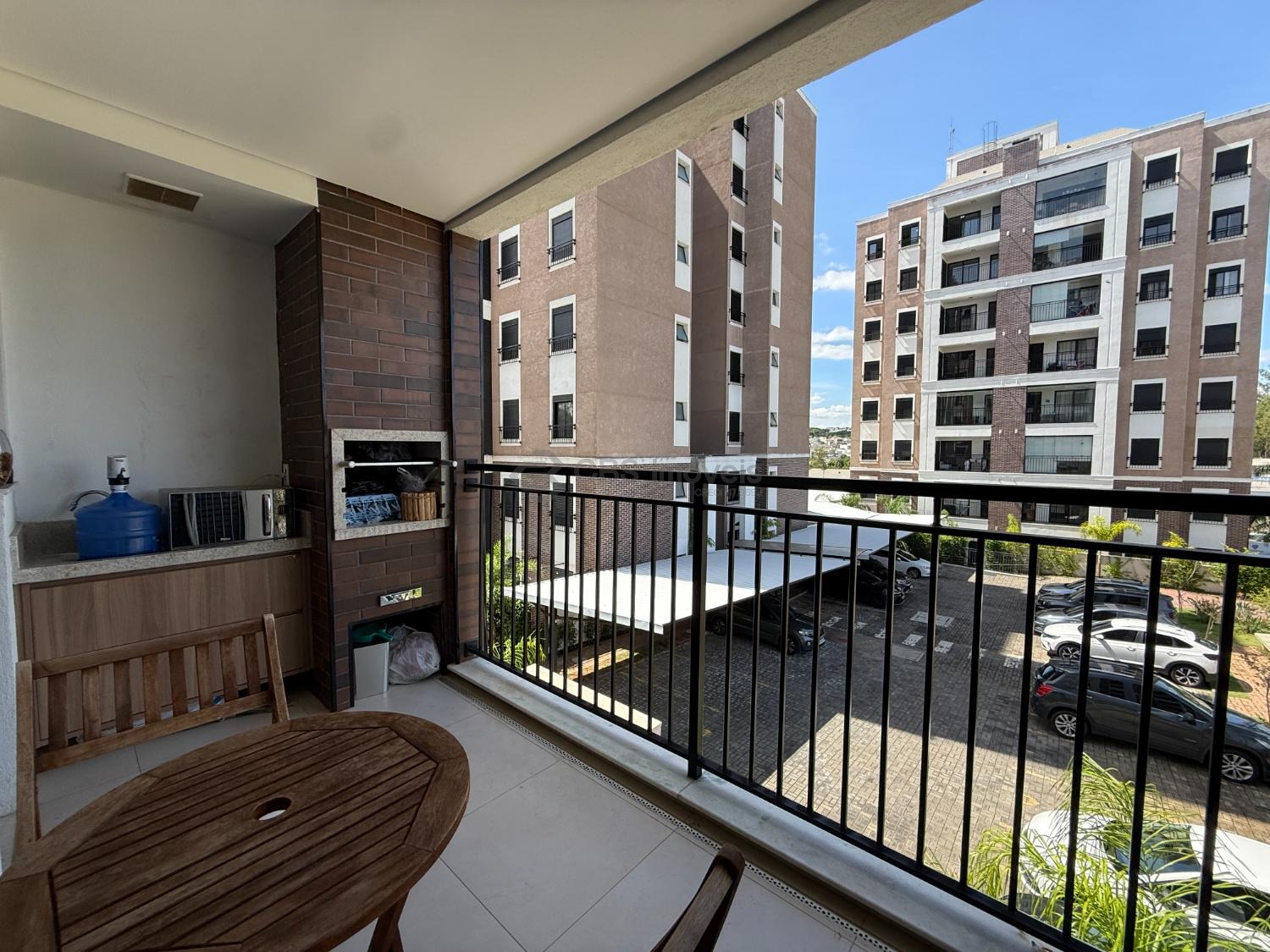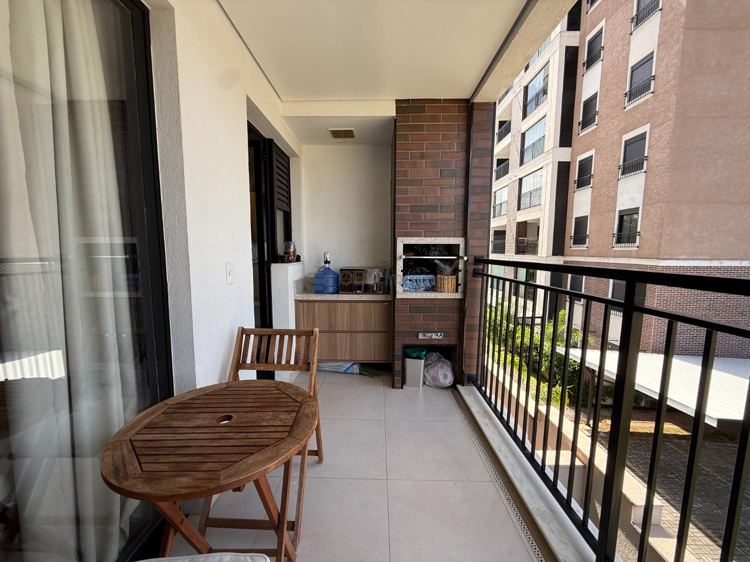 O apartamento fica em andar baixo, possui varanda gourmet com churrasqueira, suíte, banheiros e cozinha completos com armários.