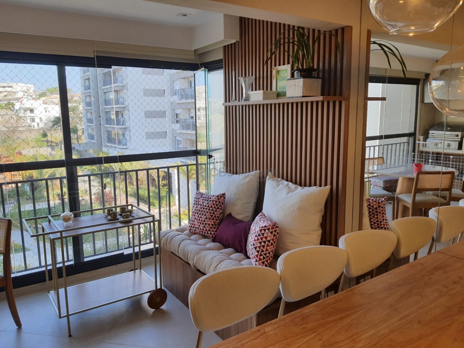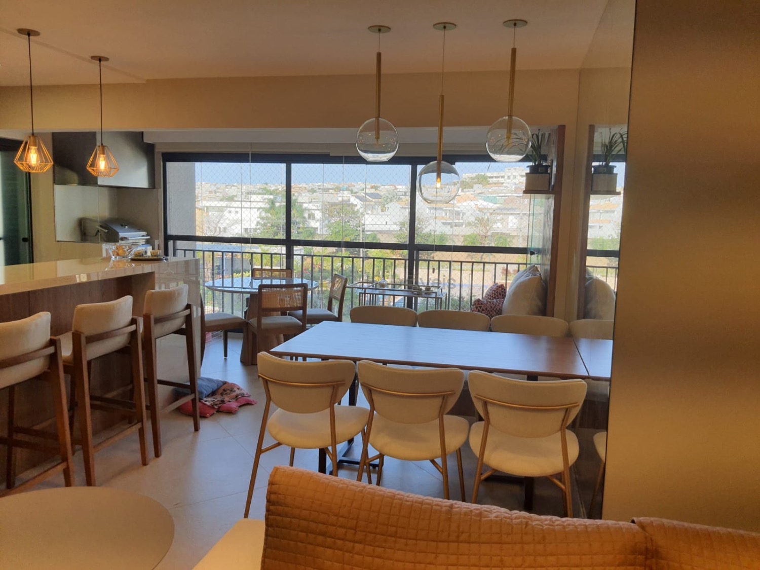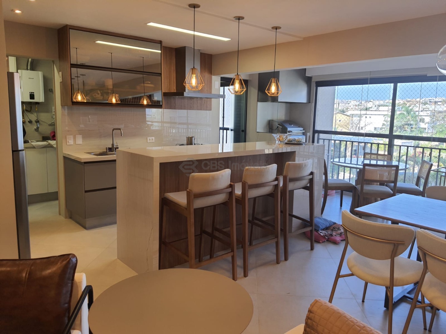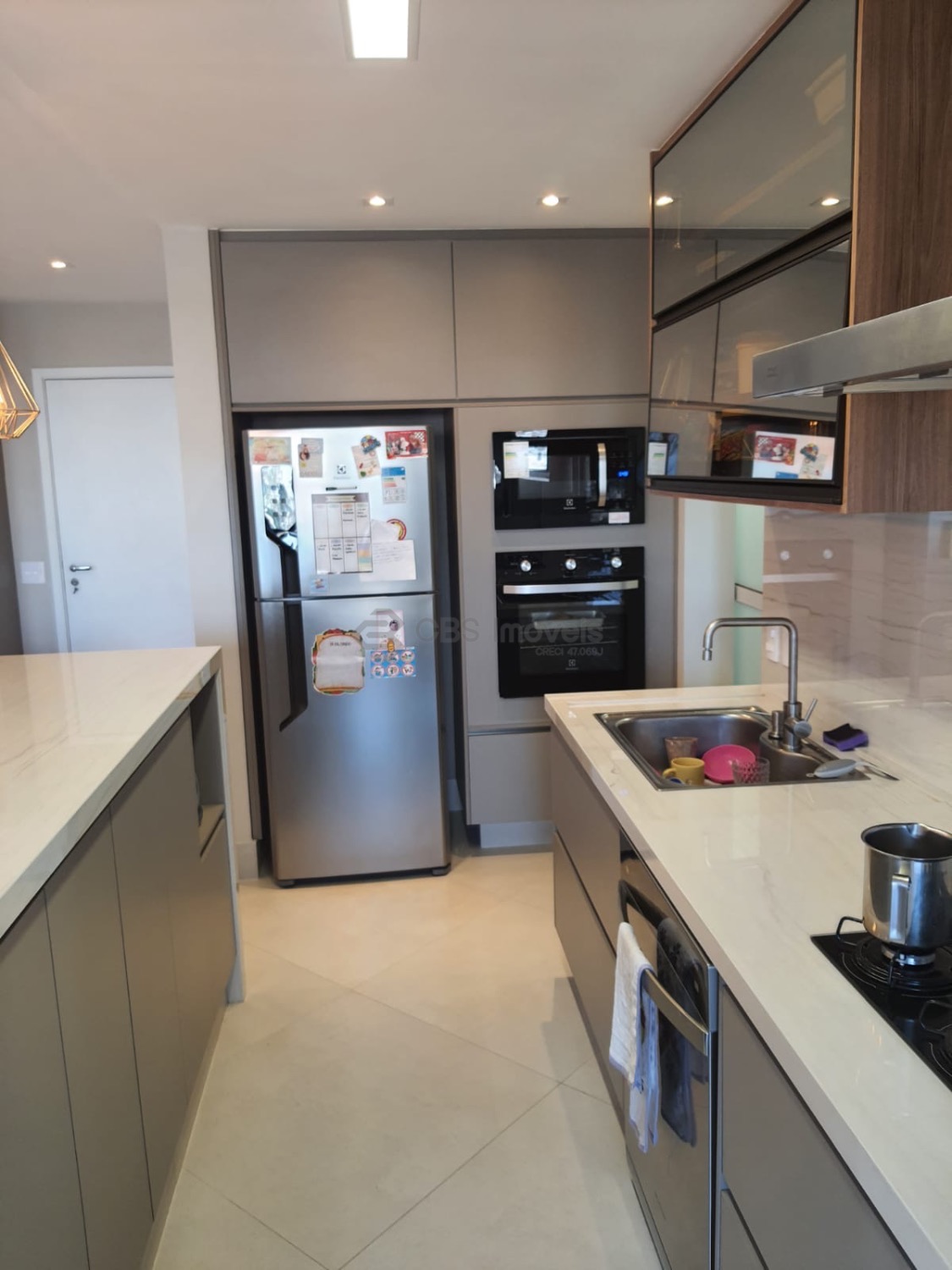 Possui planejados, 03 dormitórios sendo 01 suíte, cozinha integrada com as salas de estar, jantar e varanda gourmet com churrasqueira, fechamento em vidro e cortina, lavabo, área de serviço, varanda e 02 vagas.