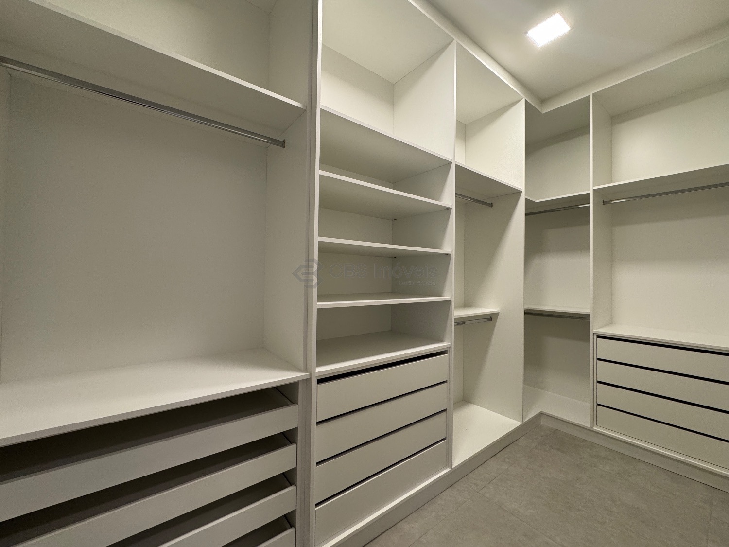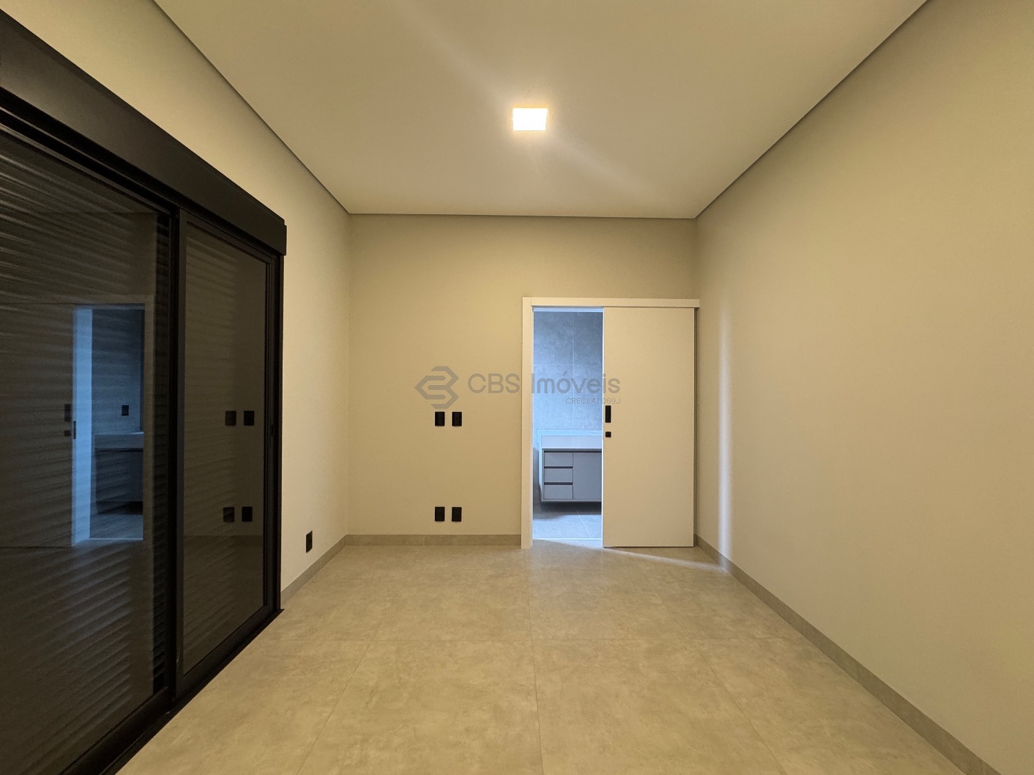 Os três quartos dessa casa são suítes completas de armários, com ares condicionados instalados e persianas elétricas.