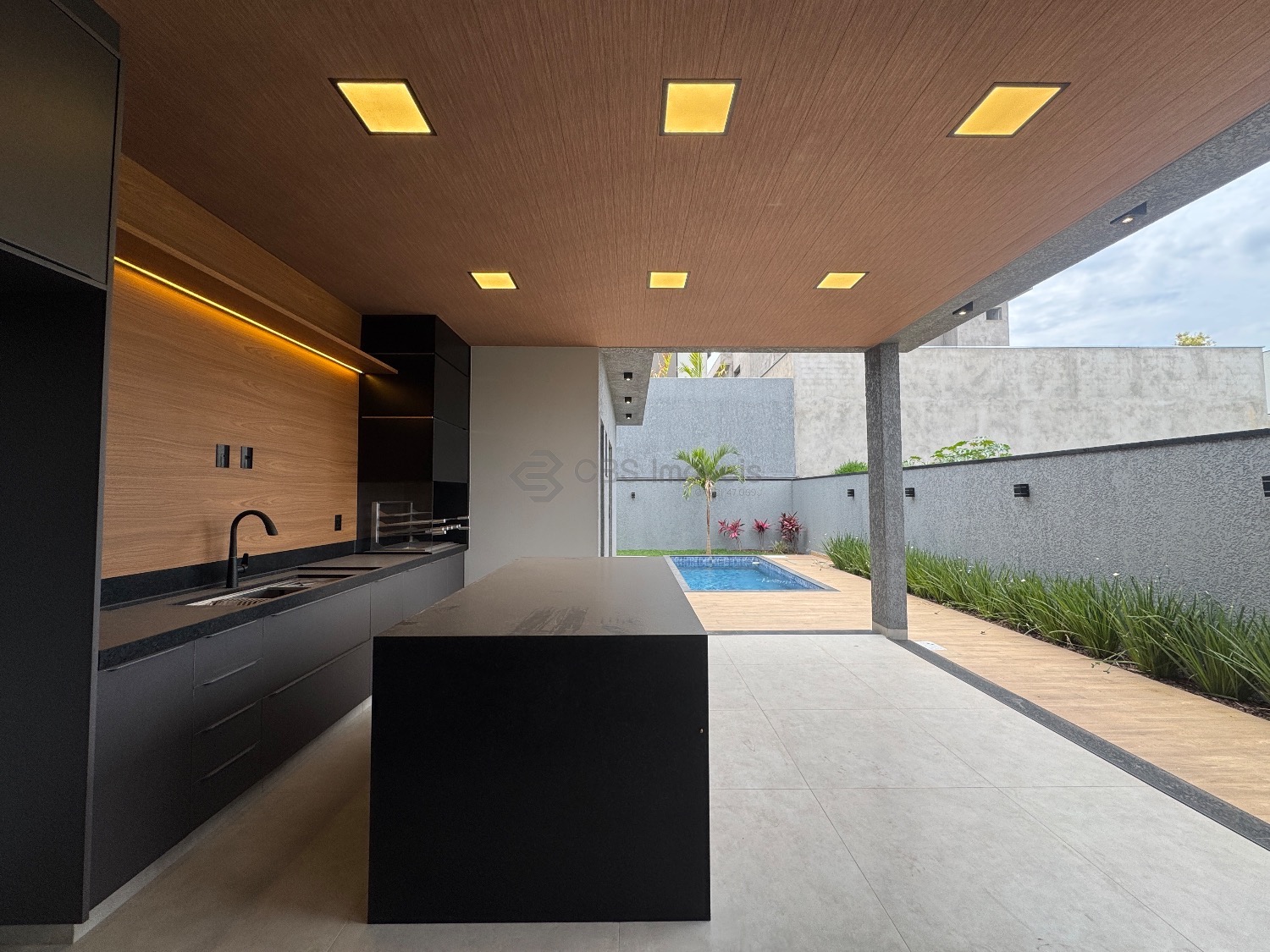Ela possui uma linda cozinha tipo americana com ilha, completa de armários, sala com pé direito duplo para 2 ambientes, lavabo e escritório.