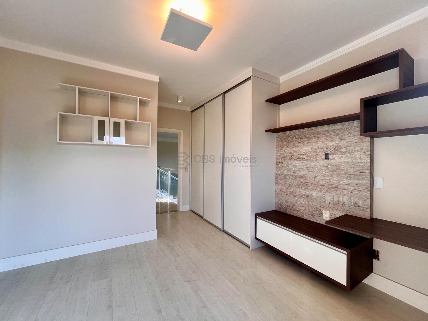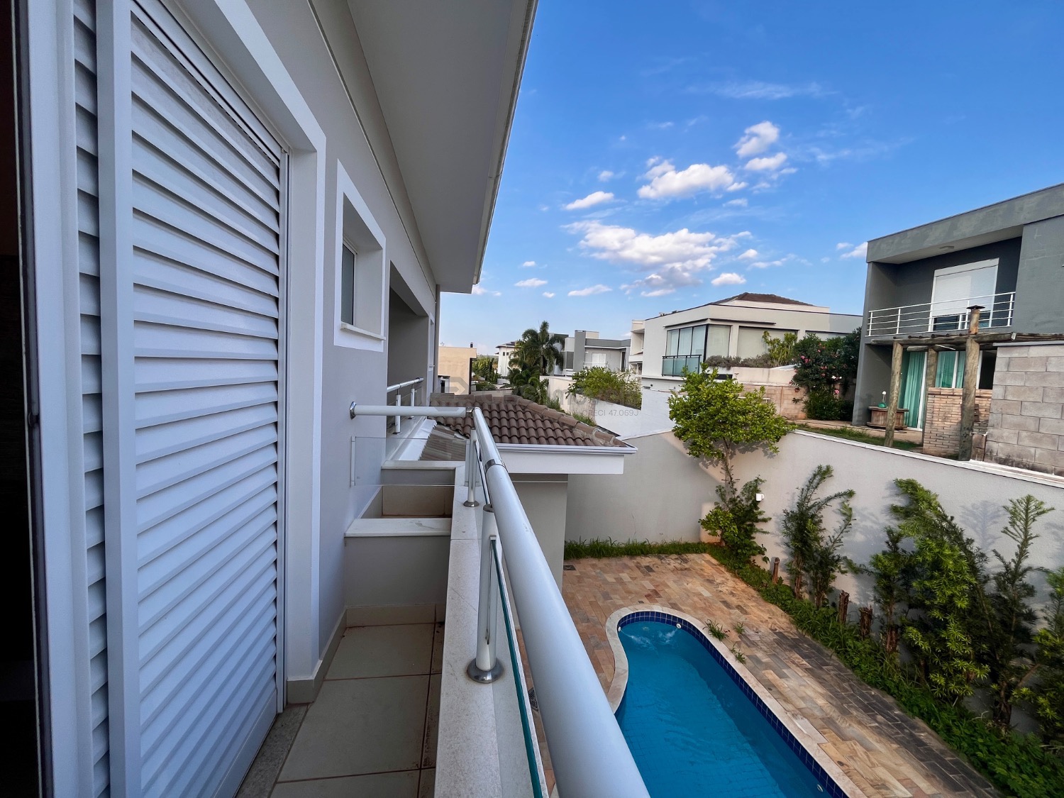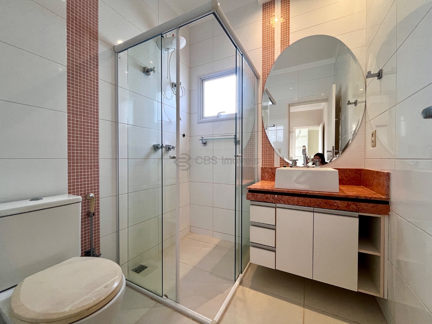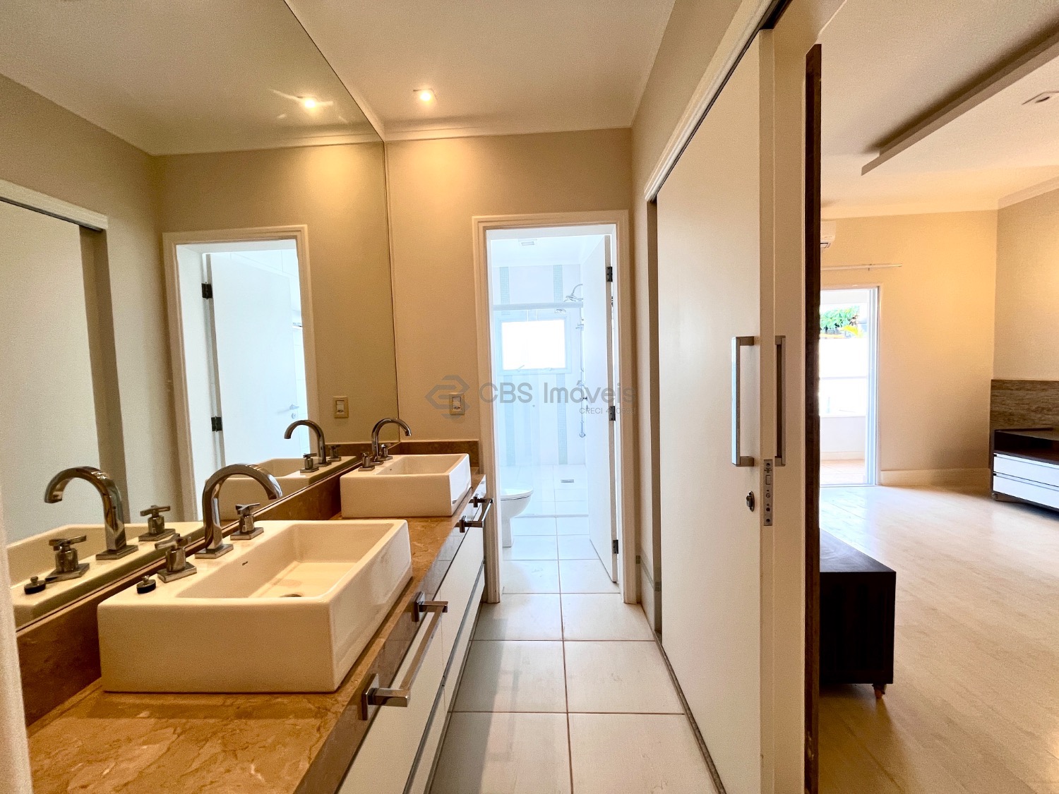 No andar superior temos 3 quartos que são suítes avarandadas, completas de armários, persianas elétricas e ares condicionados já instalados. A suíte master possui closet e banheira de hidromassagem.