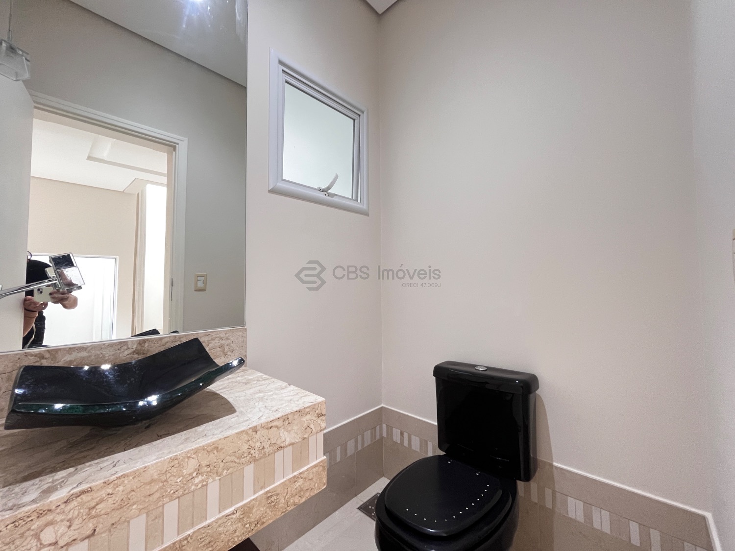 No térreo temos cozinha completa de armários, sala com pé direito duplo para 2 ambientes e lavabo. Sendo uma casa tão completa, possui quarto no térreo que pode ser usado como home theater ou escritório.