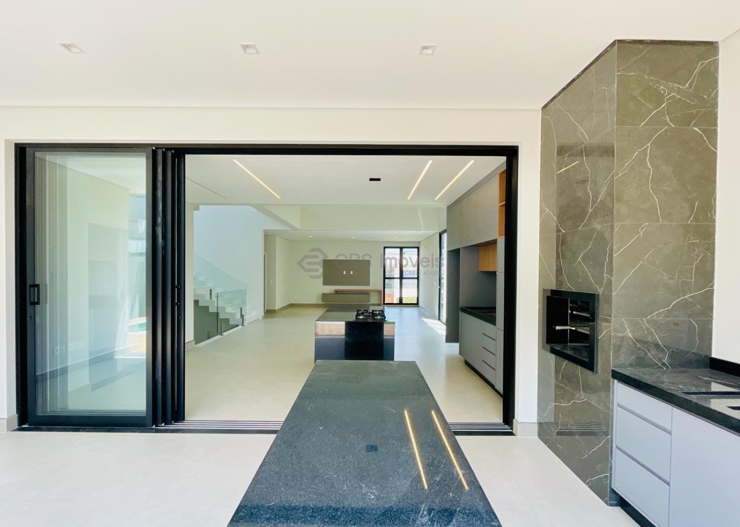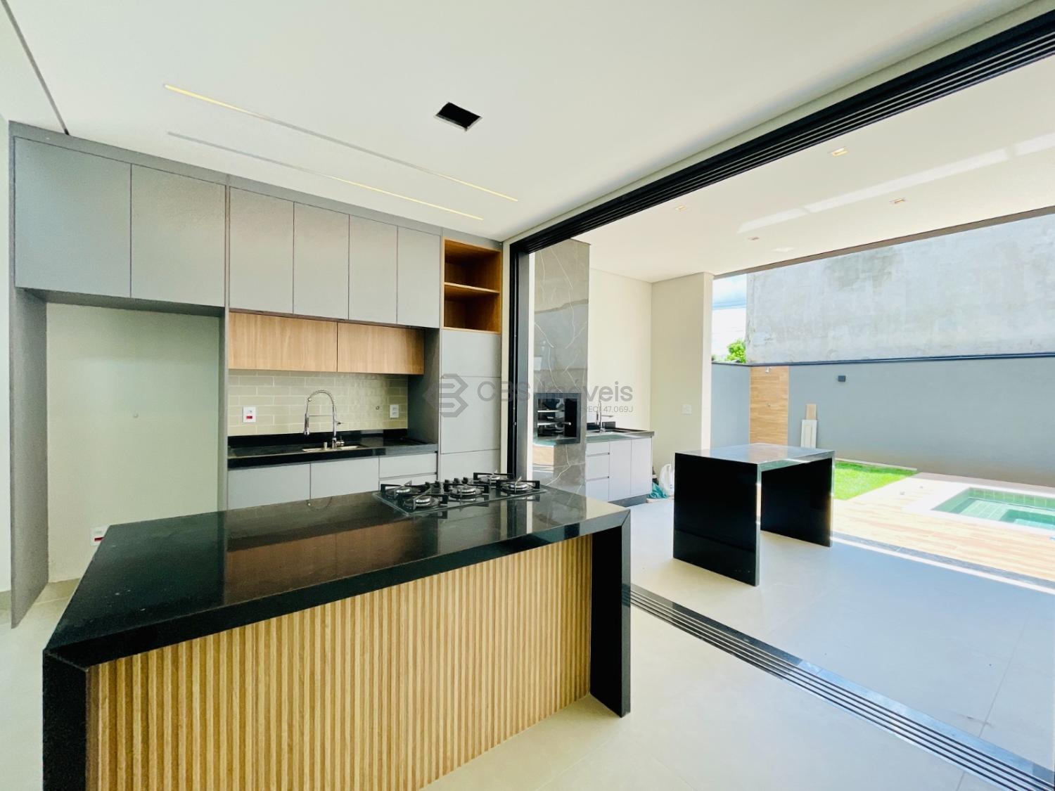 No térreo temos uma ampla sala de jantar e estar, cozinha completa de armários, escritório, lavabo e lavanderia.