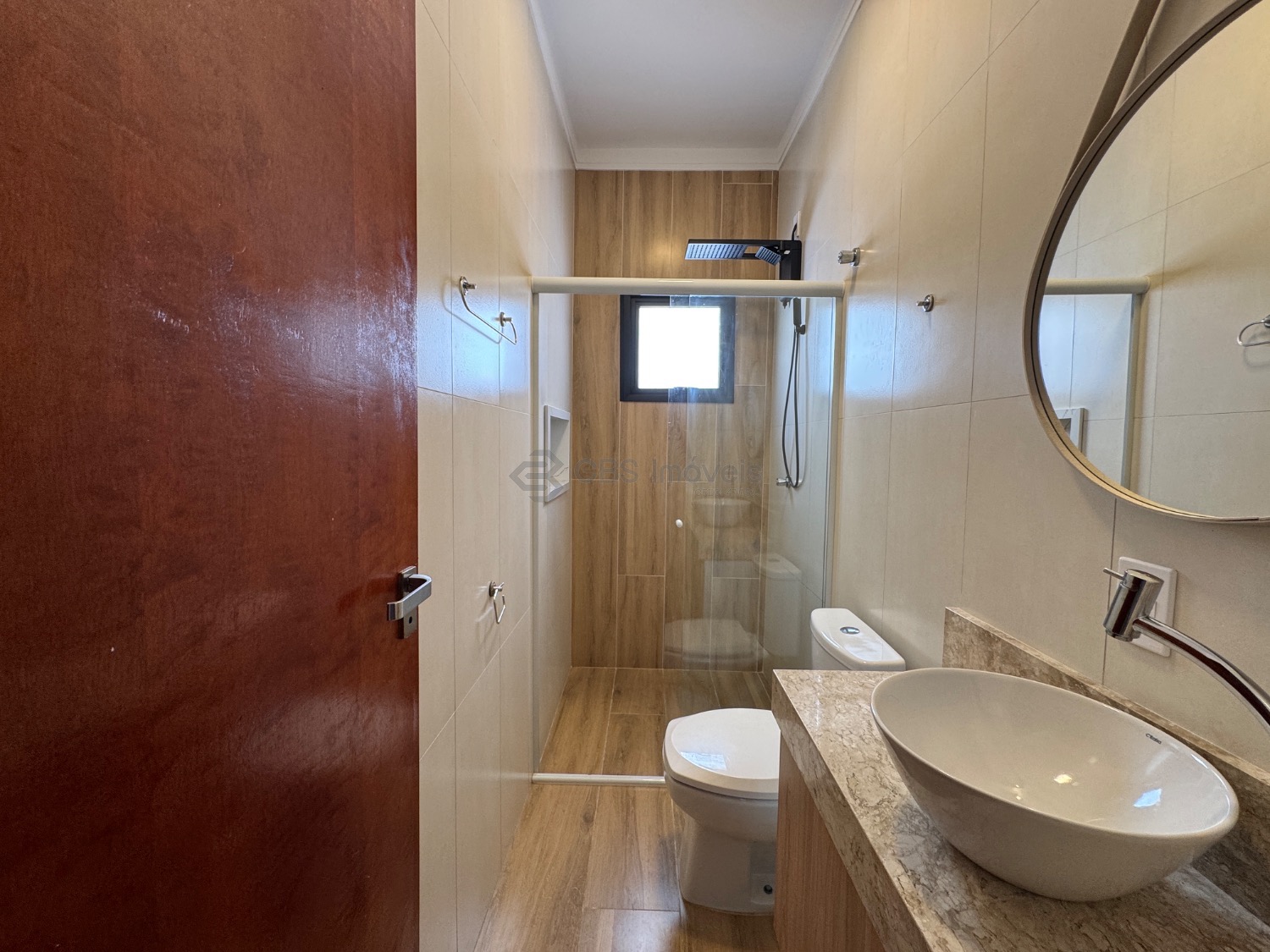 A casa possui 3 quartos sendo uma suíte com ar condicionado. Os quartos são completos de armários.