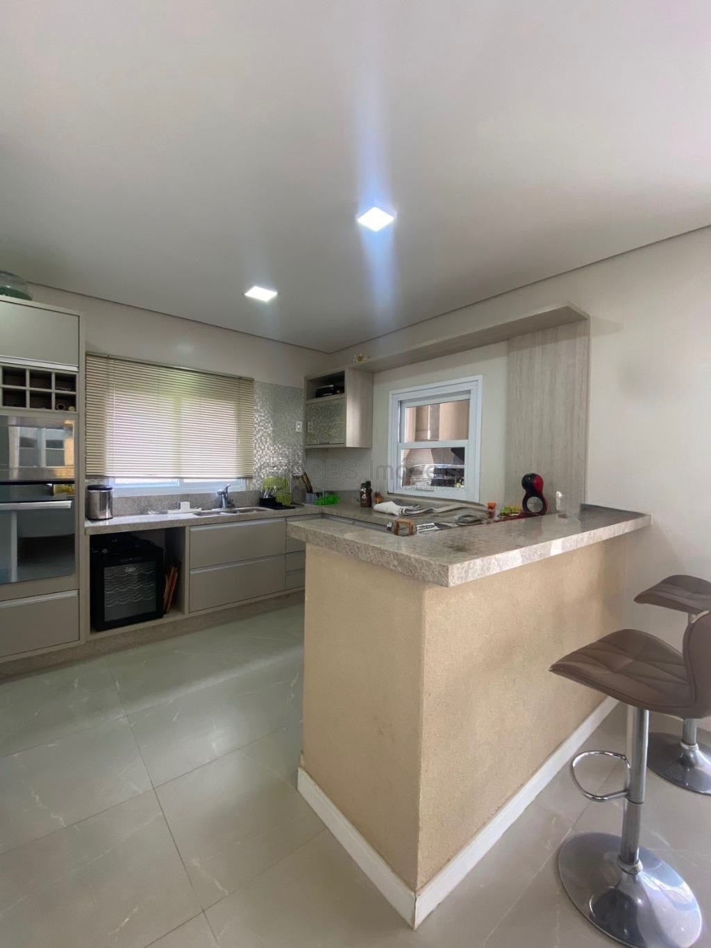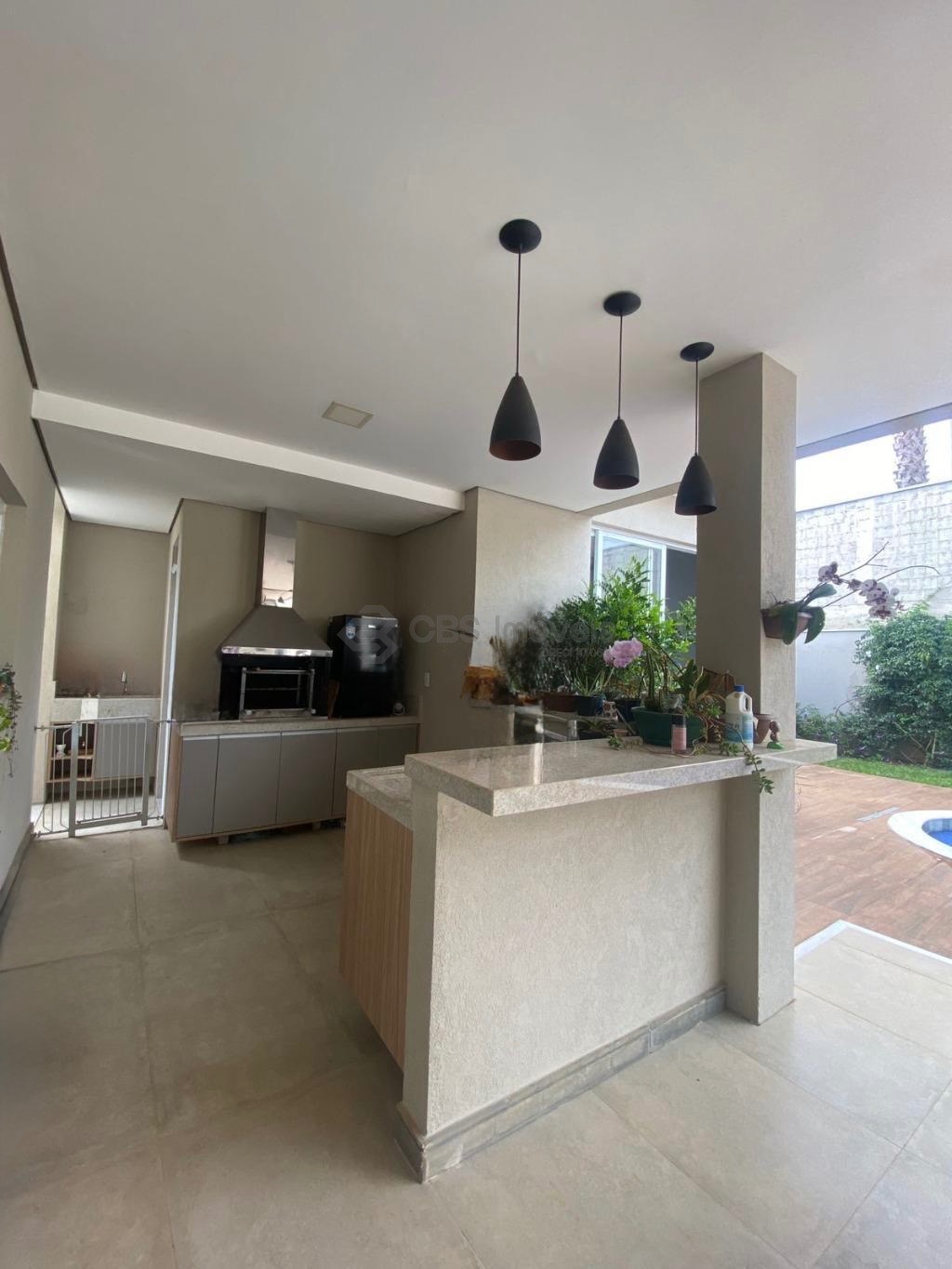 No térreo, cozinha americana, 3 salas, sala de tv, espaço gourmet com churrasqueira, piscina e quintal.