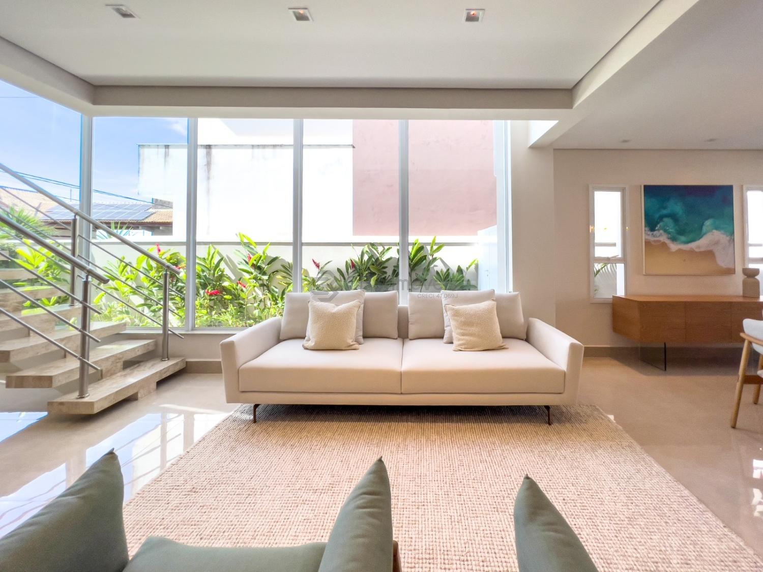 No térreo possui sala para 2 ambientes com pé direito duplo e muita integração. A cozinha é tipo americana completa com armários e ainda temos, lavabo, lavanderia e garagem para 4 carros.