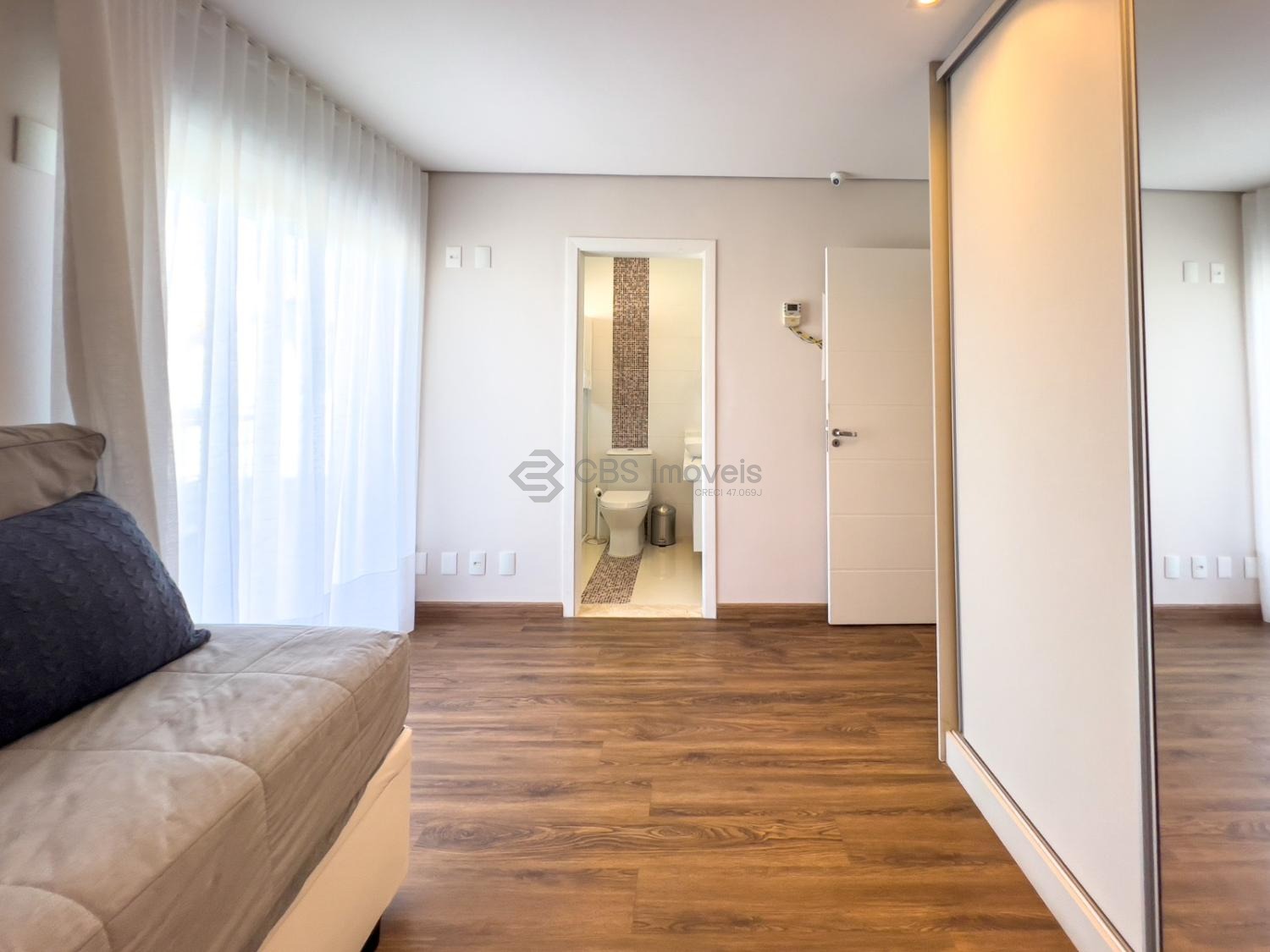 No piso superior temos 3 quartos que são suítes, sendo a master com closet, ar condicionado.