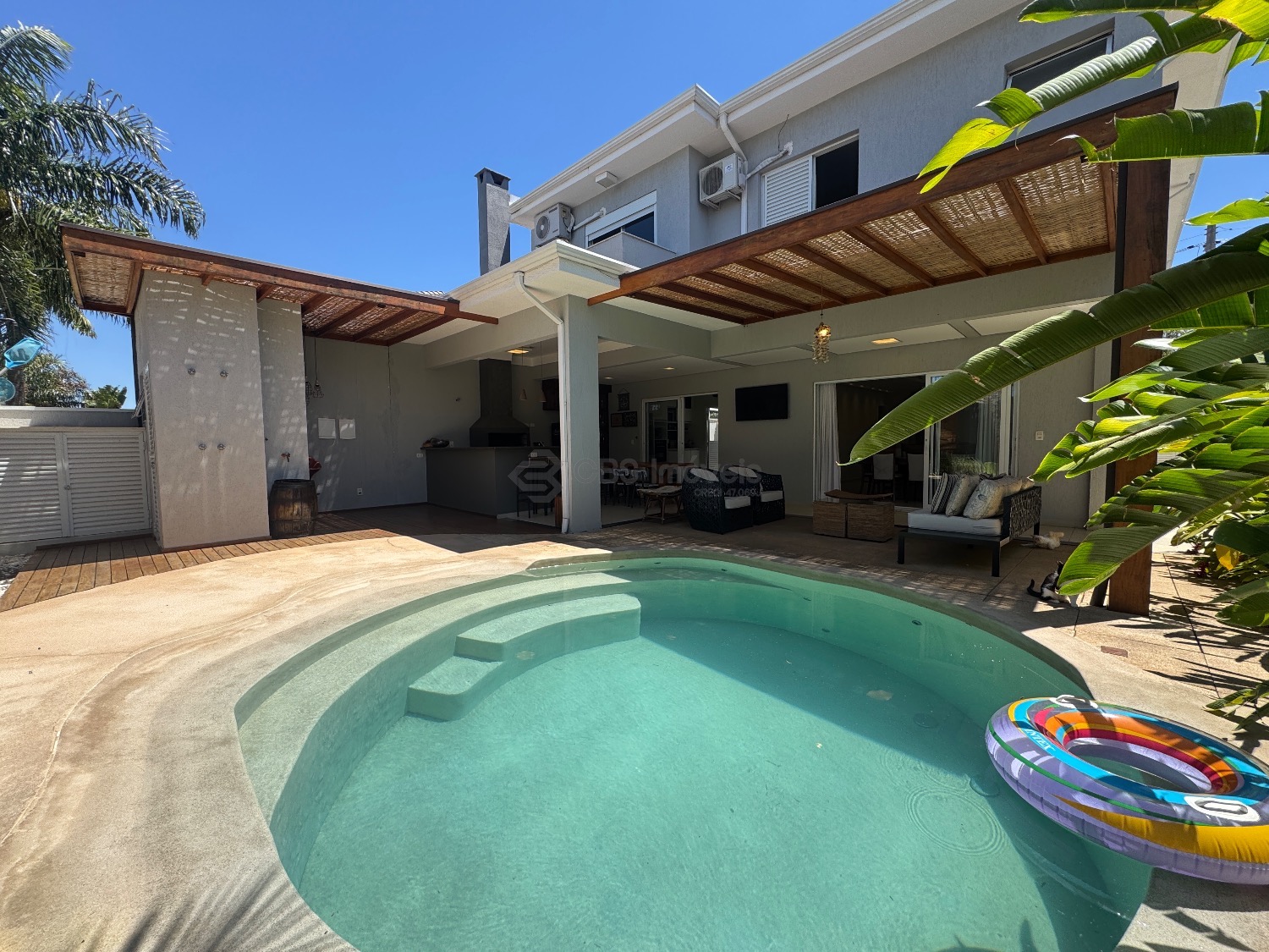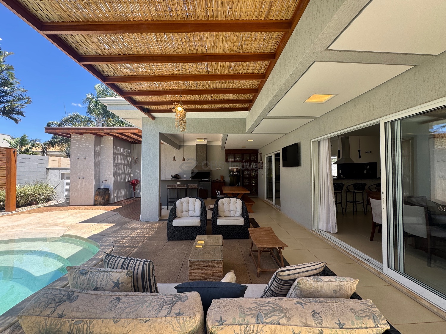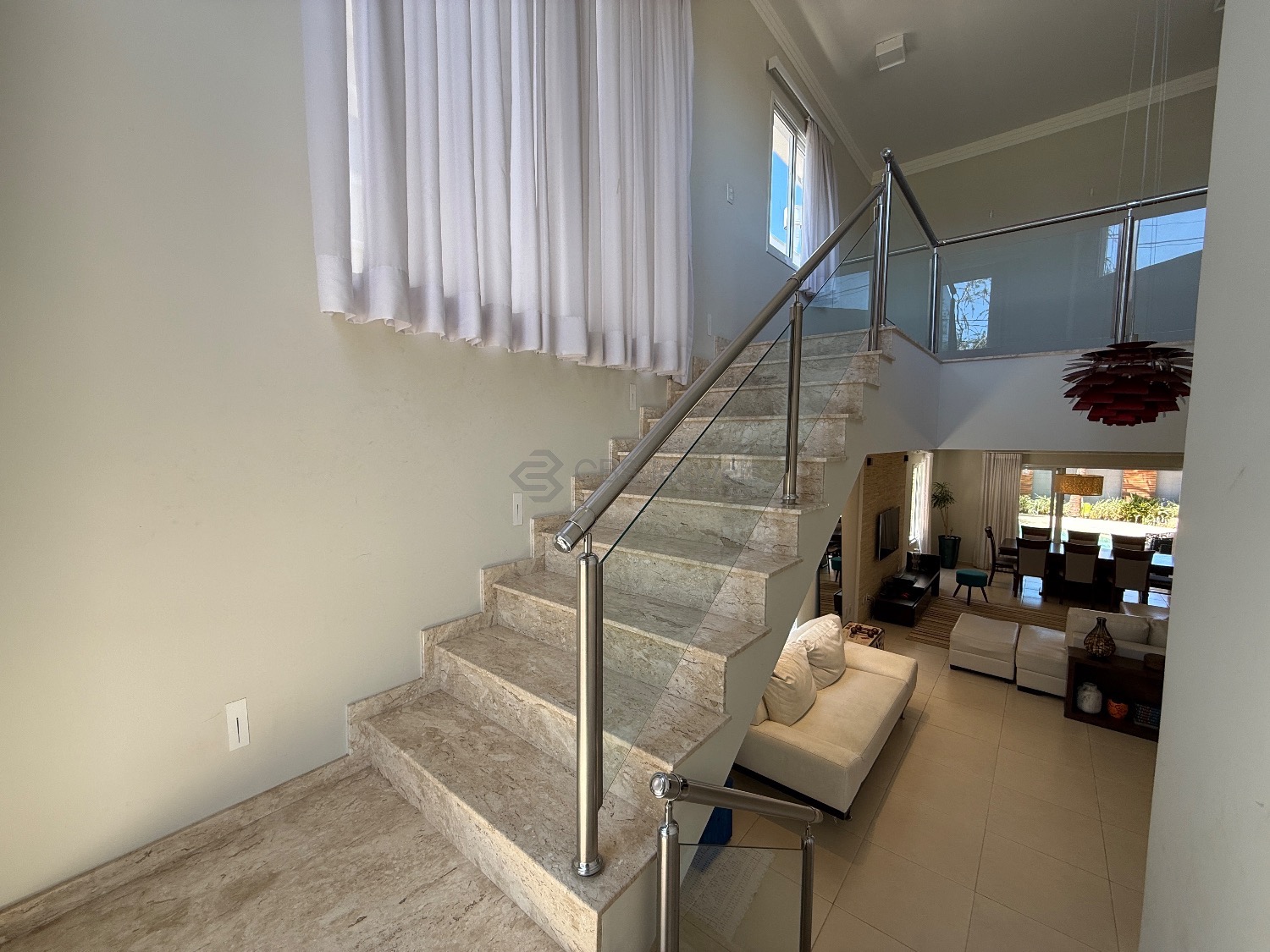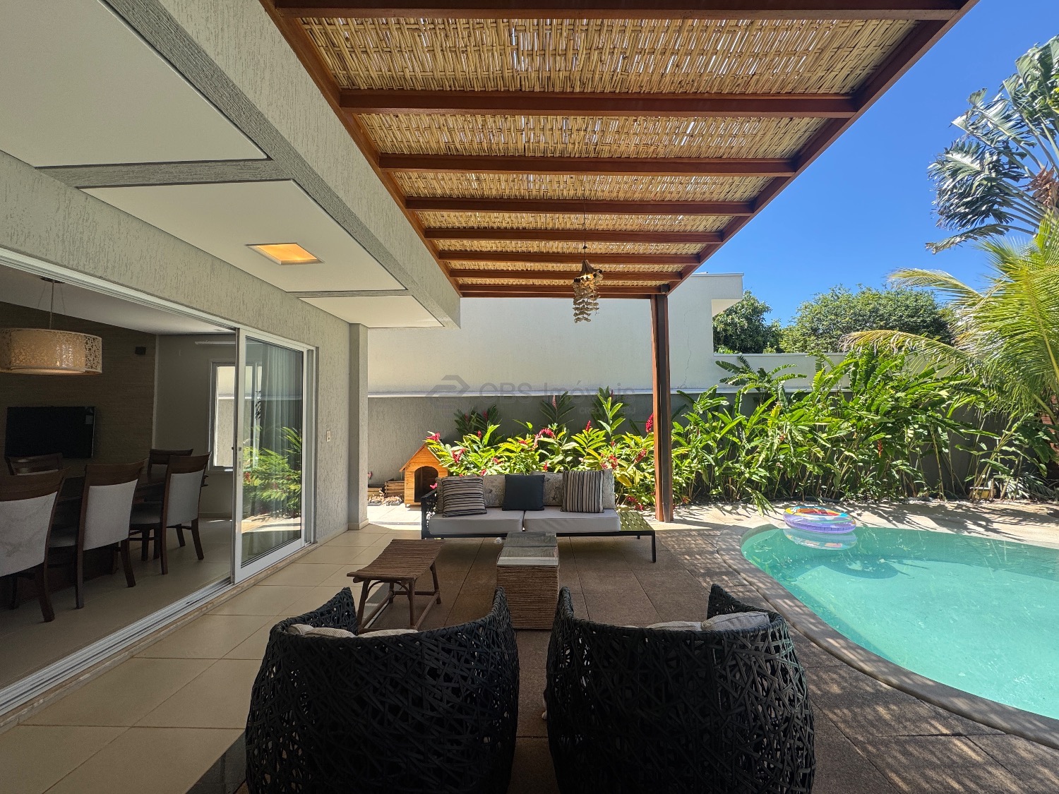 Além disso, possui 4 vagas de garagem, sendo 2 cobertas, com acabamentos de alta qualidade e pé direito duplo, esta casa também oferece aquecimento de água com energia solar e ar-condicionado.