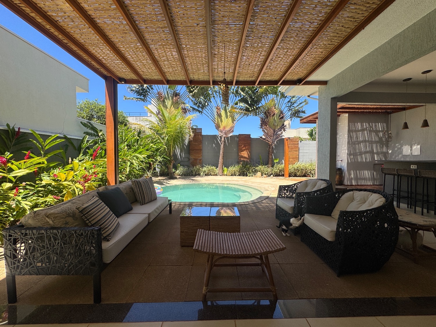 Possui ainda churrasqueira, quintal, piscina aquecida e com um belo paisagismo.