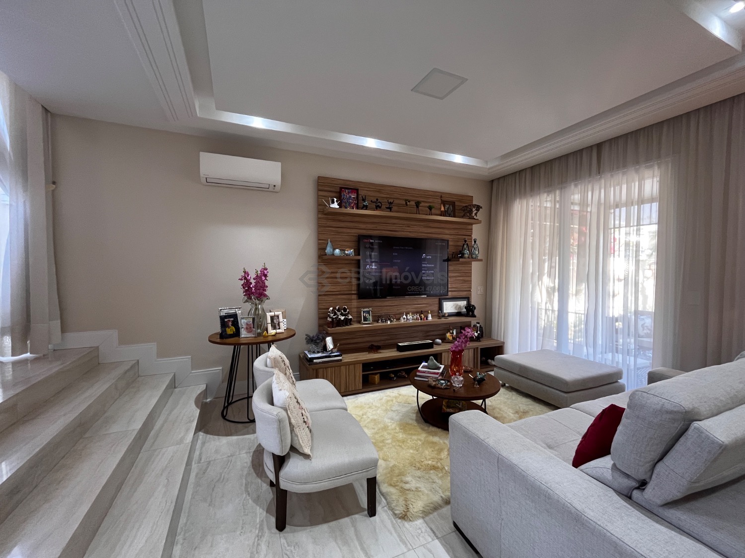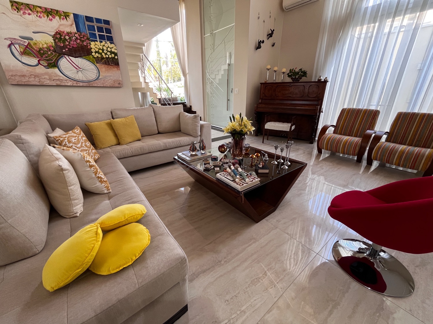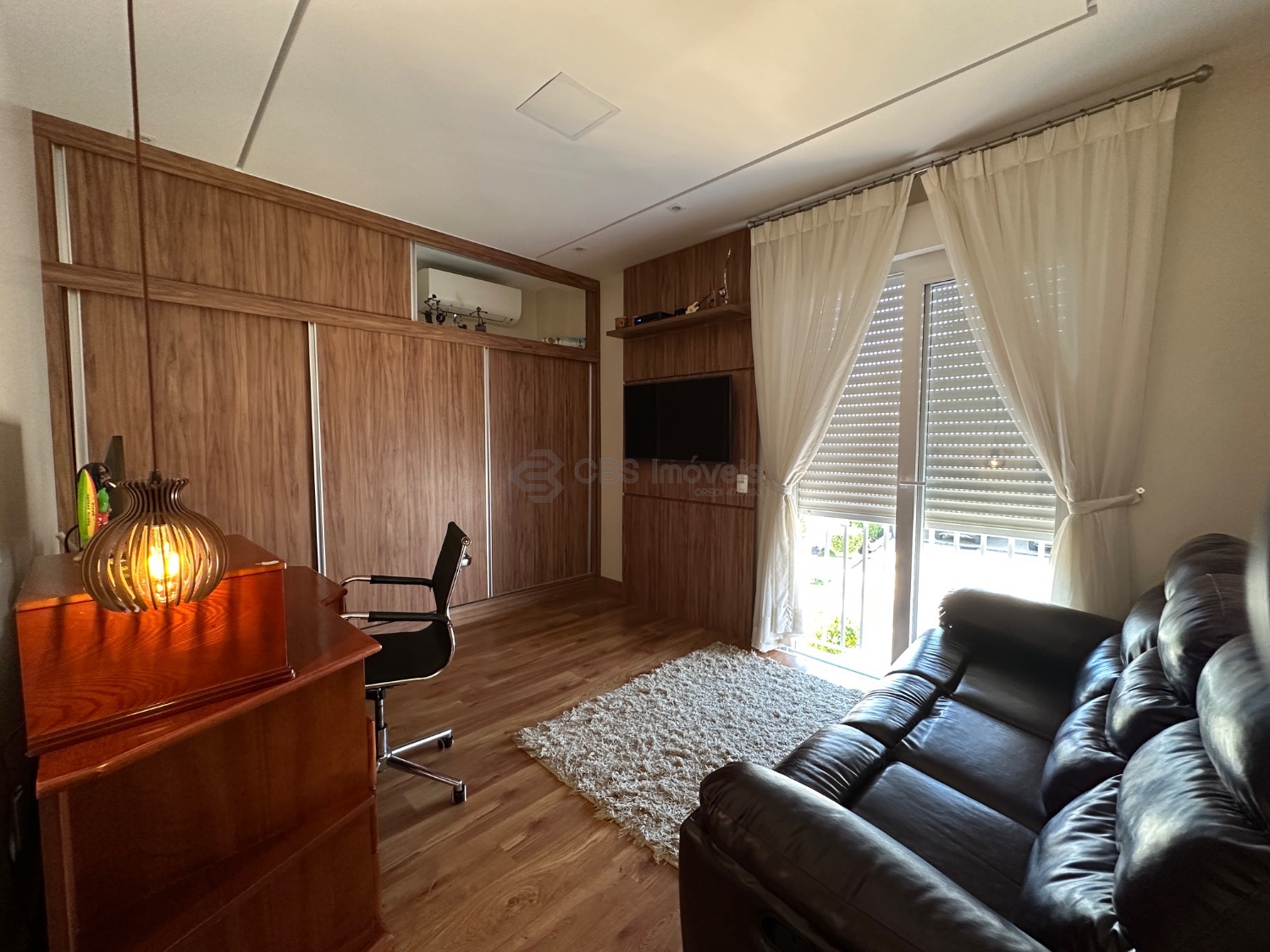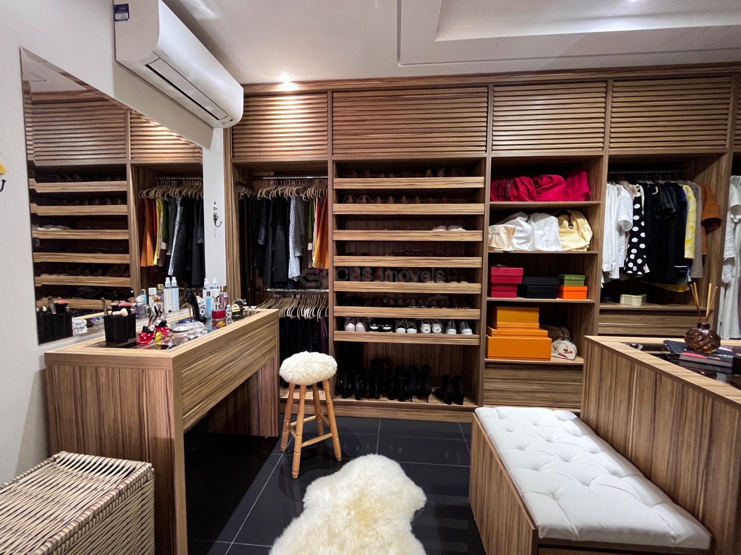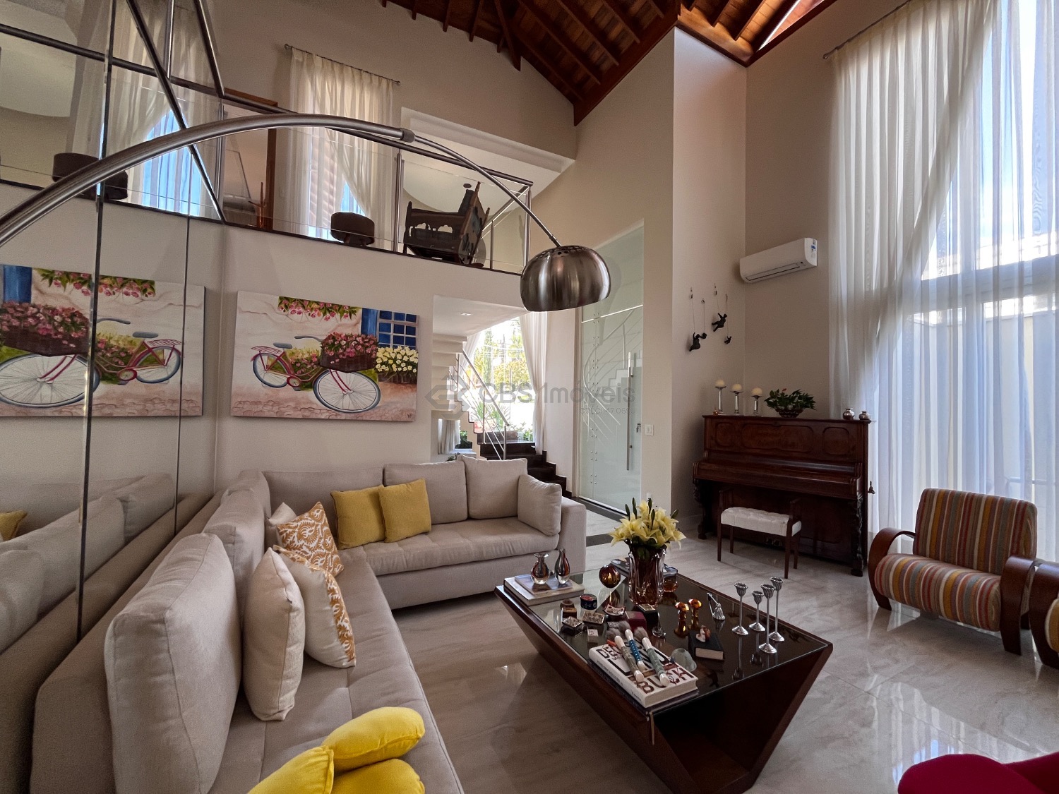 No térreo possui living para 2 ambientes com pé direito duplo e muita integração, cozinha privativa completa com marcenaria, despensa, lavabo, área de serviço, escritório com um fino acabamento na casa toda..