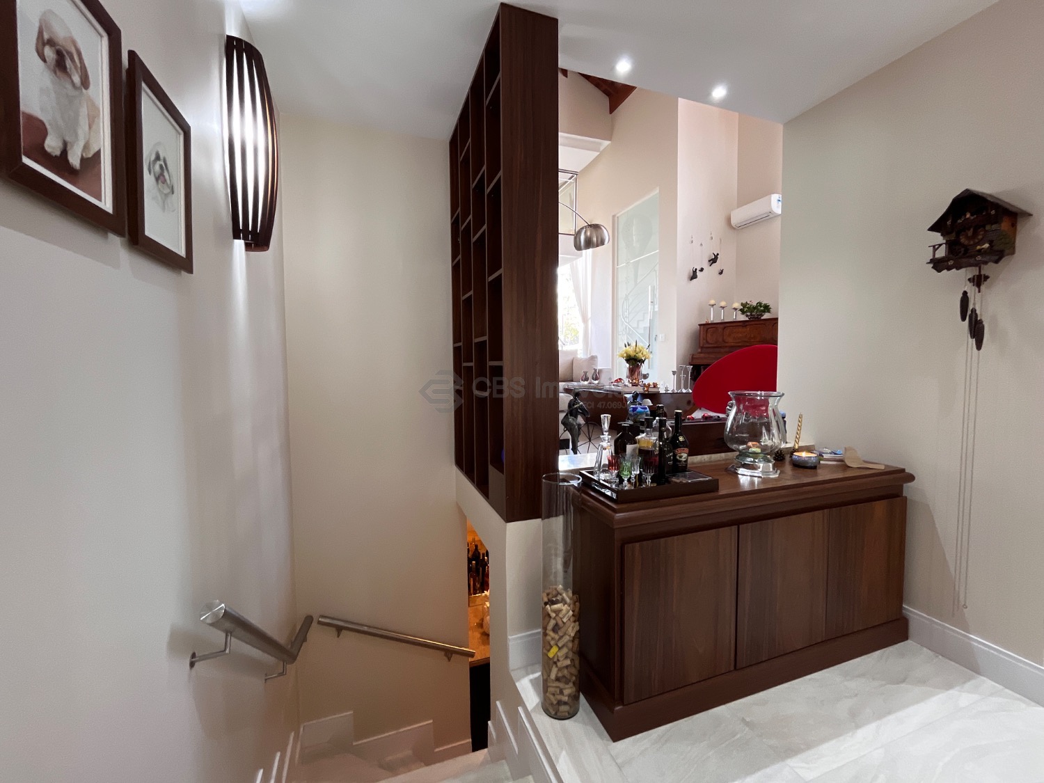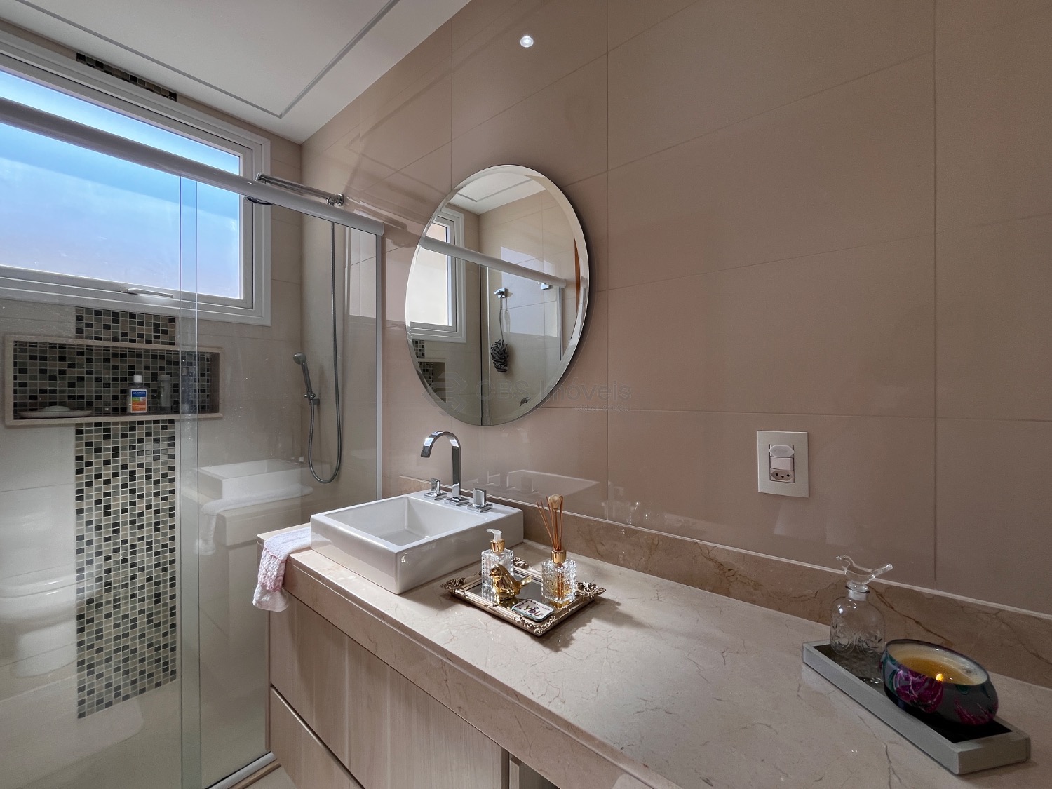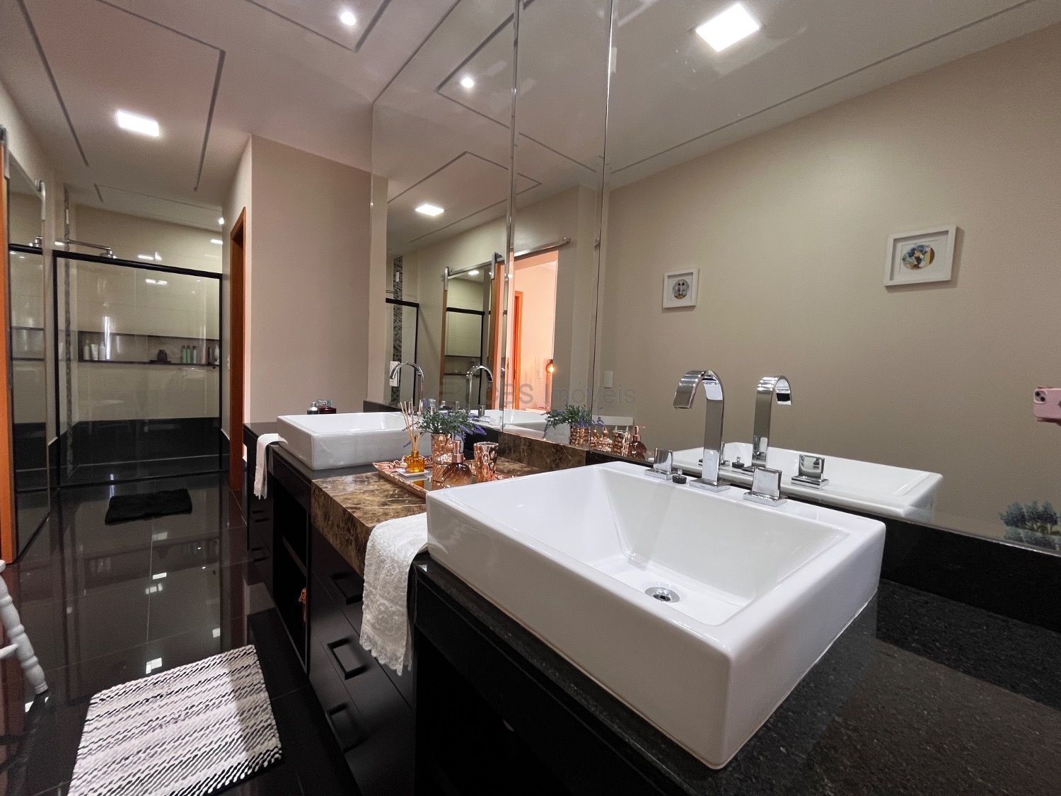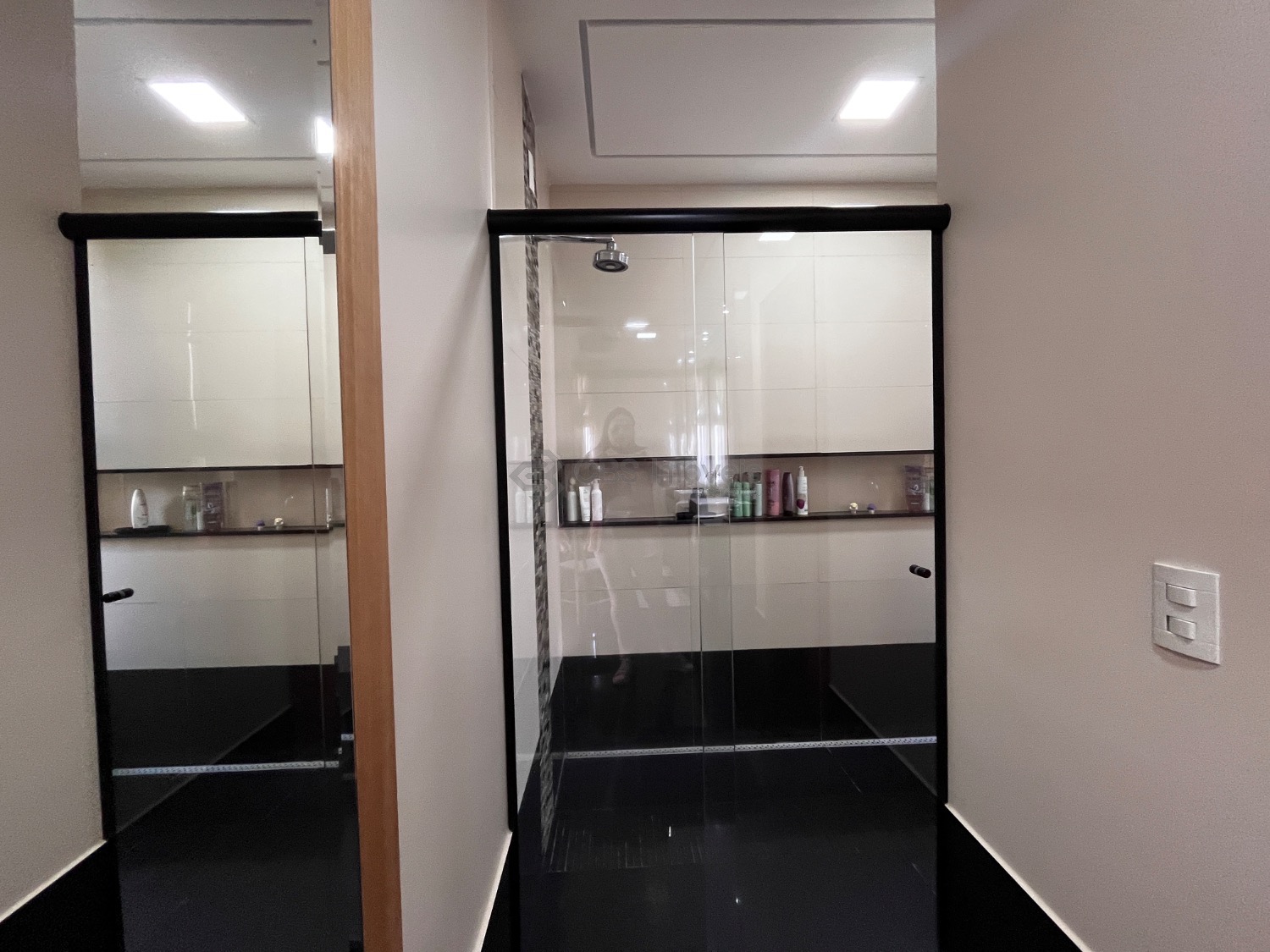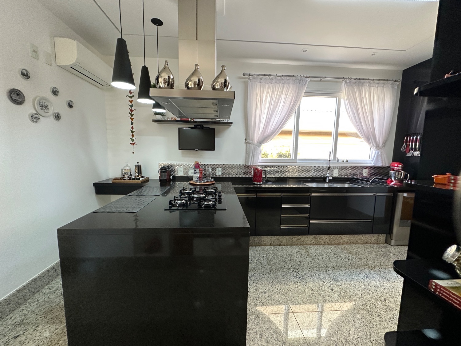No térreo possui living para 2 ambientes com pé direito duplo e muita integração, cozinha privativa completa com marcenaria, despensa, lavabo, área de serviço, escritório com um fino acabamento na casa toda..