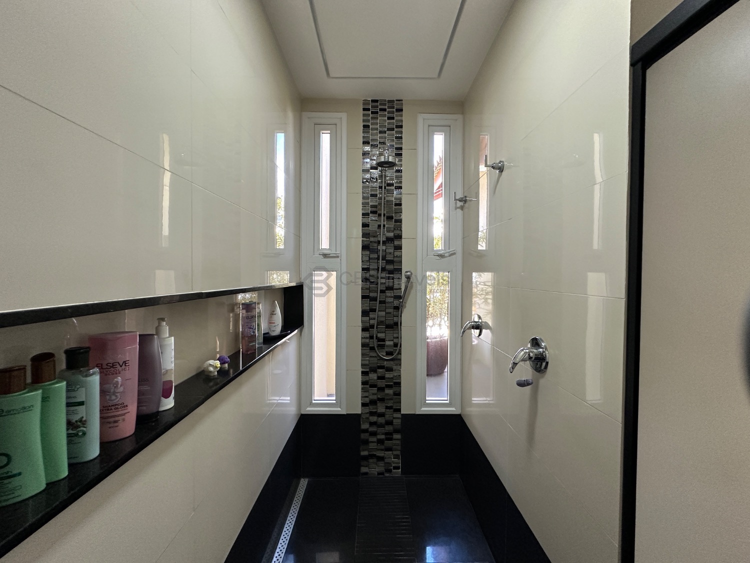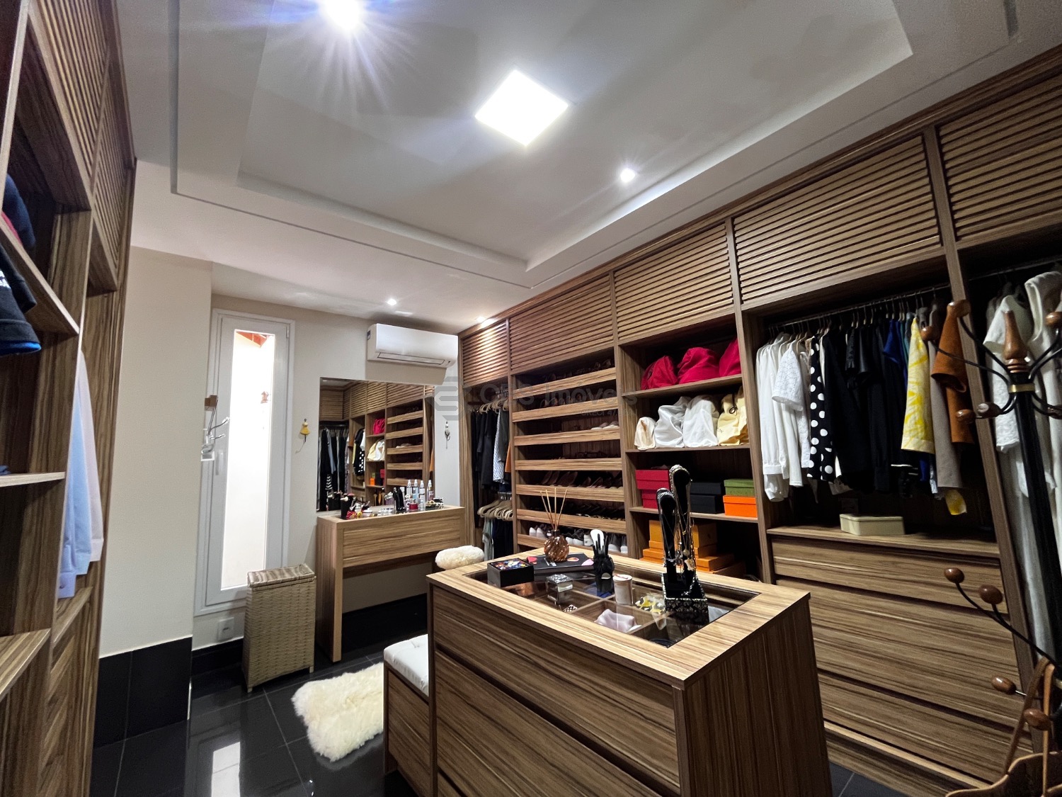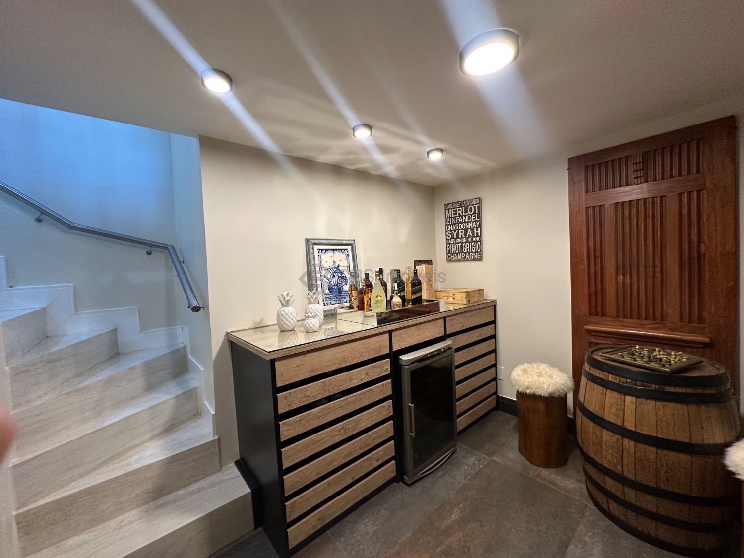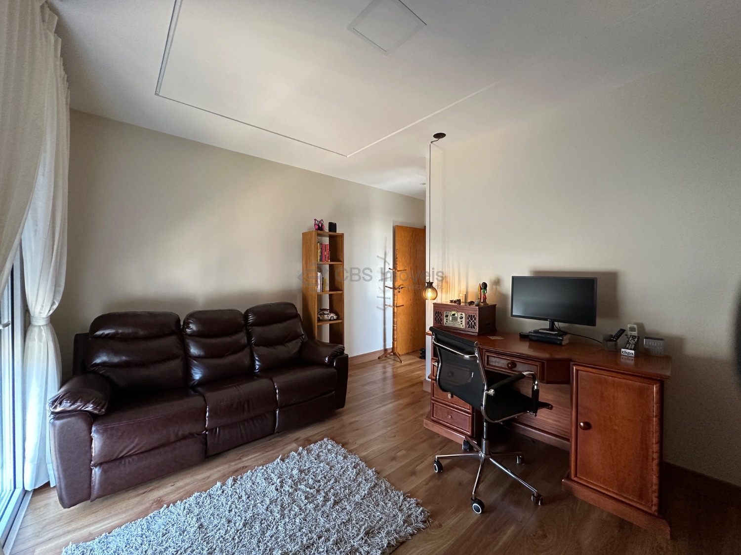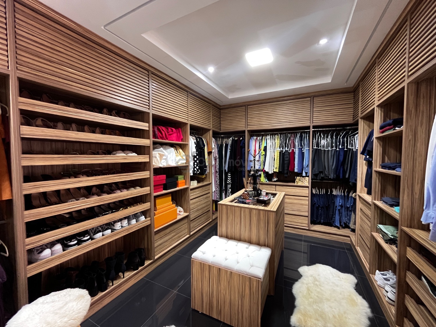 No térreo possui living para 2 ambientes com pé direito duplo e muita integração, cozinha privativa completa com marcenaria, despensa, lavabo, área de serviço, escritório com um fino acabamento na casa toda..