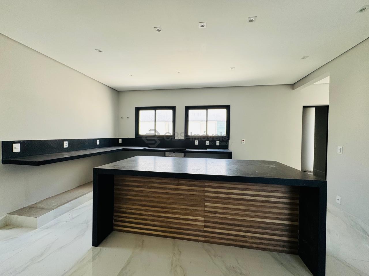 No térreo possui sala para 4 ambientes com pé direito duplo e muita integração. A cozinha é tipo americana com ilha muito espaçosa e ainda temos quarto/suíte reversível para home ou escritório, lavabo, lavanderia e garagem para 4 carros.