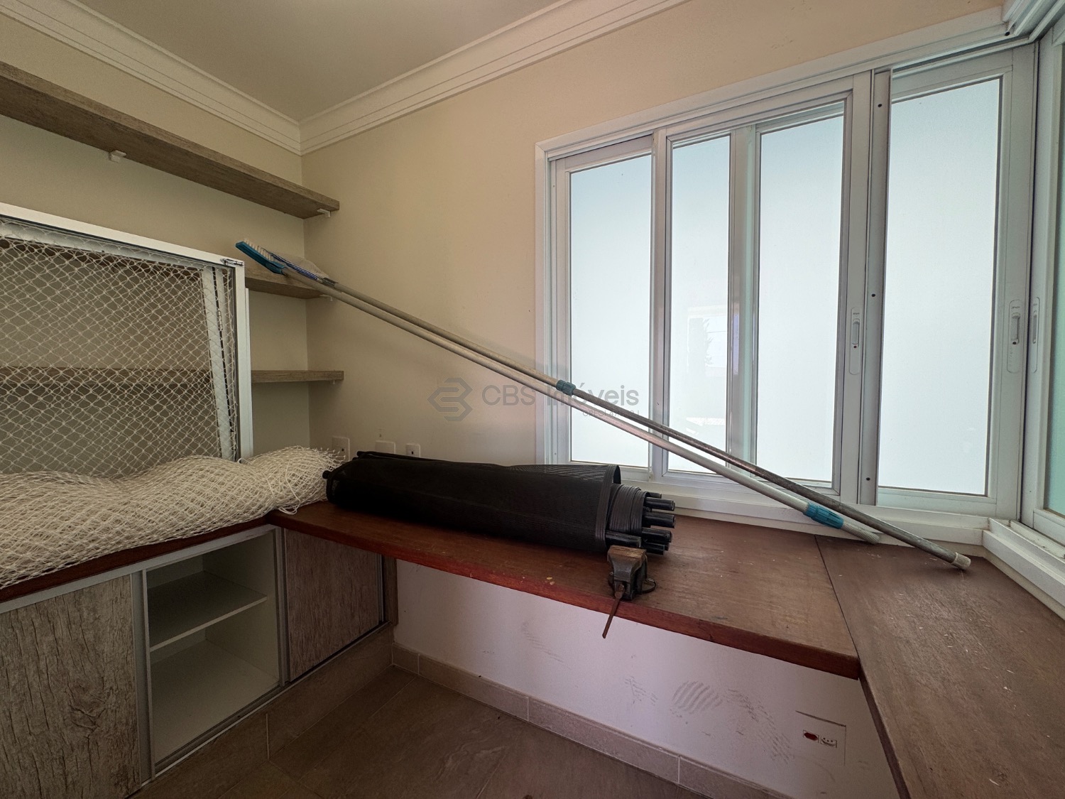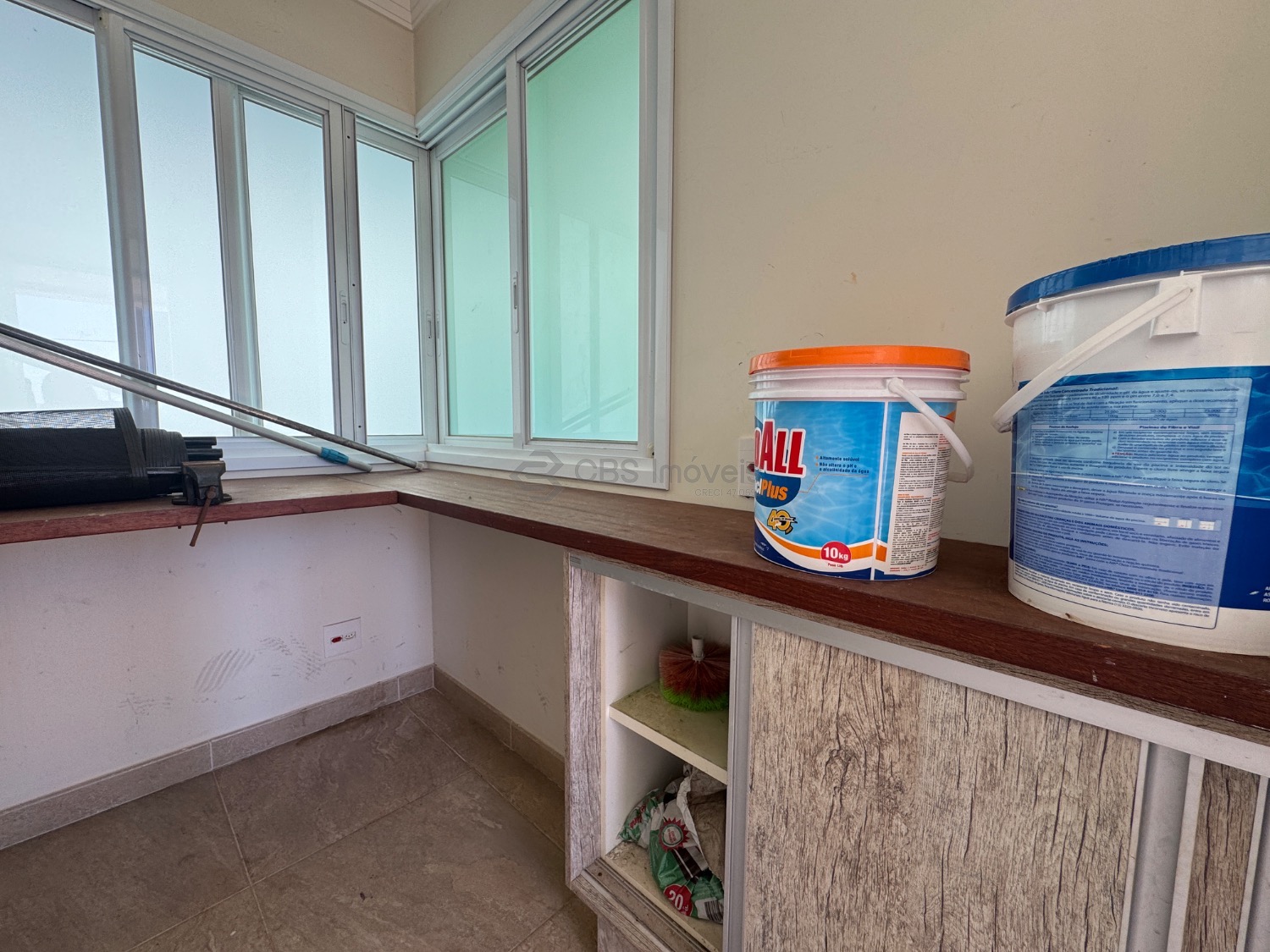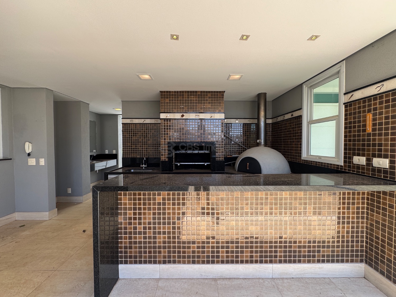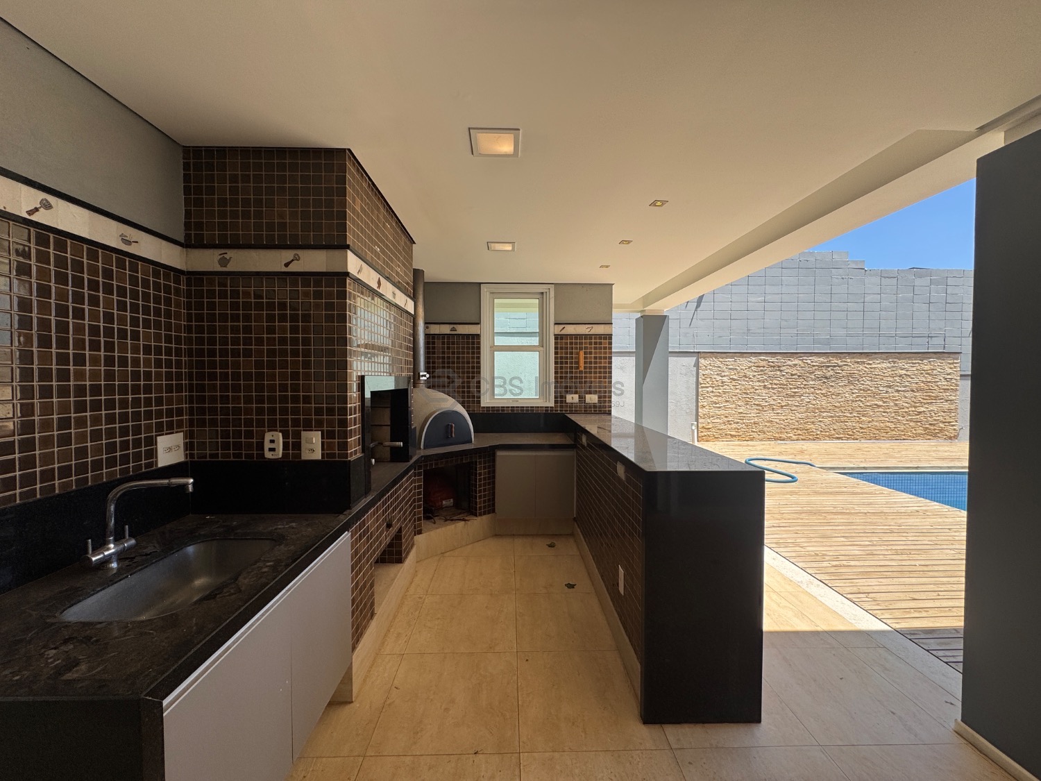 A cozinha, espaçosa e bem distribuída, é independente, mas se integra de forma harmônica à área gourmet, equipada com churrasqueira, forno de pizza e uma ampla bancada de apoio. O espaço de lazer é completo, com piscina aquecida, perfeito para receber amigos e família com conforto e estilo.