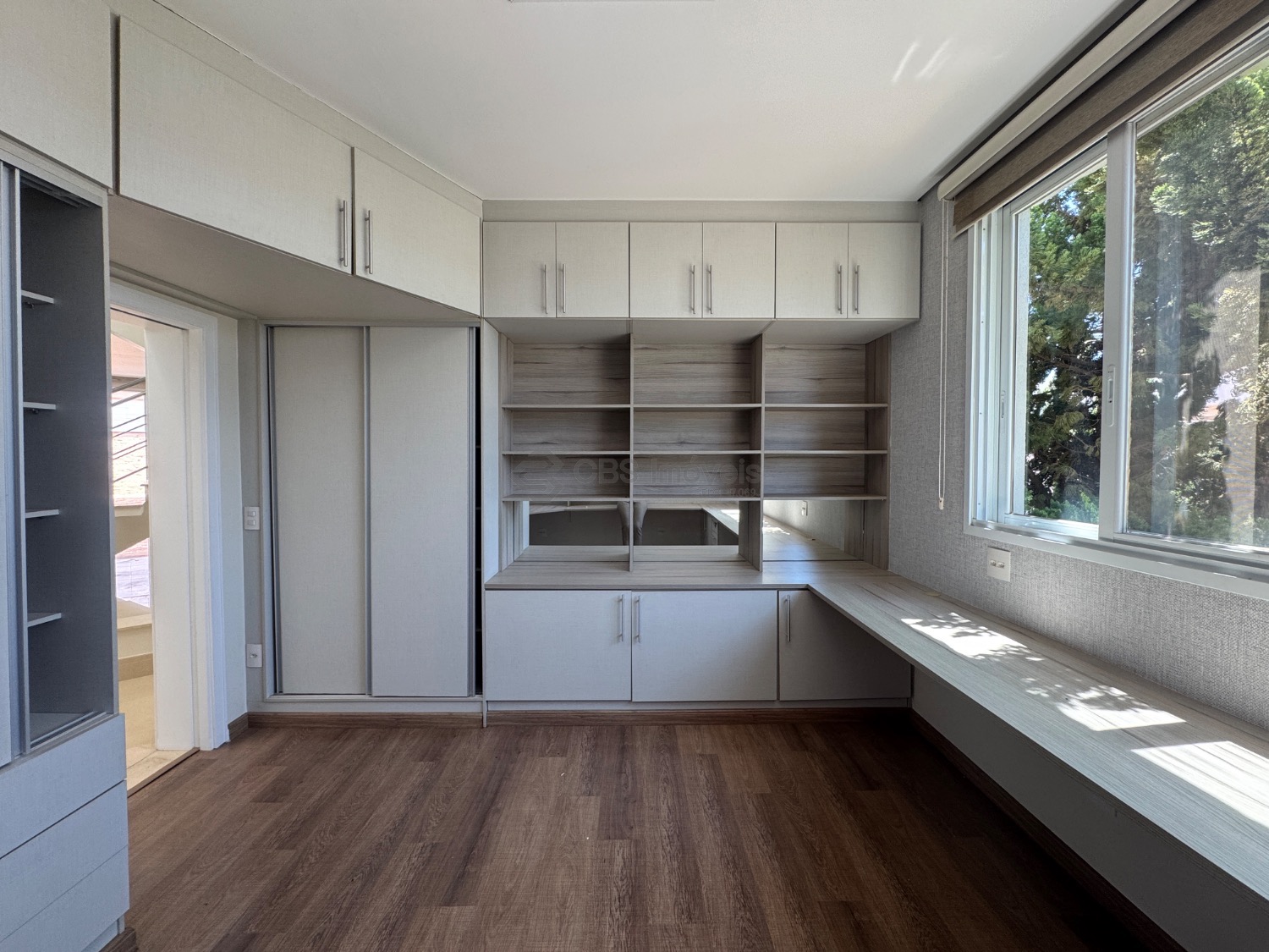 No piso superior, o imóvel dispõe de quatro suítes generosas, todas bem ventiladas e com excelente acabamento. A suíte master se destaca com closet duplo, hidromassagem e um sistema inteligente de grade móvel que permite o envio direto de roupas ao pavimento térreo, otimizando o acesso à lavanderia.