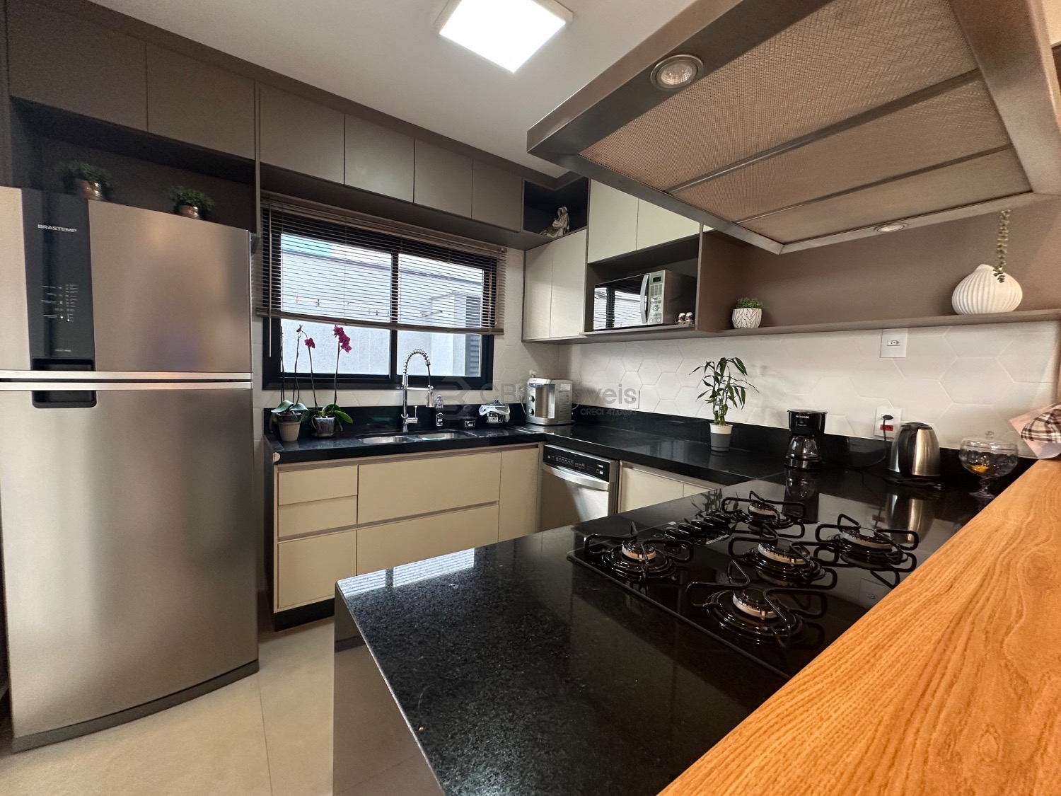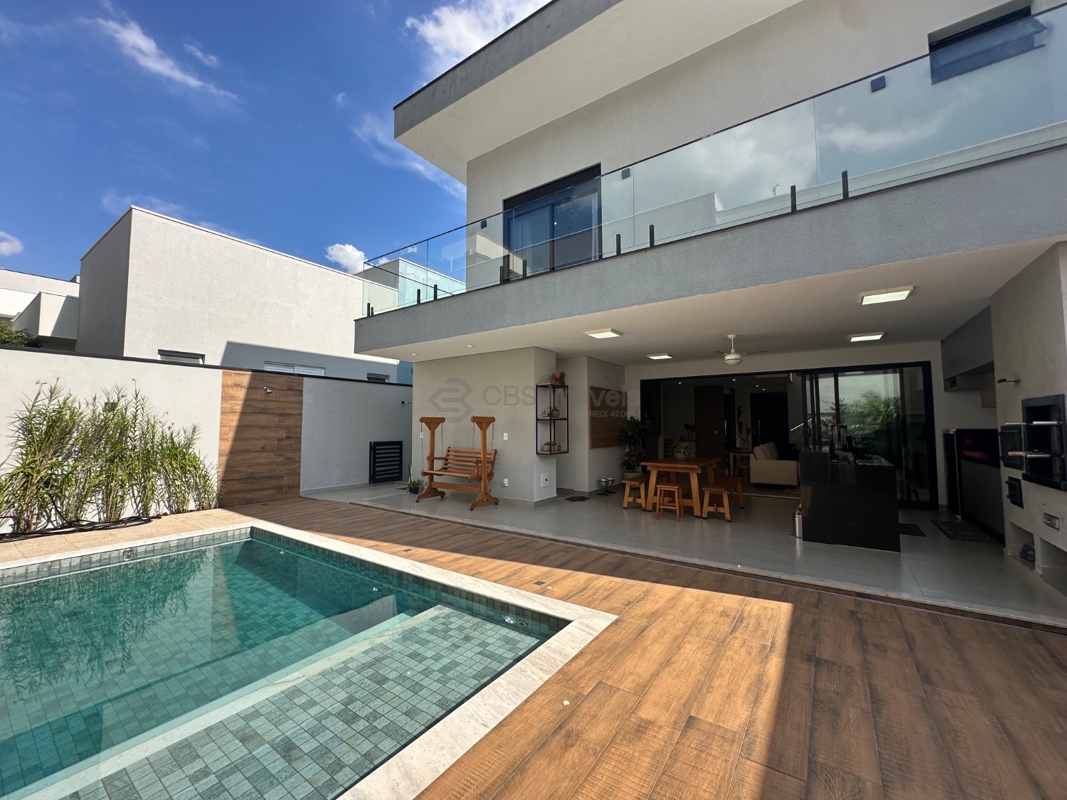 A cozinha americana integra-se harmoniosamente à área social, enquanto a cozinha gourmet convida a receber com estilo. O escritório atende perfeitamente às demandas do home office. Persianas automatizadas, aquecimento solar e climatização em diversos ambientes reforçam o padrão de conforto. O espaço gourmet se abre para a área externa com piscina aquecida, criando um cenário ideal para lazer e convivência.