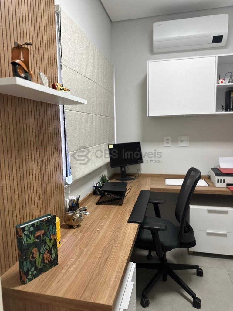 São 3 suítes, sendo uma delas com closet e ar-condicionado, além de diversos móveis planejados que garantem praticidade no dia a dia. O imóvel conta ainda com 5 banheiros, 3 salas amplas, todas com planejados, incluindo uma elegante sala de cinema para momentos especiais em família.