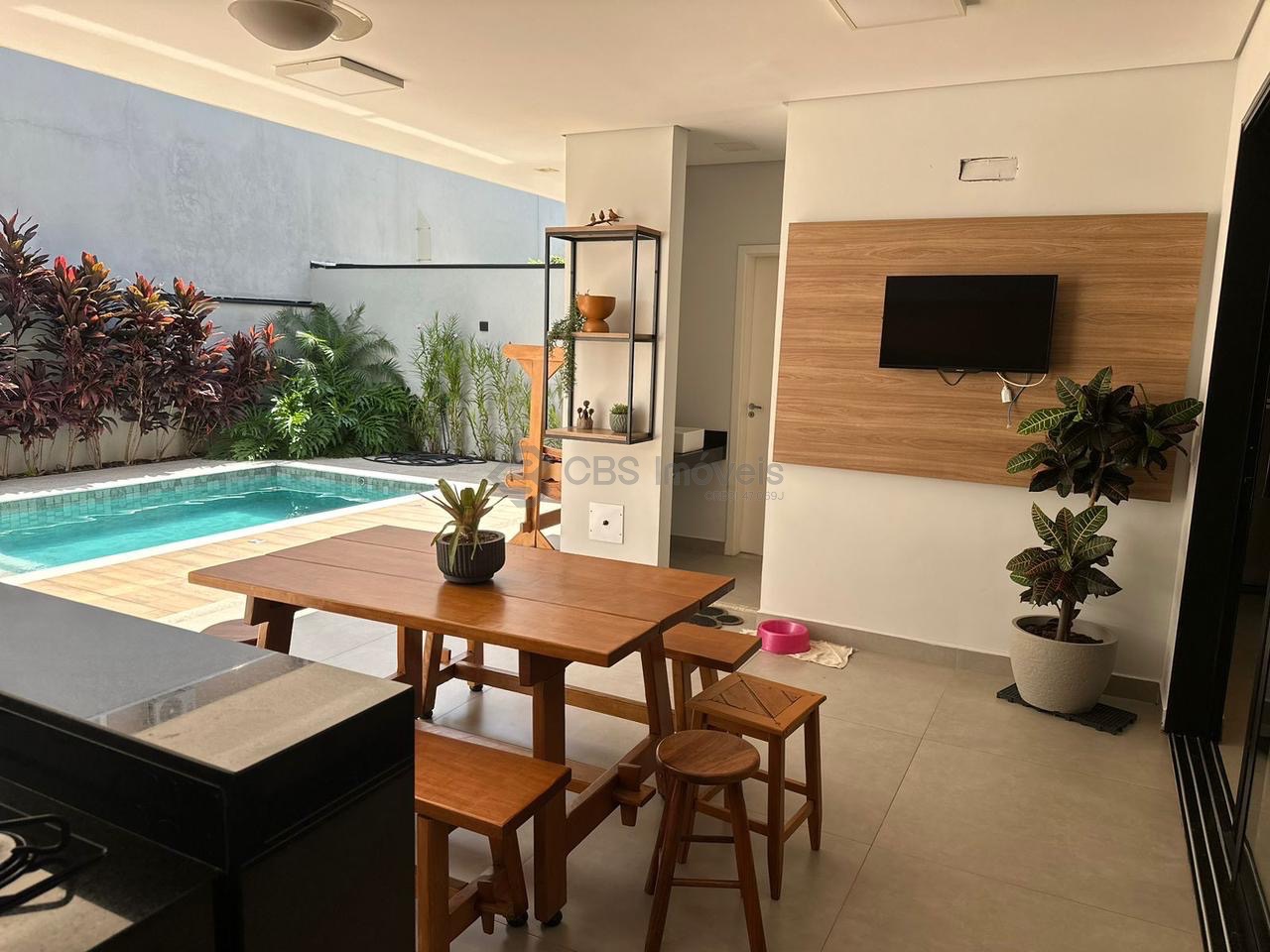 A cozinha americana integrada à área social e a cozinha gourmet são um convite para receber amigos e familiares, enquanto o escritório traz a funcionalidade que o home office exige. O sobrado possui ainda janelas com persianas automáticas, aquecimento solar, ar-condicionado em diversos ambientes e um espaço gourmet completo com vista para a linda piscina aquecida.