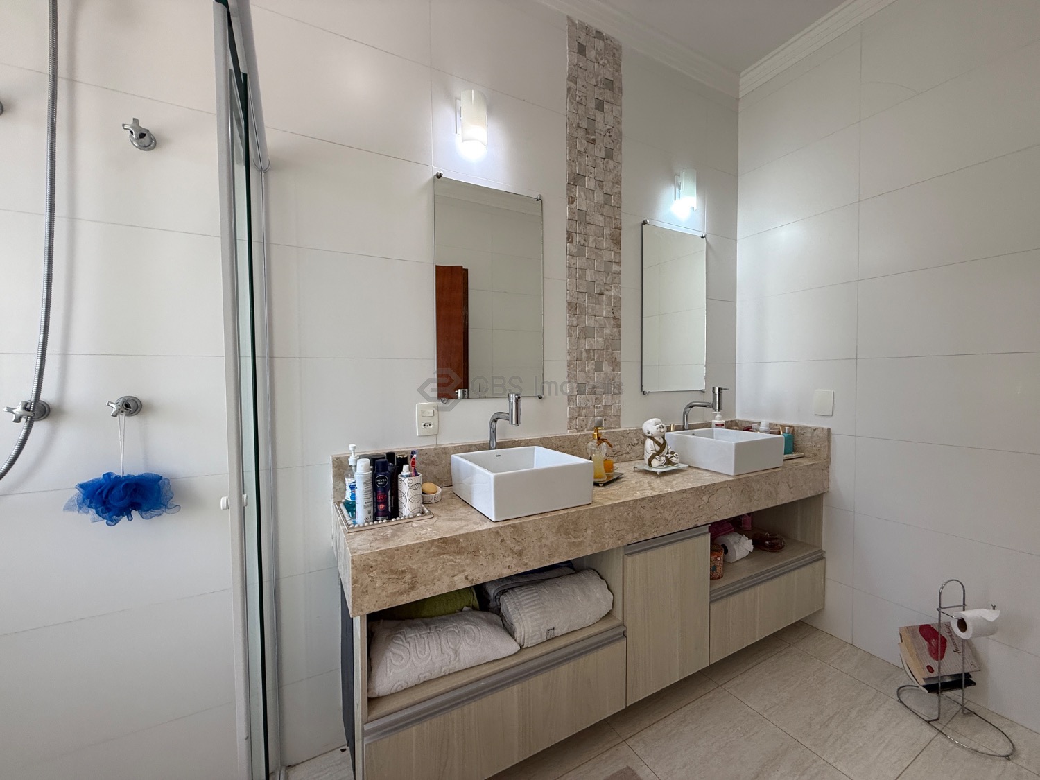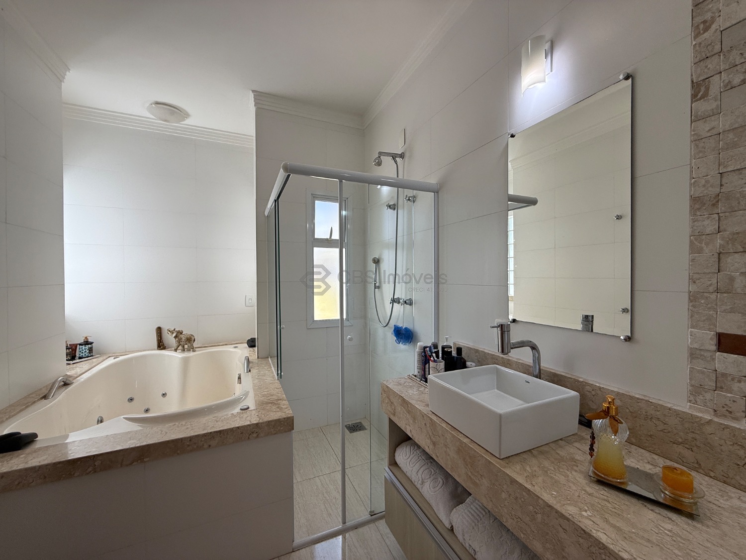 No andar superior, são três suítes espaçosas, sendo a principal com closet e hidromassagem, criando um ambiente íntimo e acolhedor para relaxar com tranquilidade.