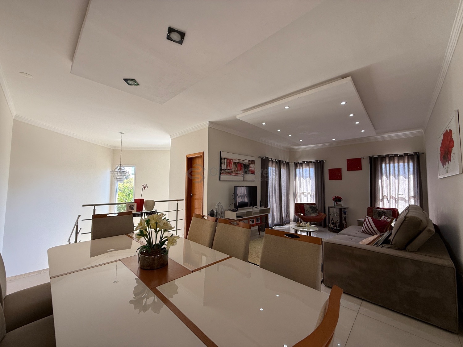 No pavimento inferior, o imóvel oferece um amplo living, escritório e lavanderia funcional. A cozinha, bem distribuída e discretamente isolada, garante praticidade no dia a dia sem interferir na organização dos espaços sociais, que incluem sala de jantar e sala de TV integradas, promovendo maior integração e aproveitamento dos ambientes.