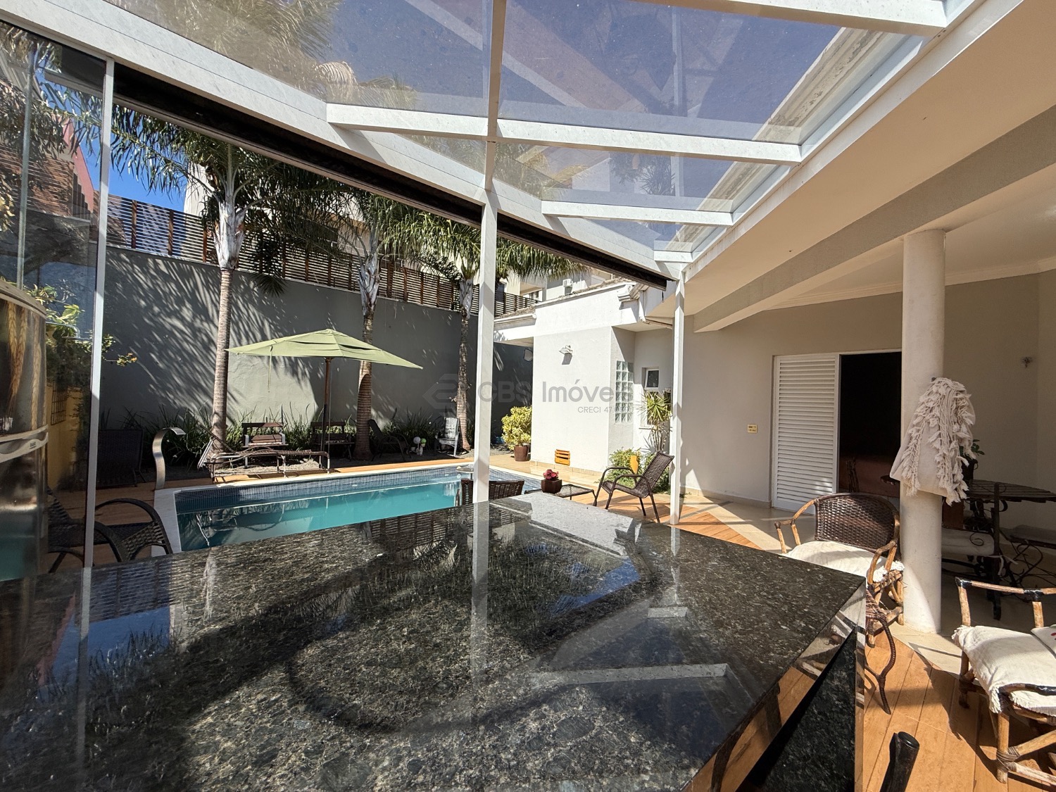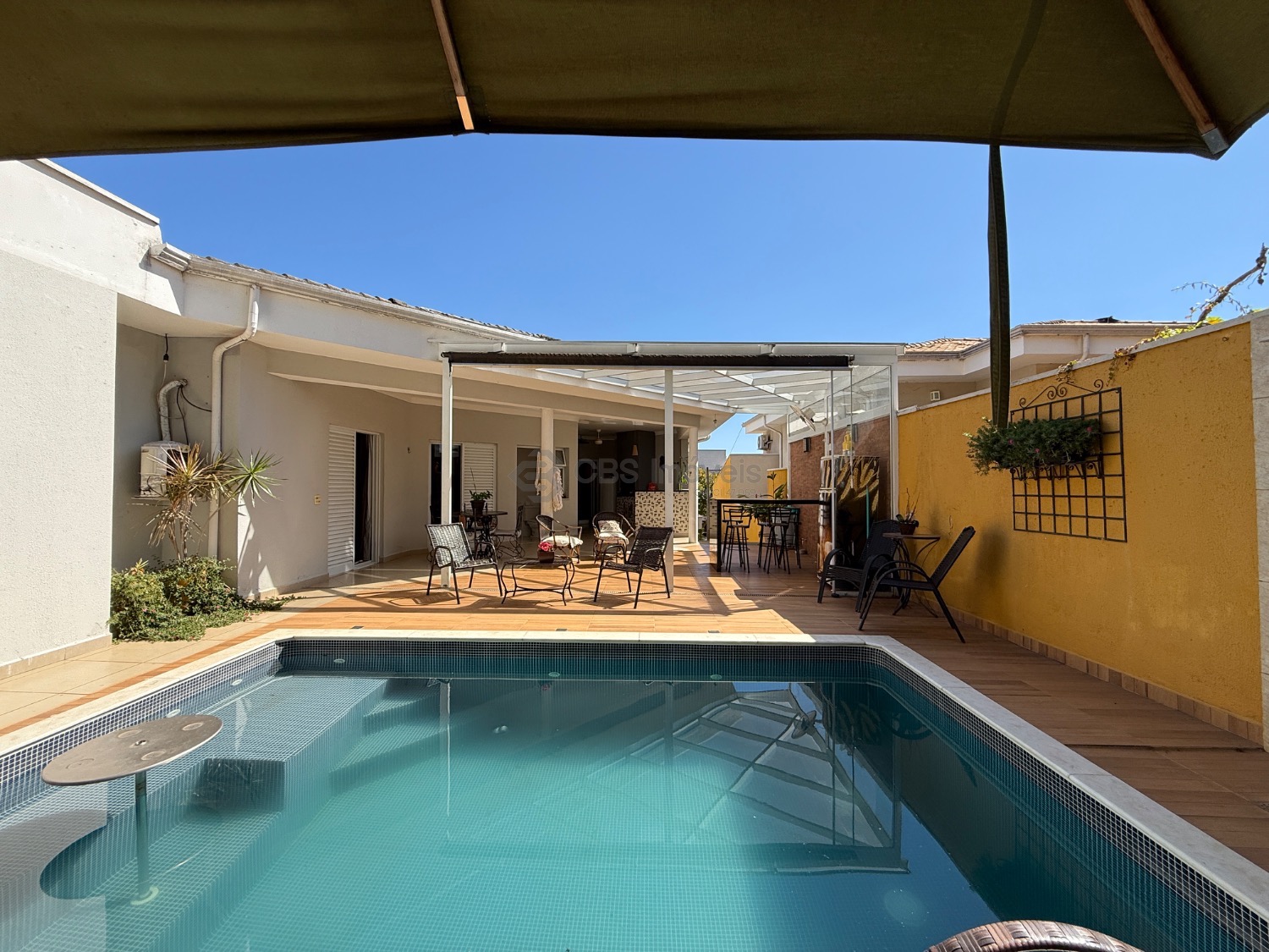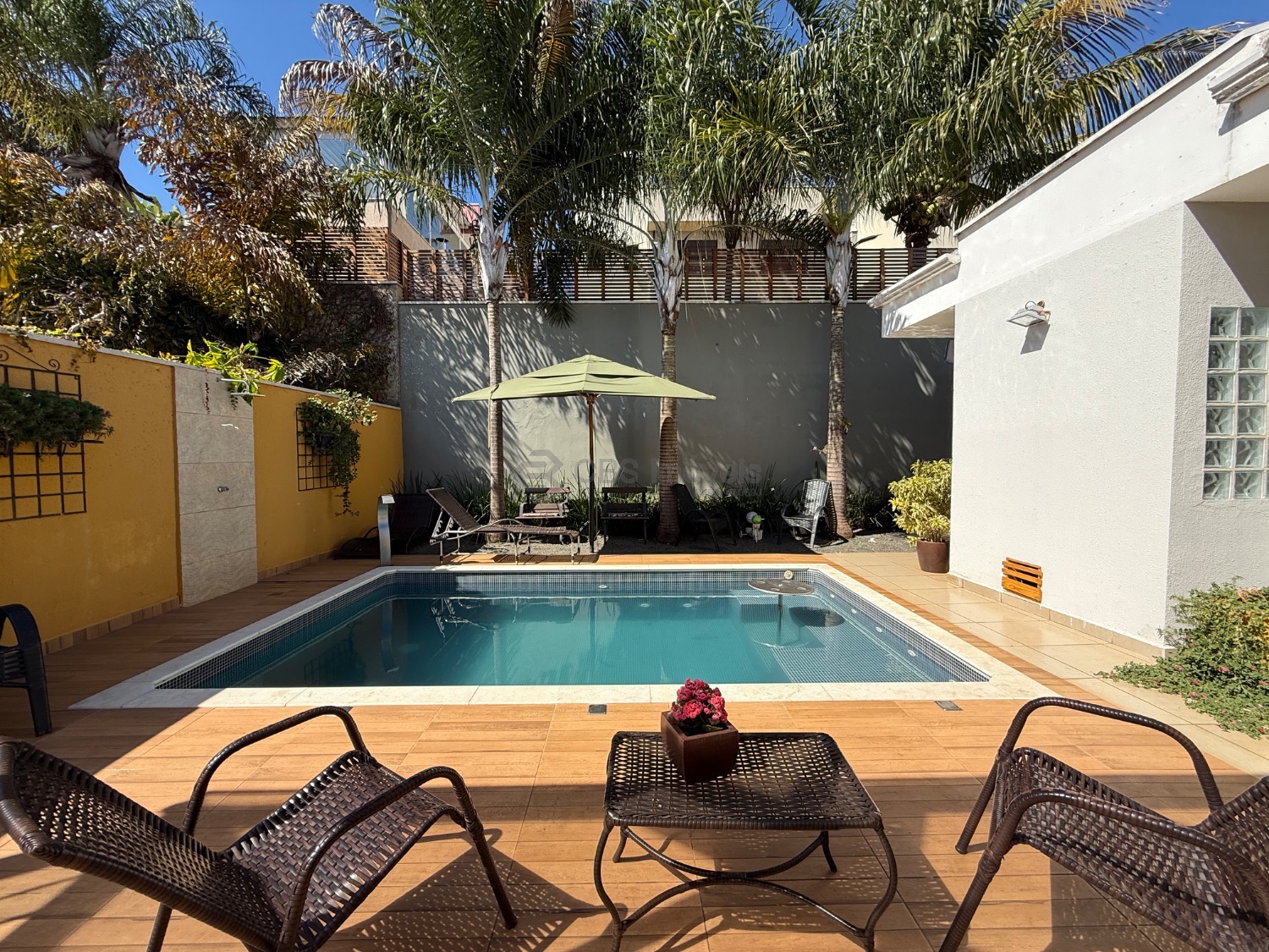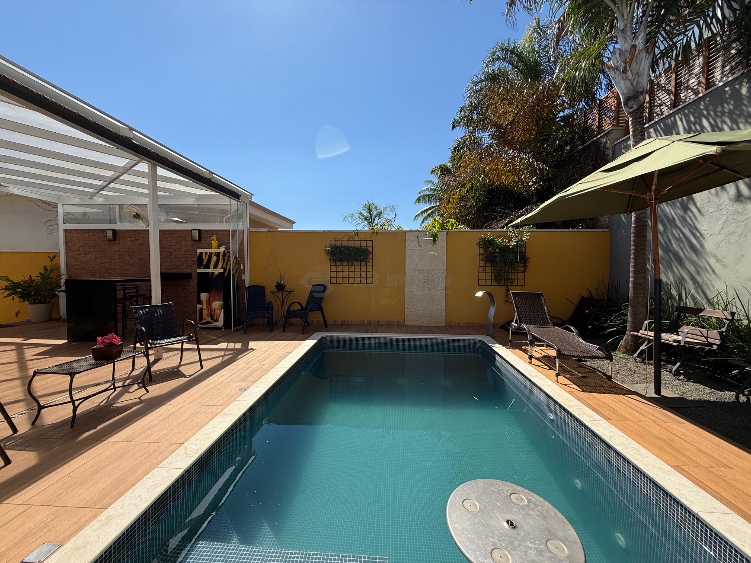 A área de lazer é um dos grandes diferenciais da casa: conta com piscina, espaço gourmet com churrasqueira e cobertura de vidro, ideal para receber amigos e aproveitar momentos de descanso com charme e conforto.