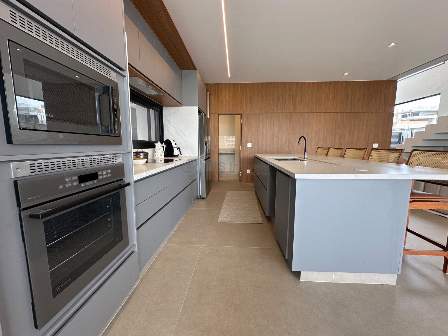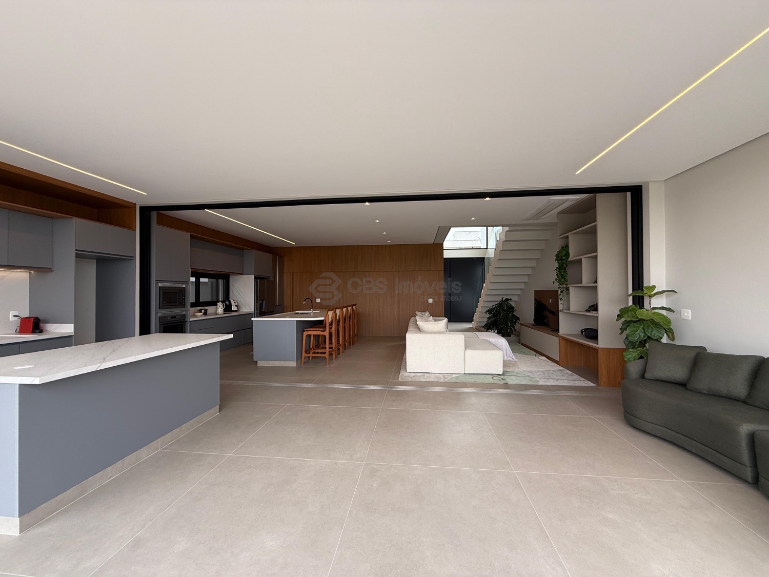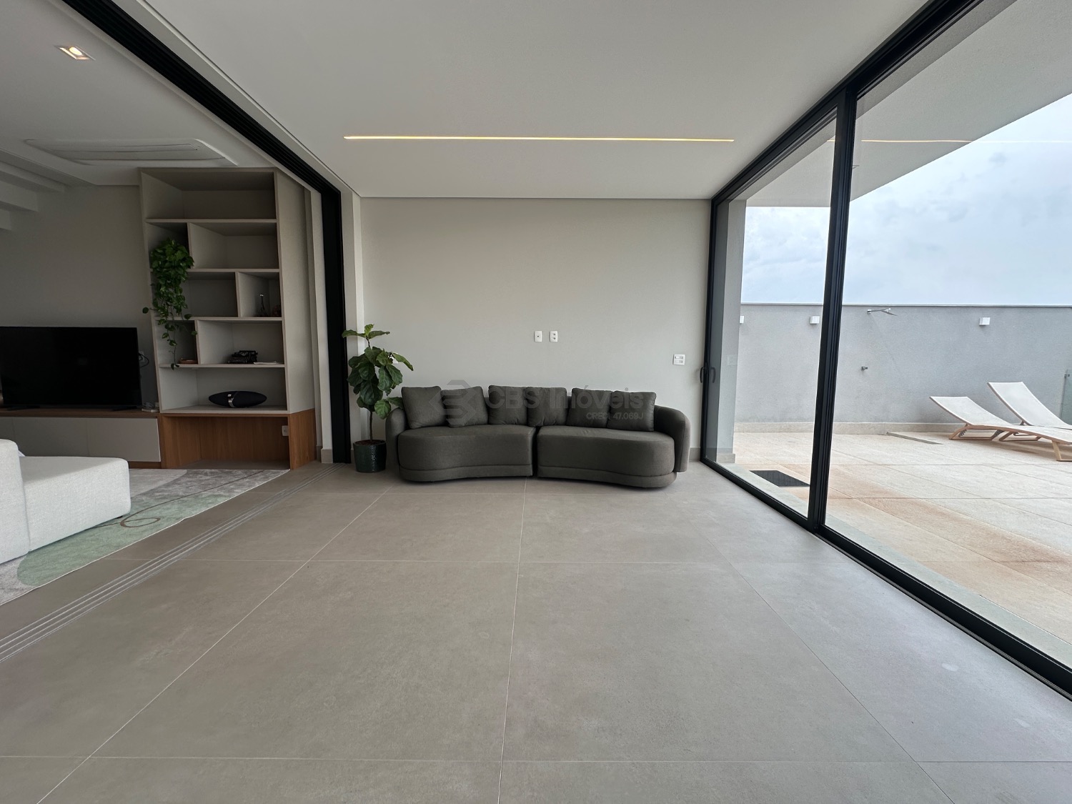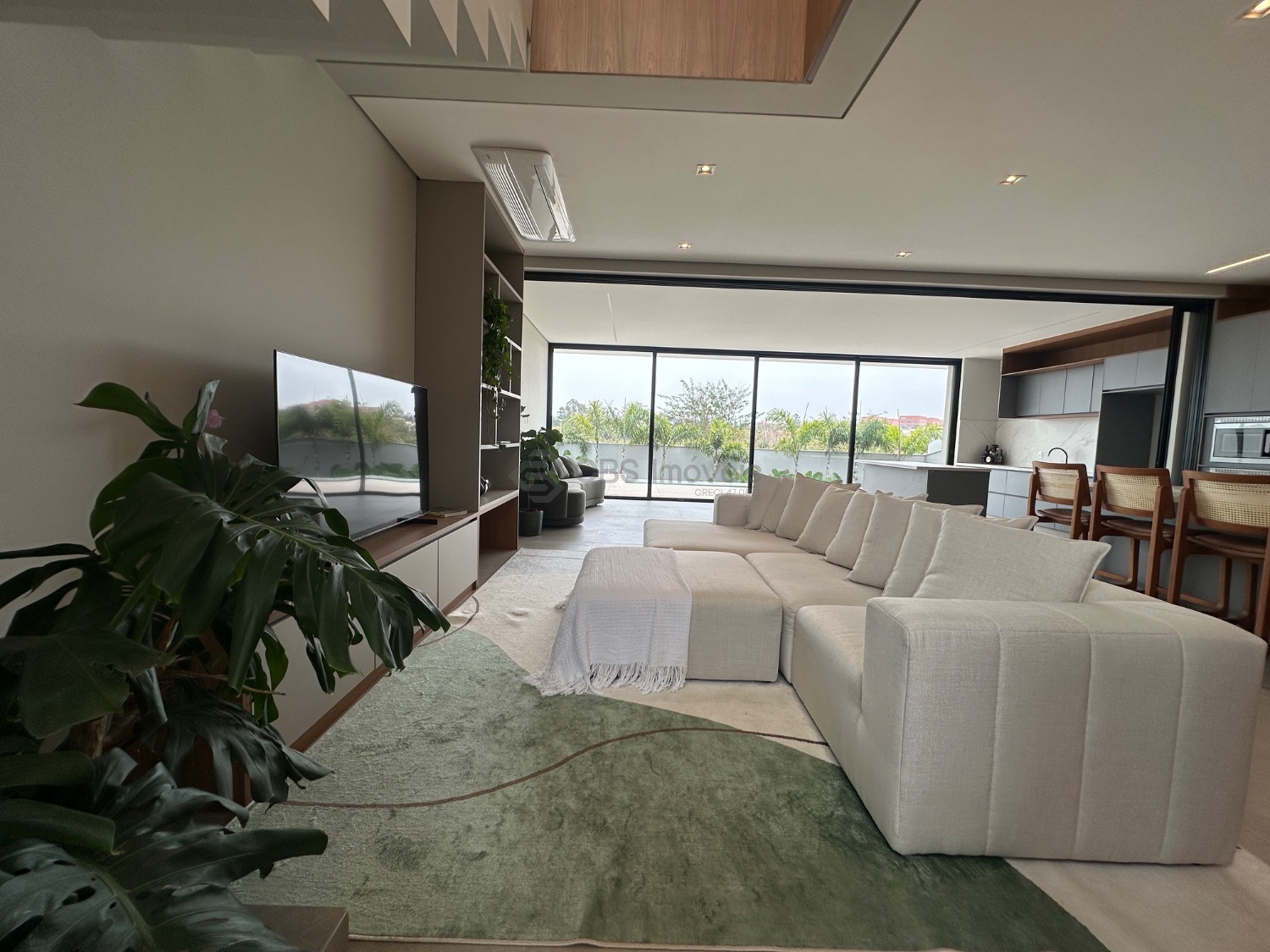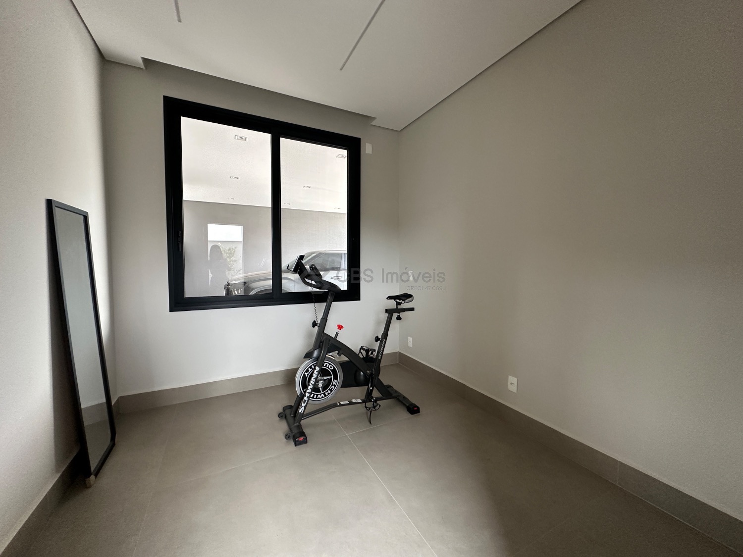 No térreo possui sala de estar e jantar, escritório, lavabo, cozinha americana com torre quente. Área gourmet com ponto para churrasqueira, a área gourmet possui porta de correr para divisão dos ambientes podendo deixar integrada ou fechada. A cassa possui um amplo quintal, Piscina com borda infinita, tendo vista para área de preservação do condomínio. Ainda no térreo possui área de serviço, despensa, banheiro de apoio para piscina e deposito.