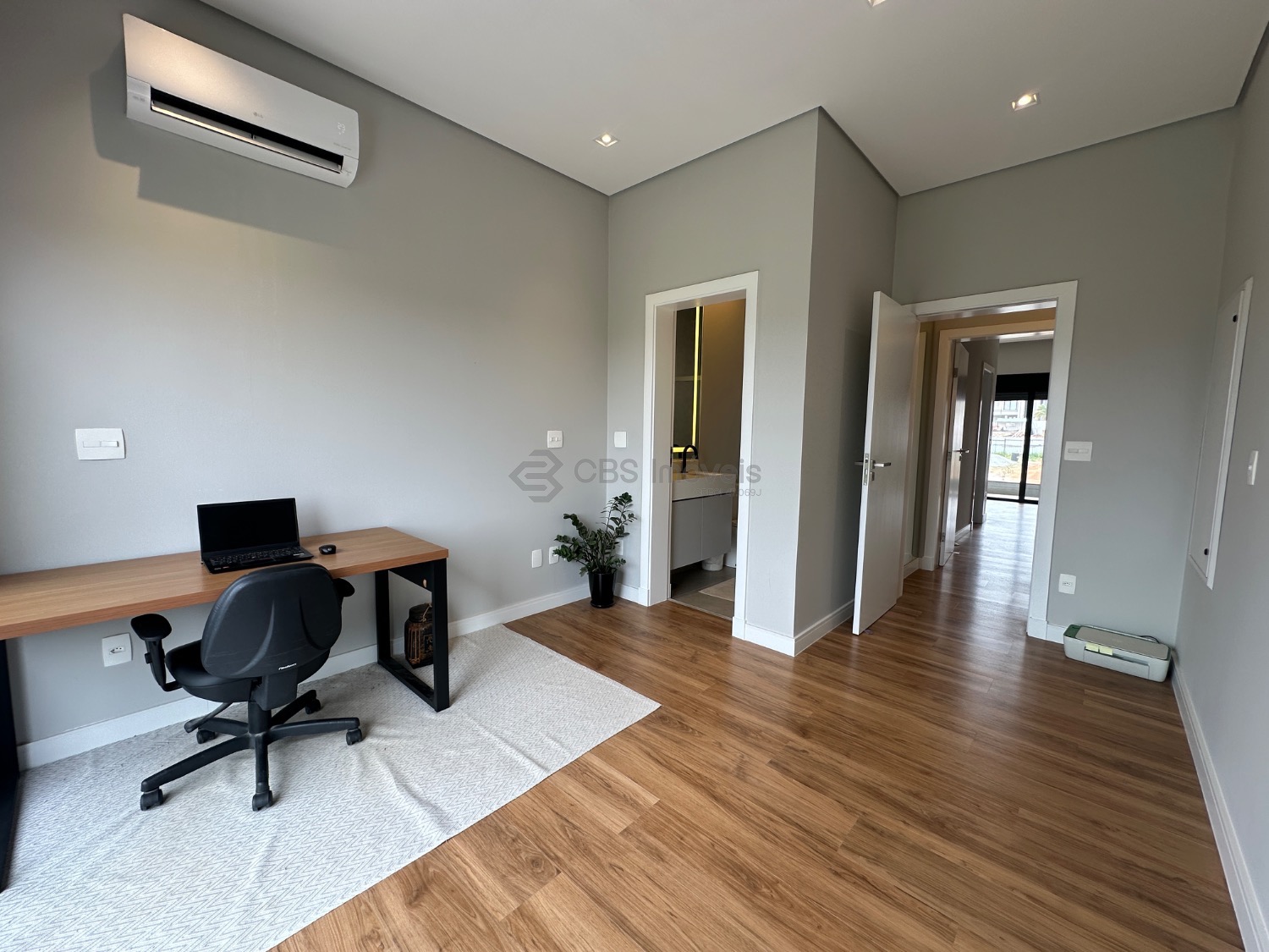 No piso superior possui 4 suítes, todas varanda, ponto para ar-condicionado, closet e janelas com tela mosquiteiro. A suíte master possui uma linda vista para área de preservação, amplo closet e banheiro com ducha dupla, pia com cuba dupla e completo com marcenaria e iluminação em led.