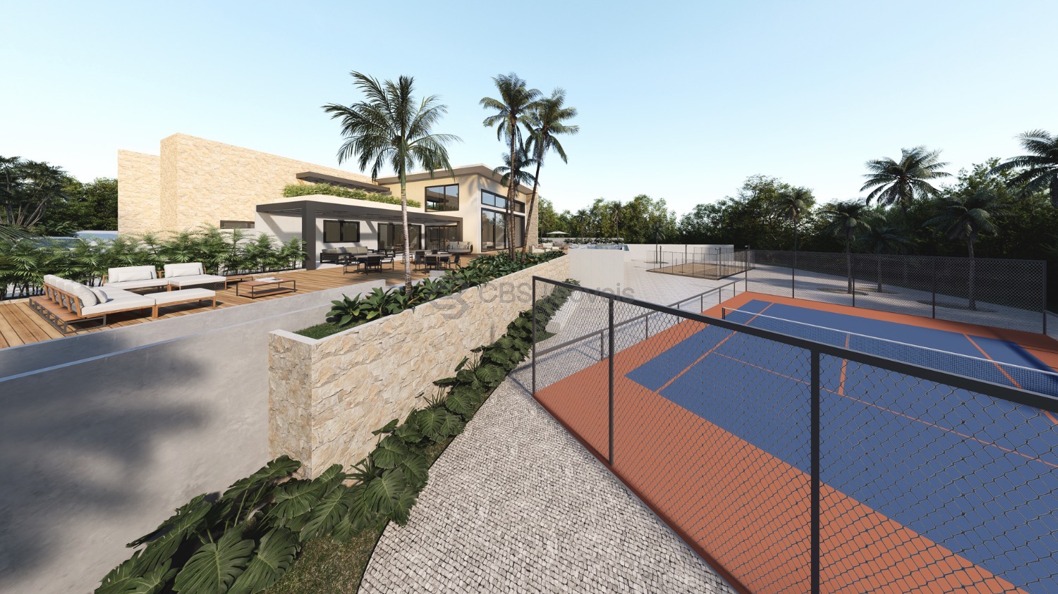 O quintal de 4.000m² foi projetado para proporcionar momentos inesquecíveis, com piscina com prainha, SPA, quadra de tênis, quadra de areia e vestiários de apoio, compondo um verdadeiro clube privativo dentro de casa.
