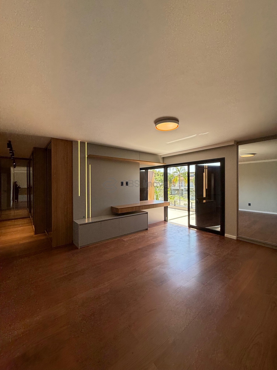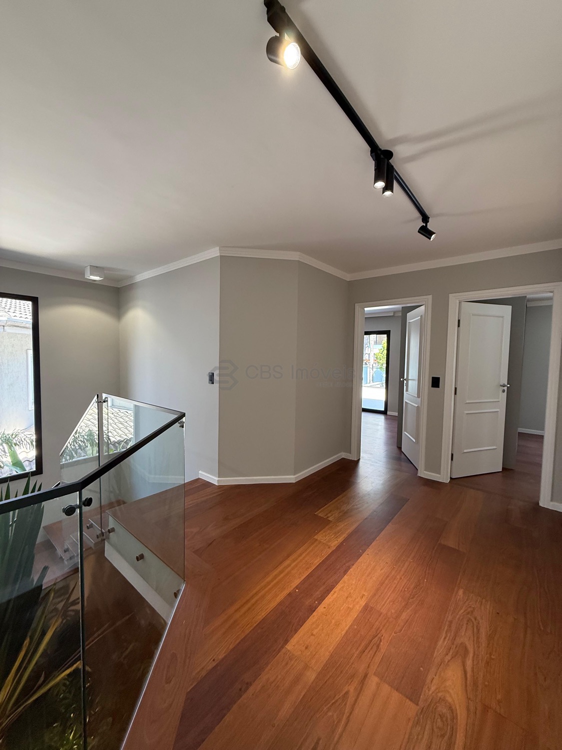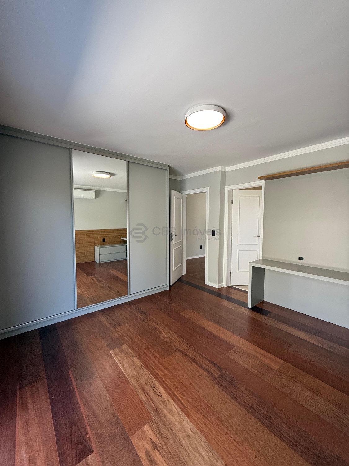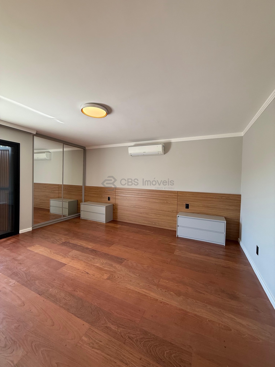 O imóvel dispõe de 4 suítes, sendo uma térrea e três no pavimento superior, todas com armários planejados. A suíte master é um verdadeiro refúgio, com closet espelhado em vidro refletivo bronze, proporcionando sofisticação e amplitude.