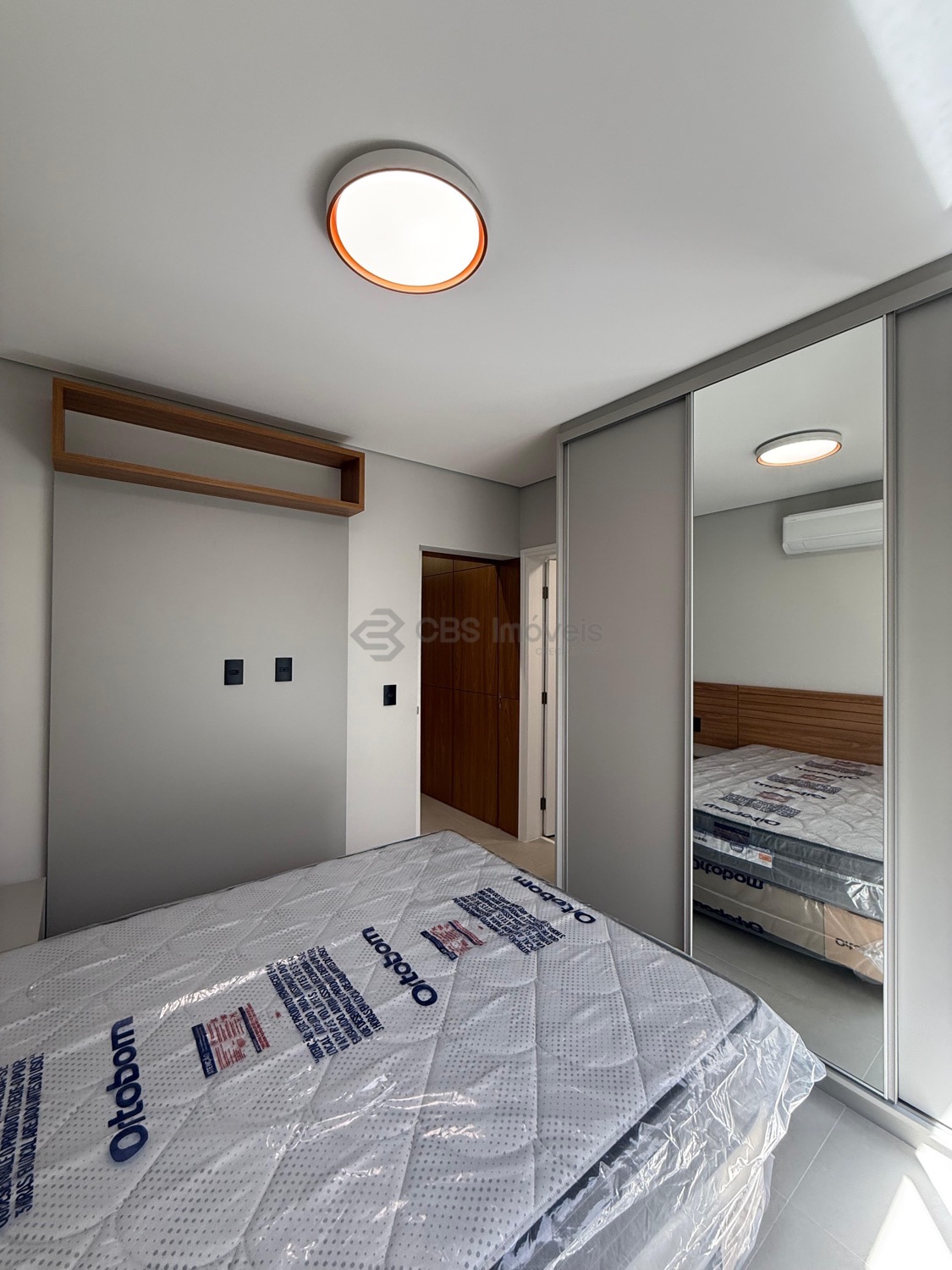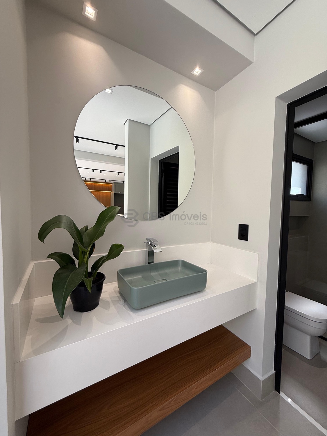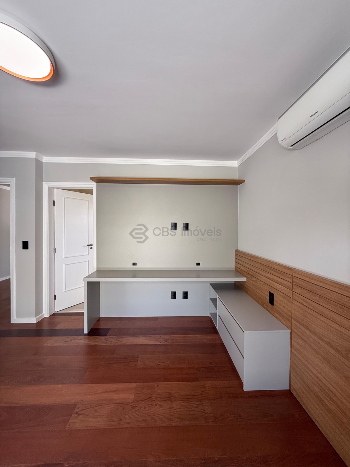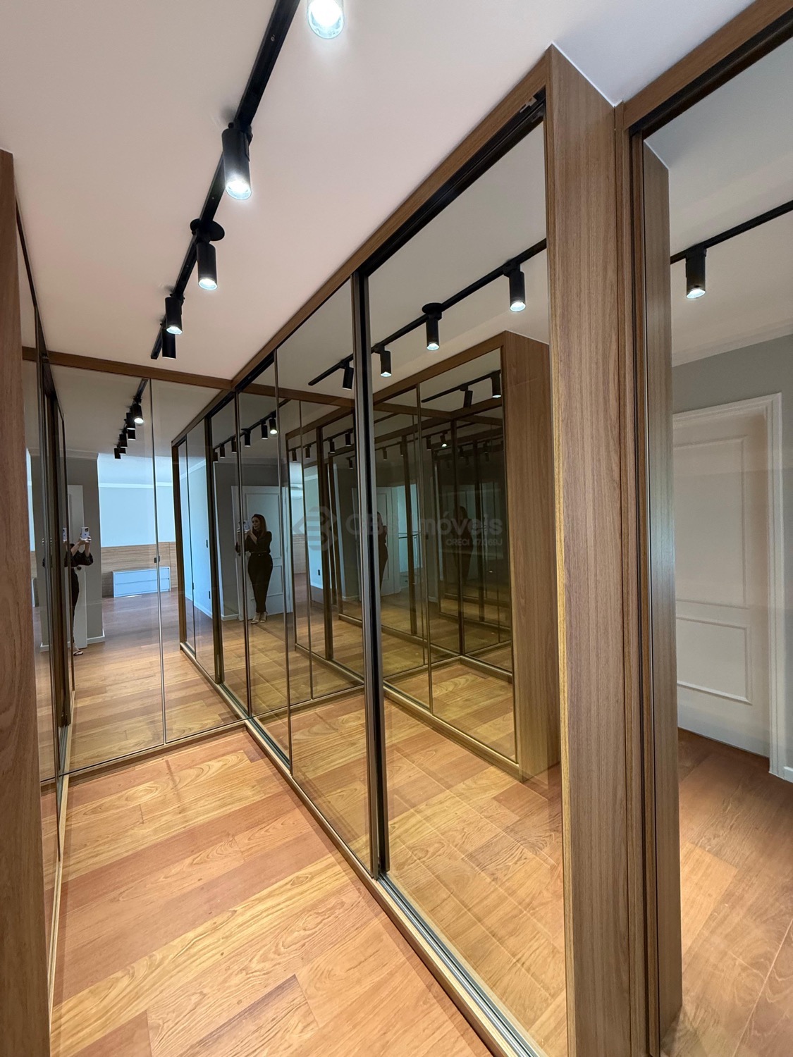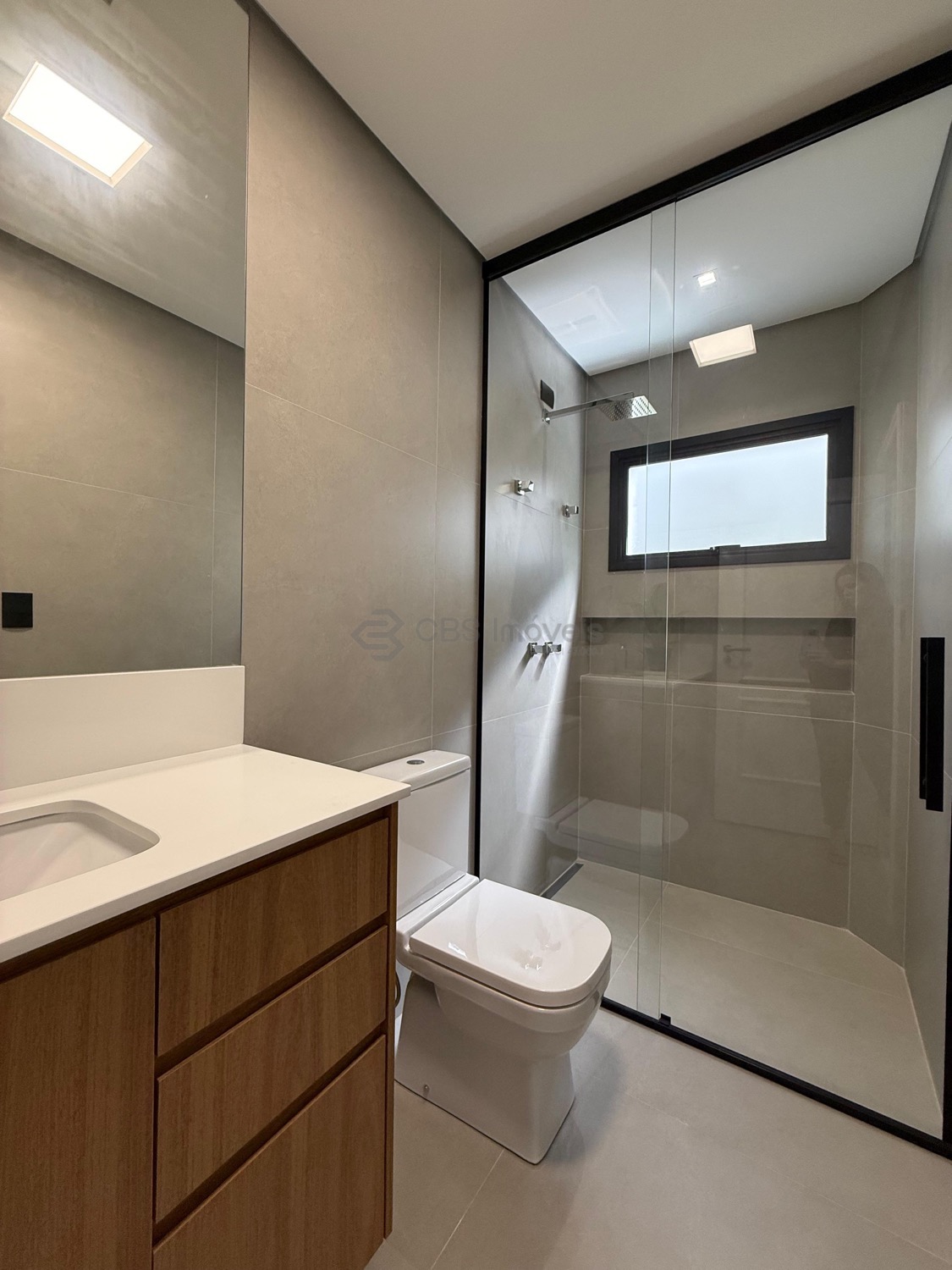 O imóvel dispõe de 4 suítes, sendo uma térrea e três no pavimento superior, todas com armários planejados. A suíte master é um verdadeiro refúgio, com closet espelhado em vidro refletivo bronze, proporcionando sofisticação e amplitude.