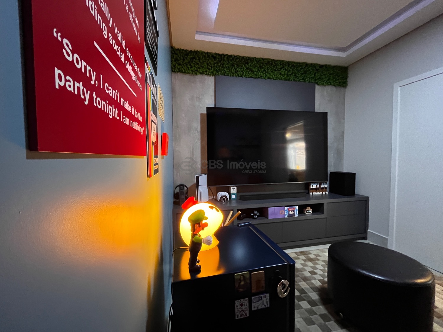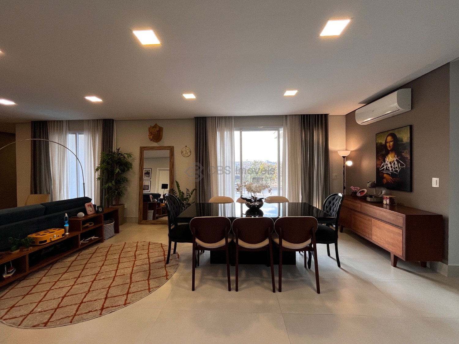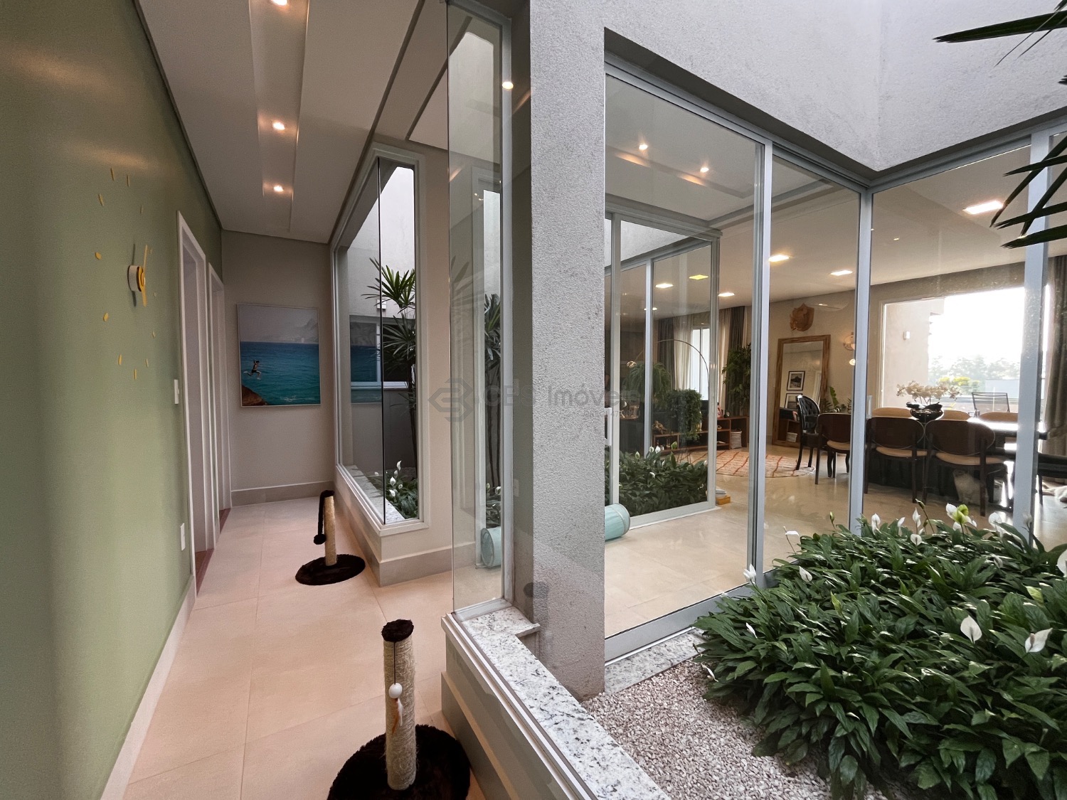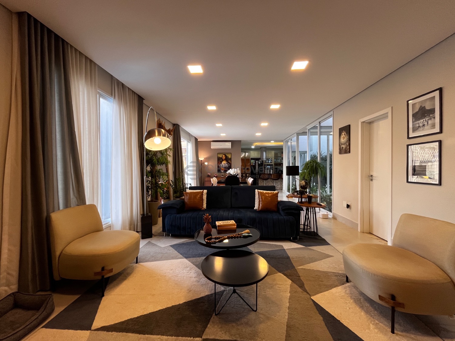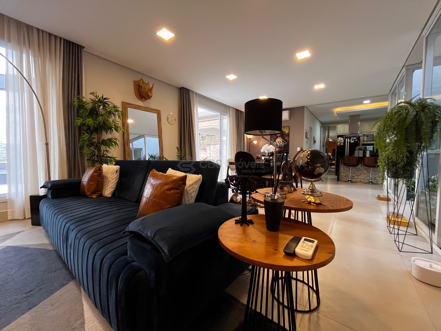 Possui, cozinha tipo americana completa de armários, sala de estar integrada com a sala de jantar, lindo jardim de inverno e home theater.