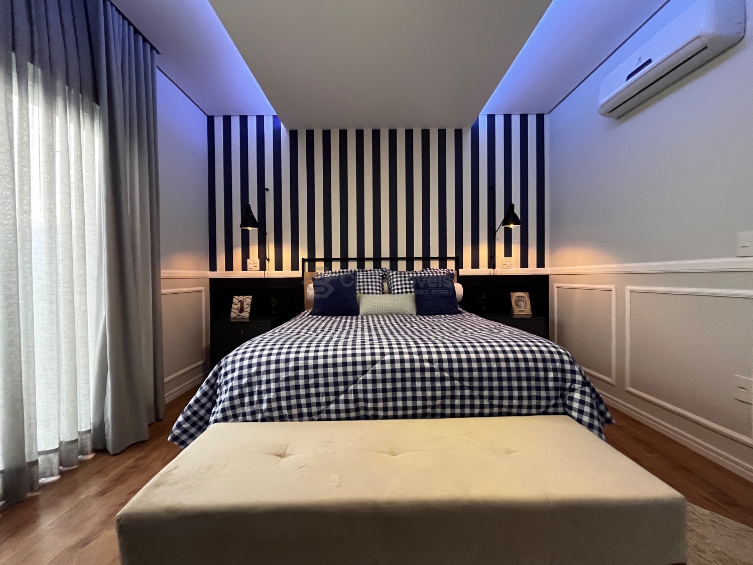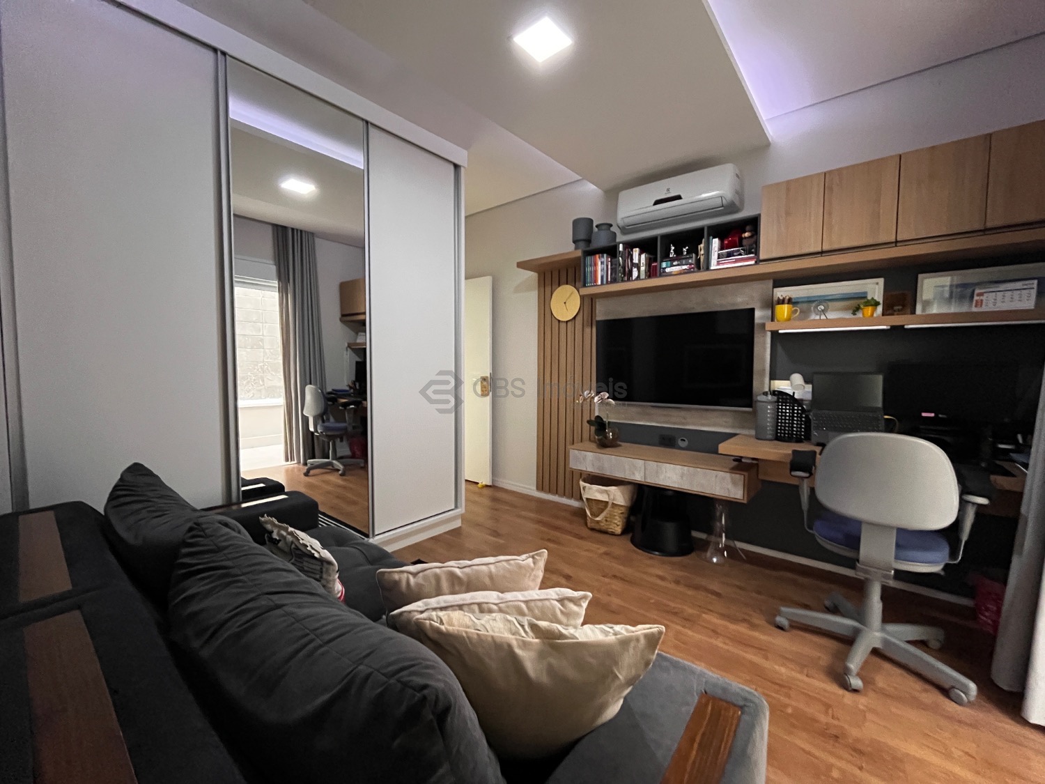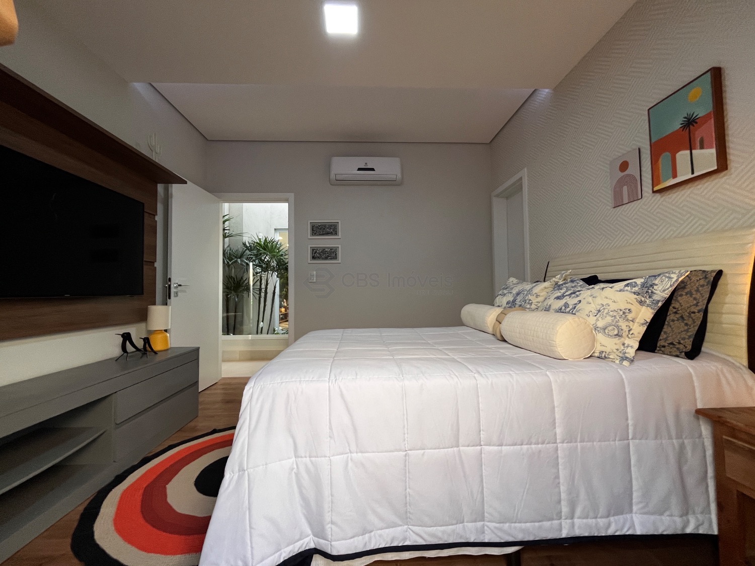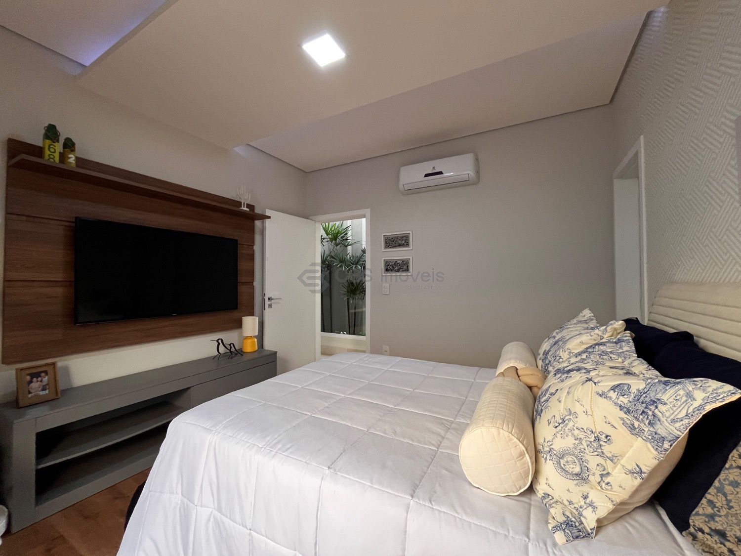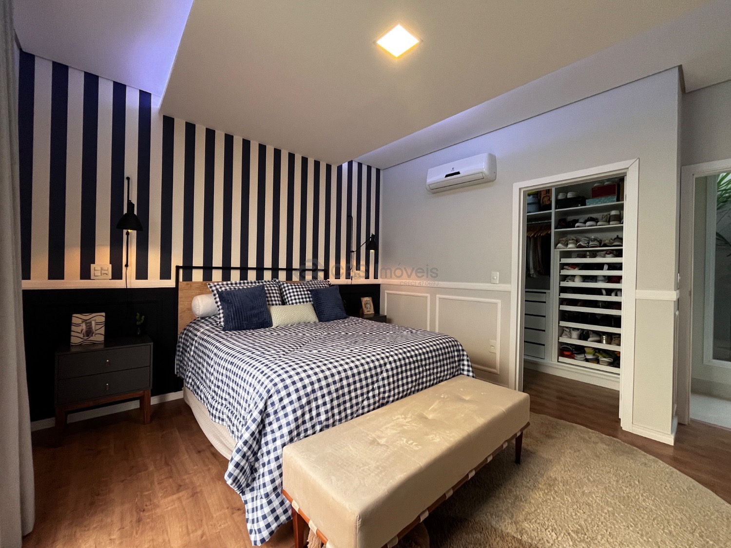 Os três quartos dessa casa são suítes avarandadas, completas de armários e com ares condicionados instalados.