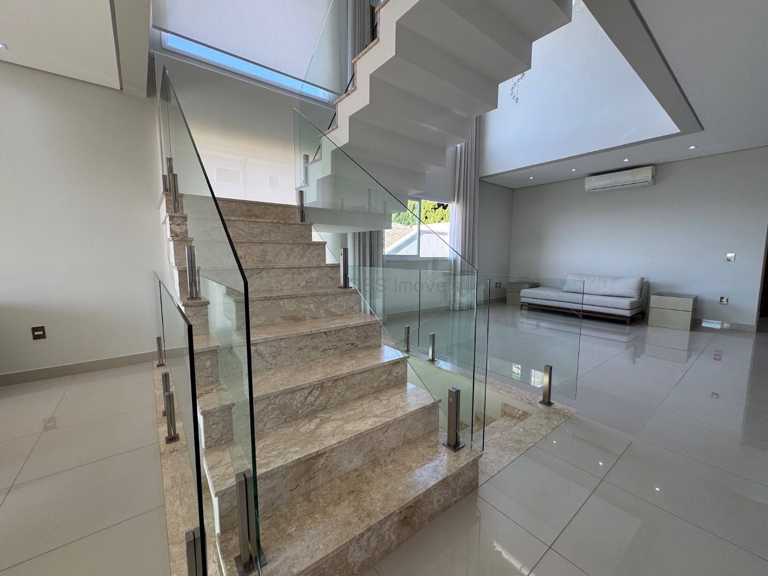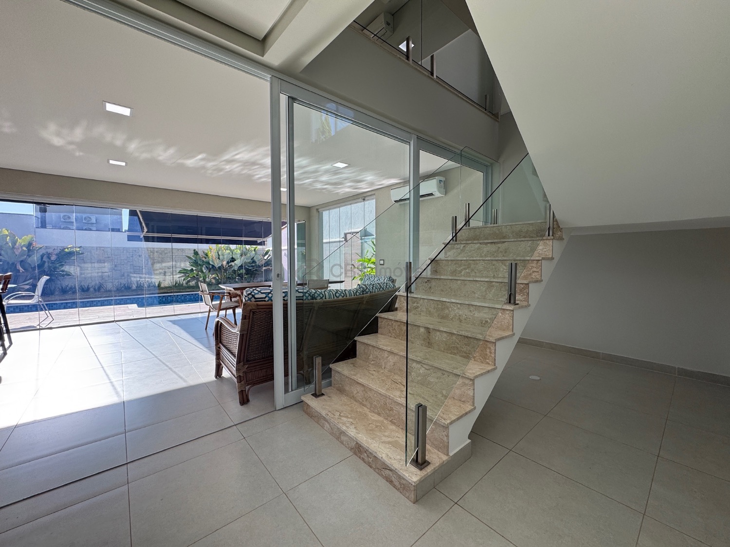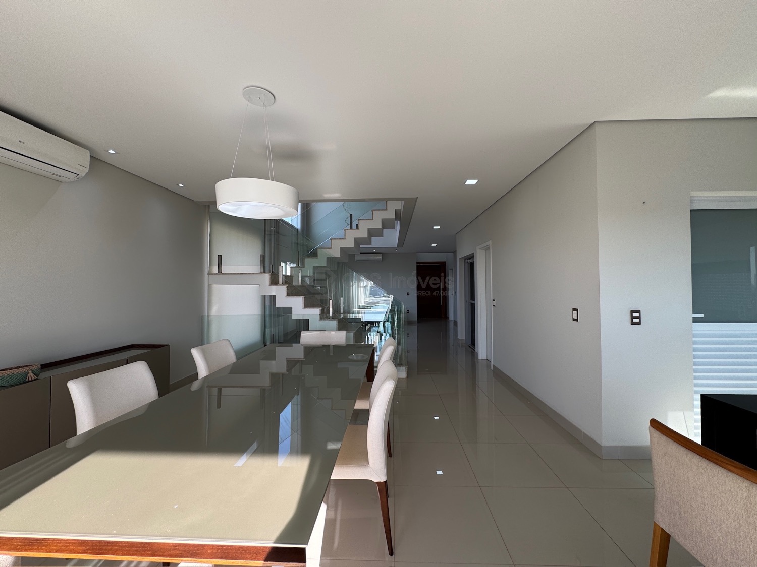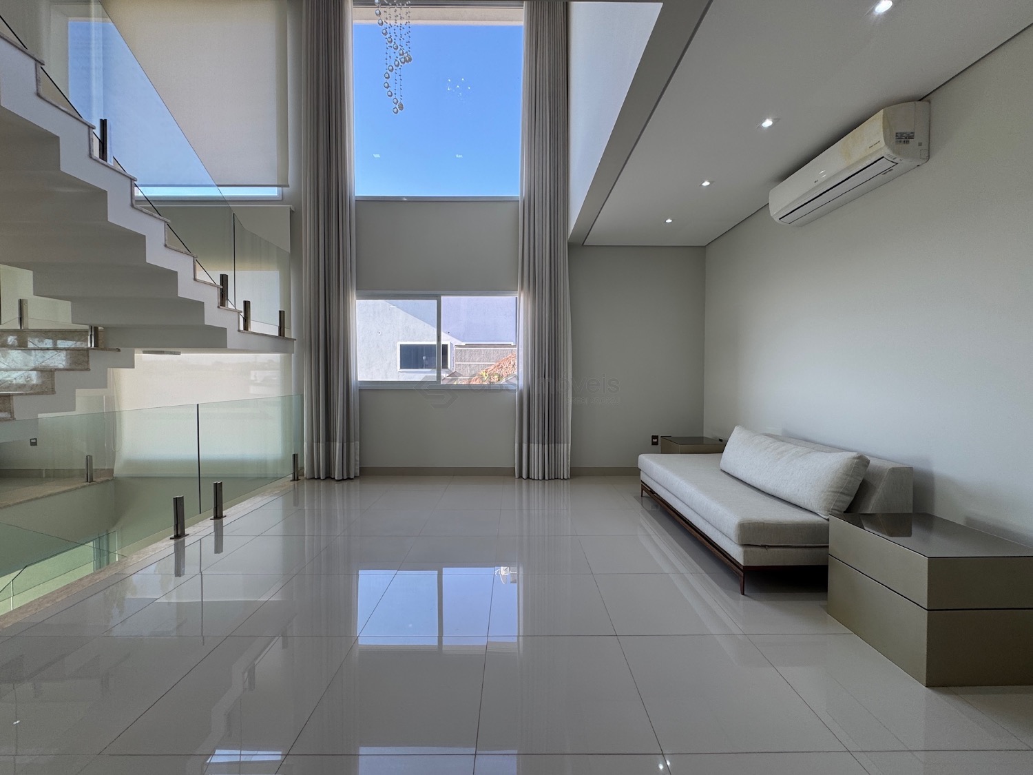 No térreo possui living para 2 ambientes com pé direito duplo e muita integração, suíte reversível, cozinha completa, lavabo, área de serviço, depósito, escritório com um fino acabamento na casa toda.