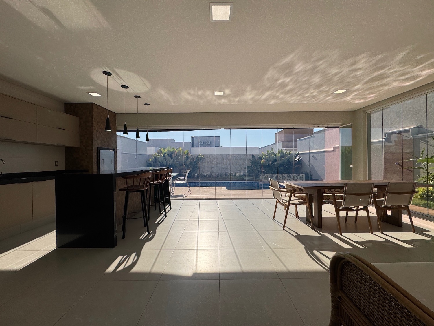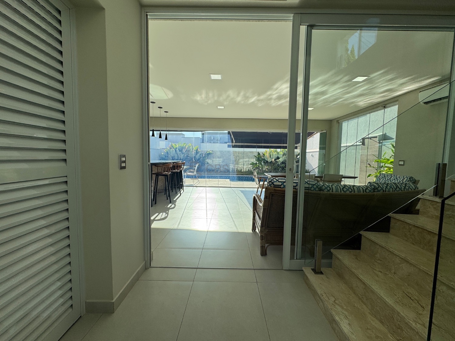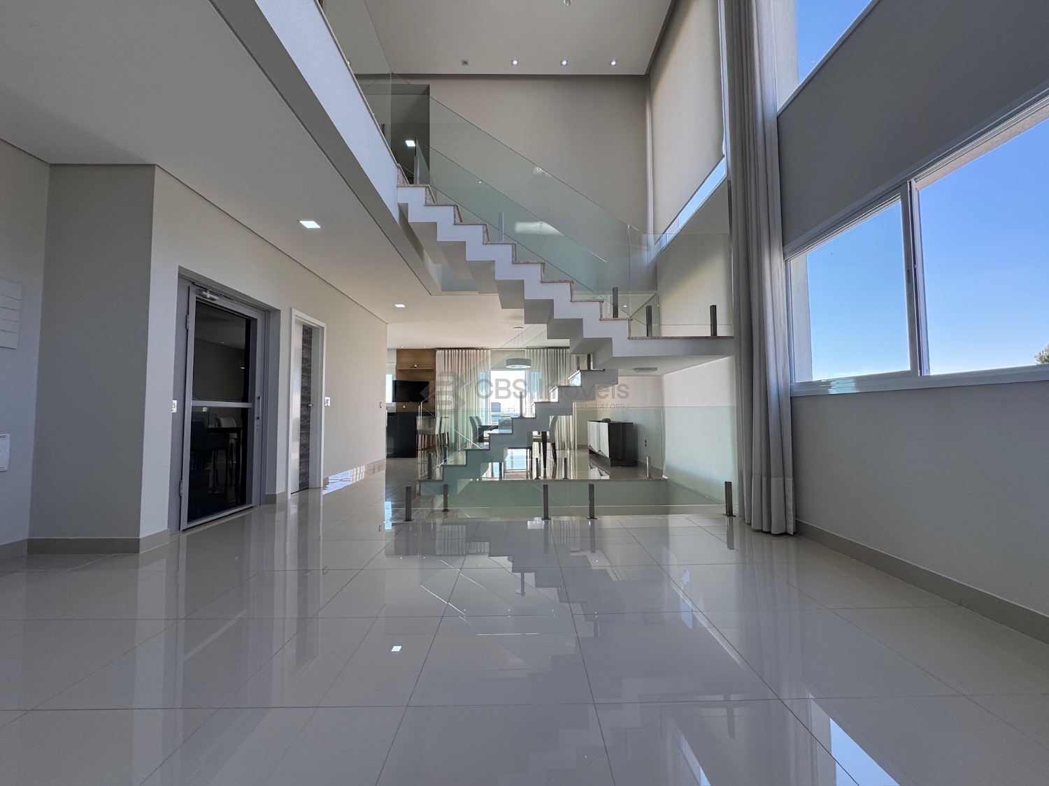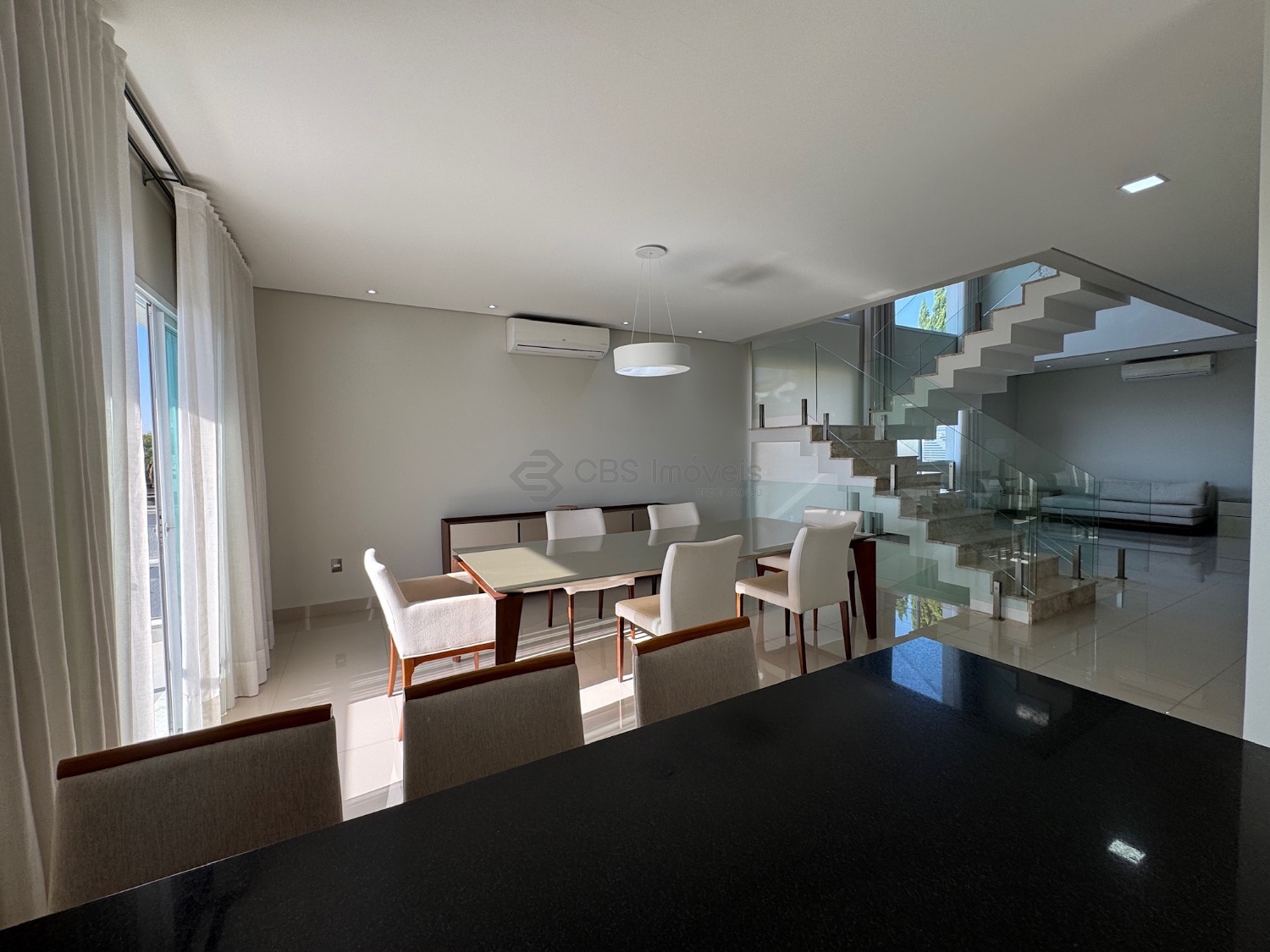 No térreo possui living para 2 ambientes com pé direito duplo e muita integração, suíte reversível, cozinha completa, lavabo, área de serviço, depósito, escritório com um fino acabamento na casa toda.
