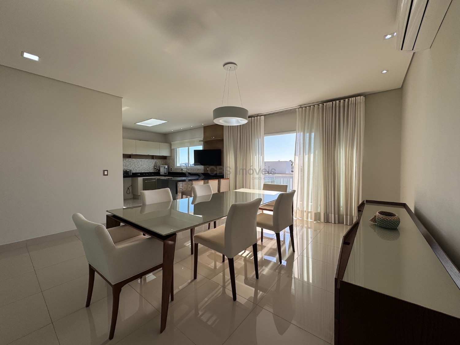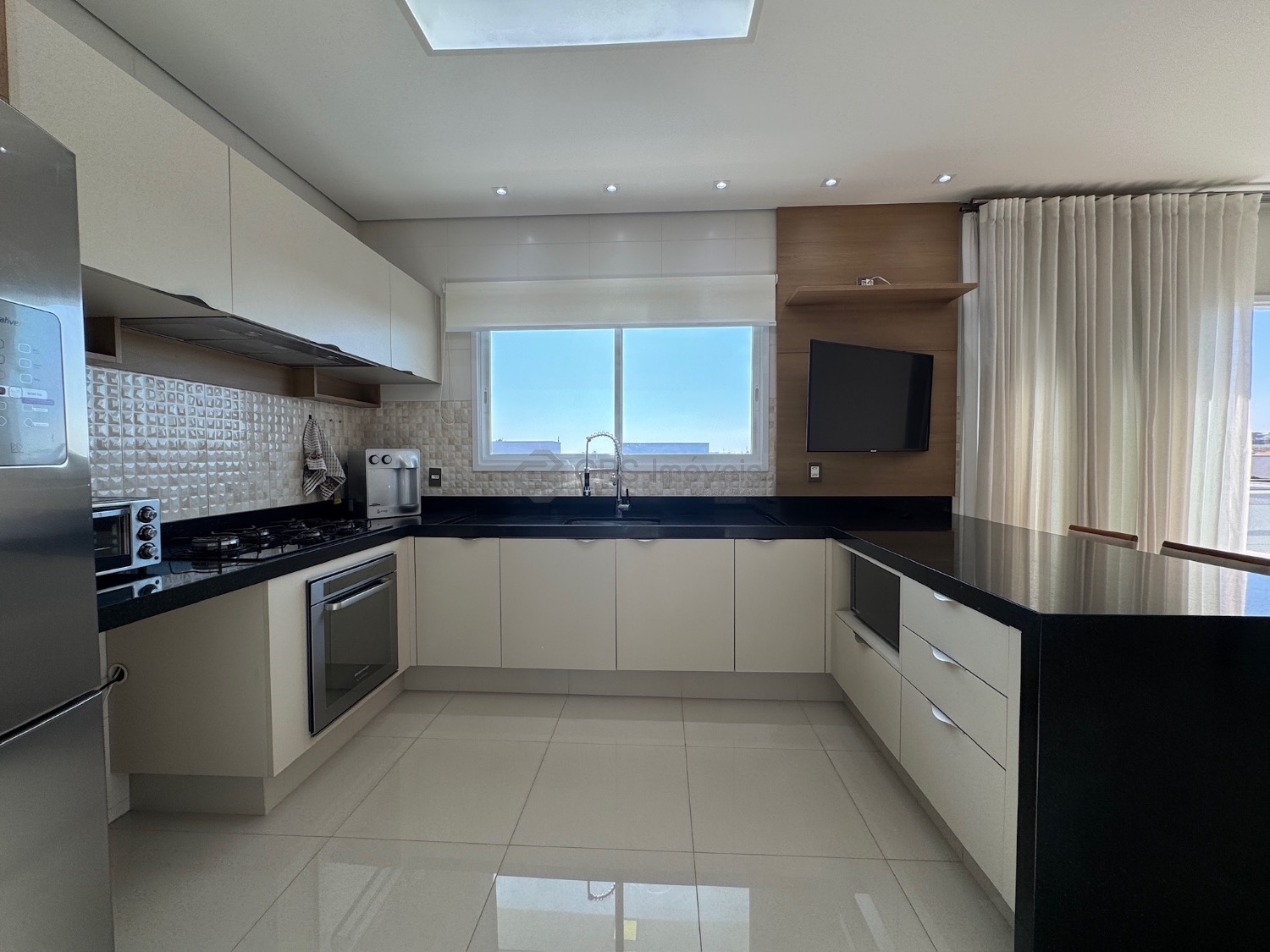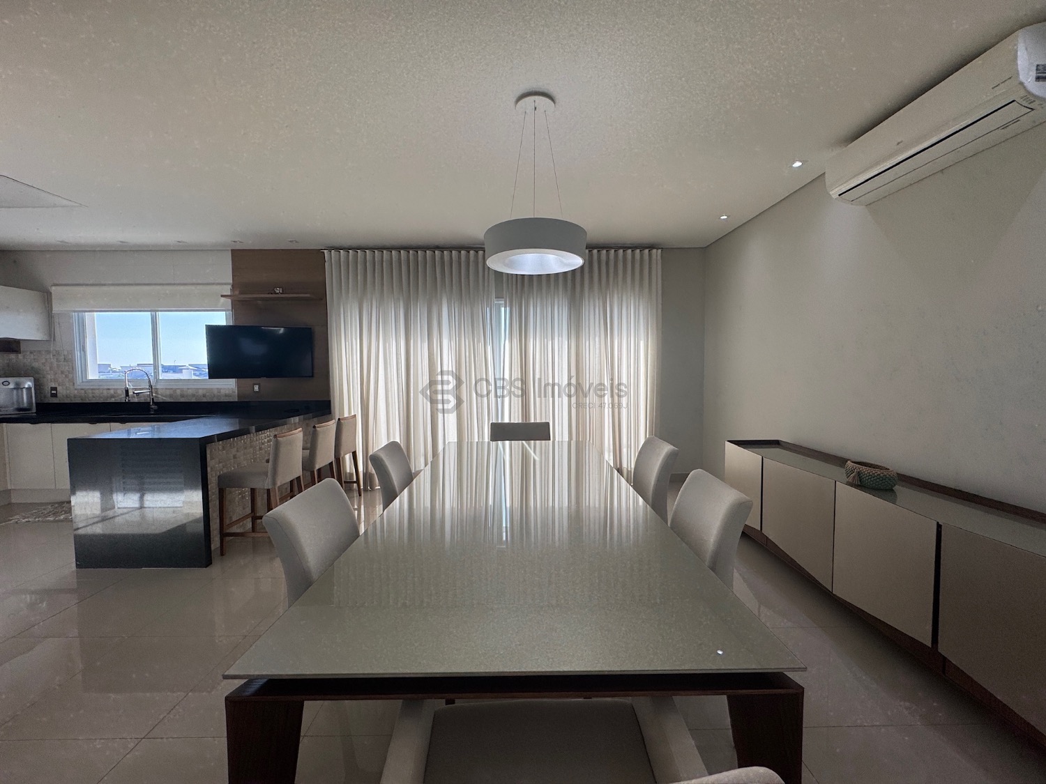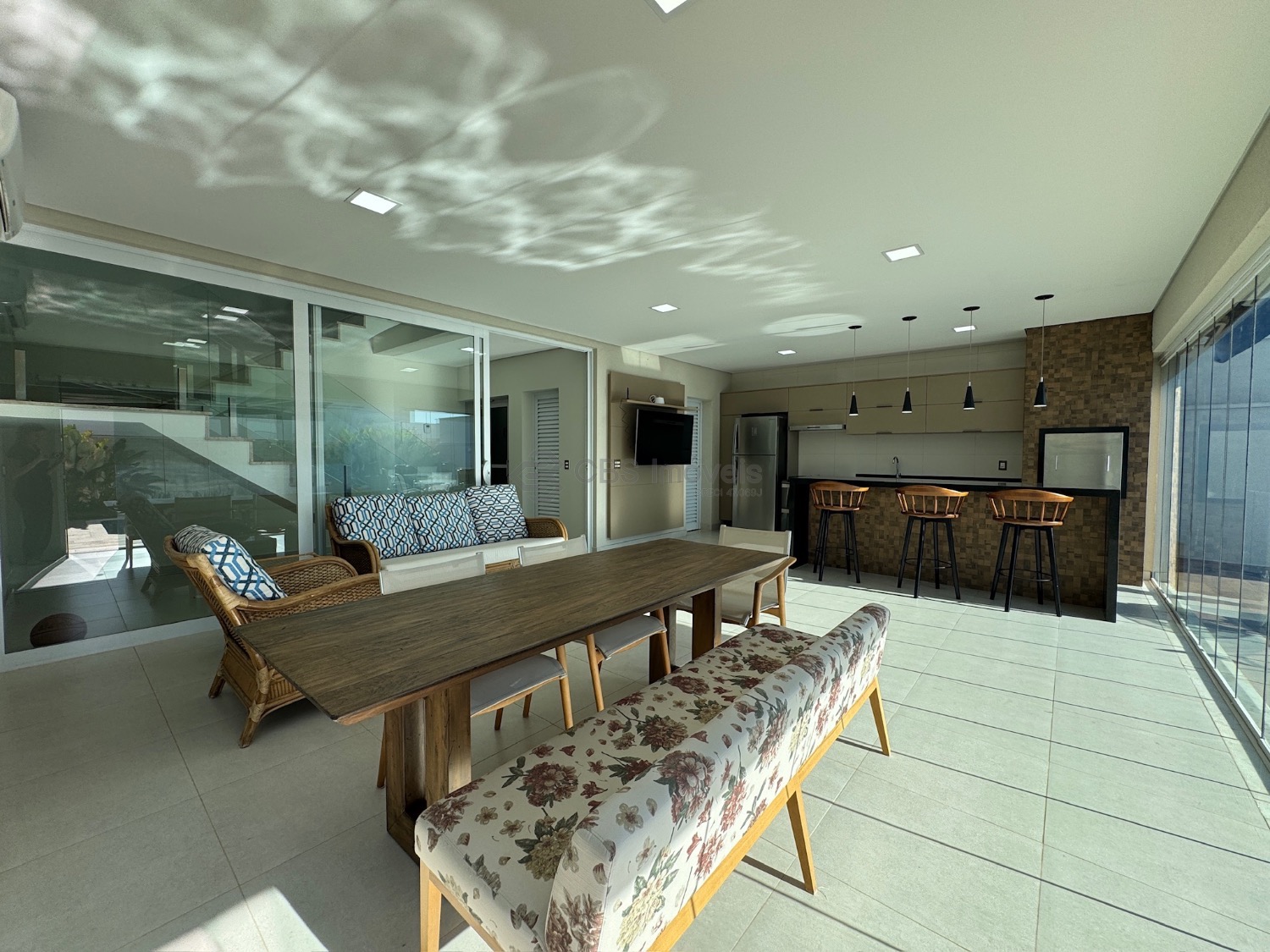 Lista dos móveis que ficarão no imóvel: mesa de jantar, aparador, sofá, geladeira, cooktop, microondas, máquina de lavar roupa, tv da cozinha, tv área de lazer, mesa área de lazer e fogão.