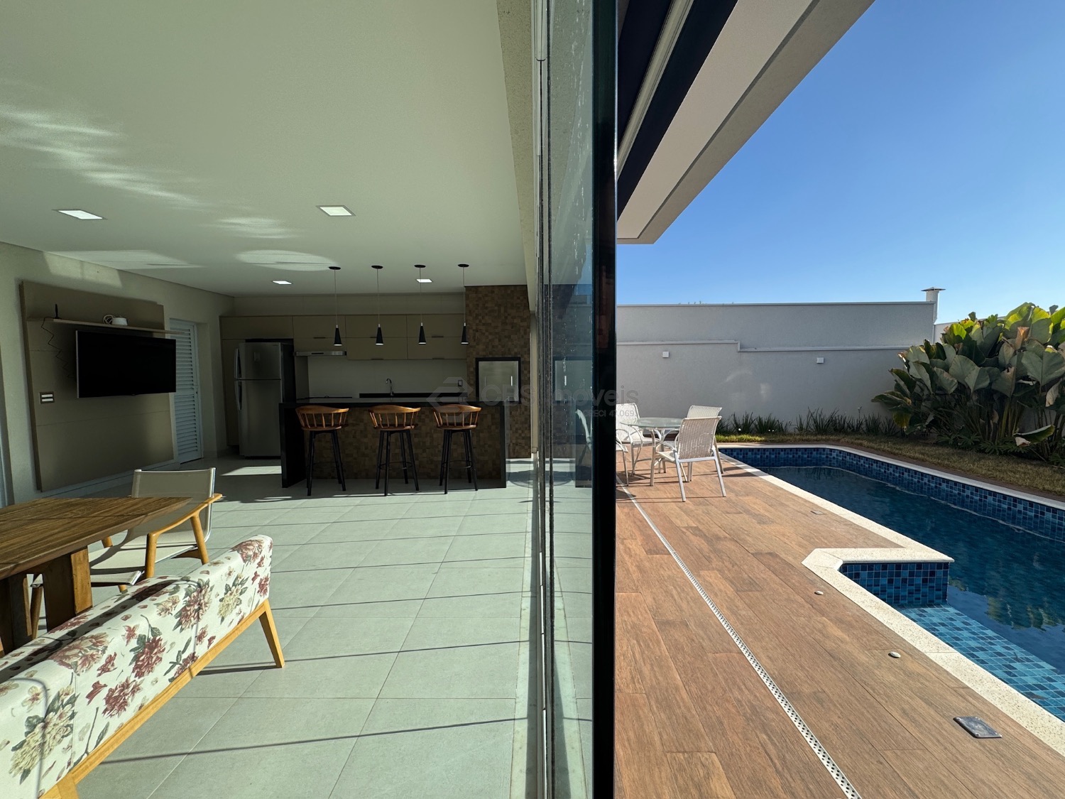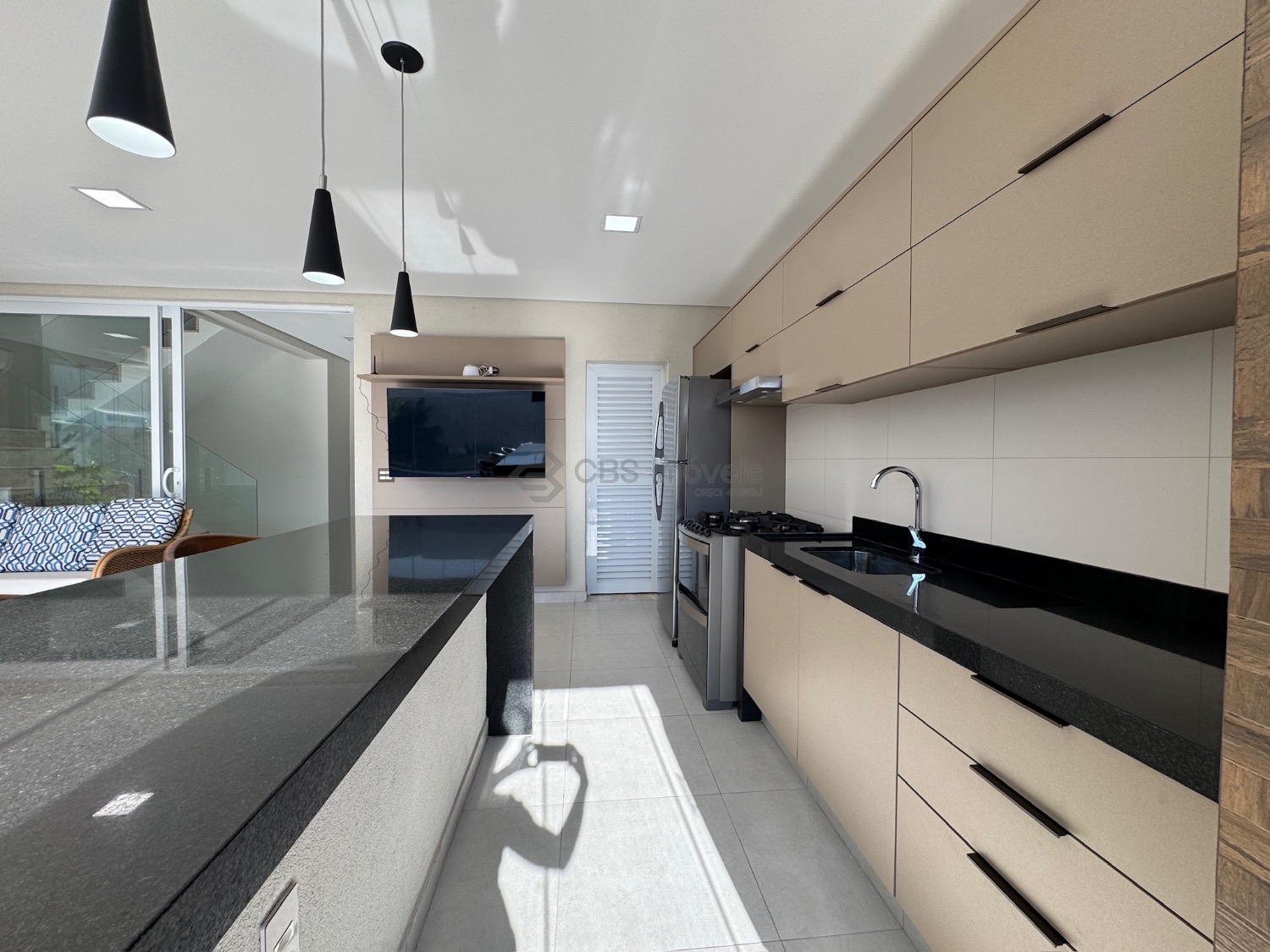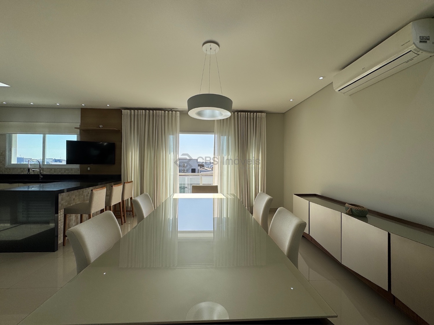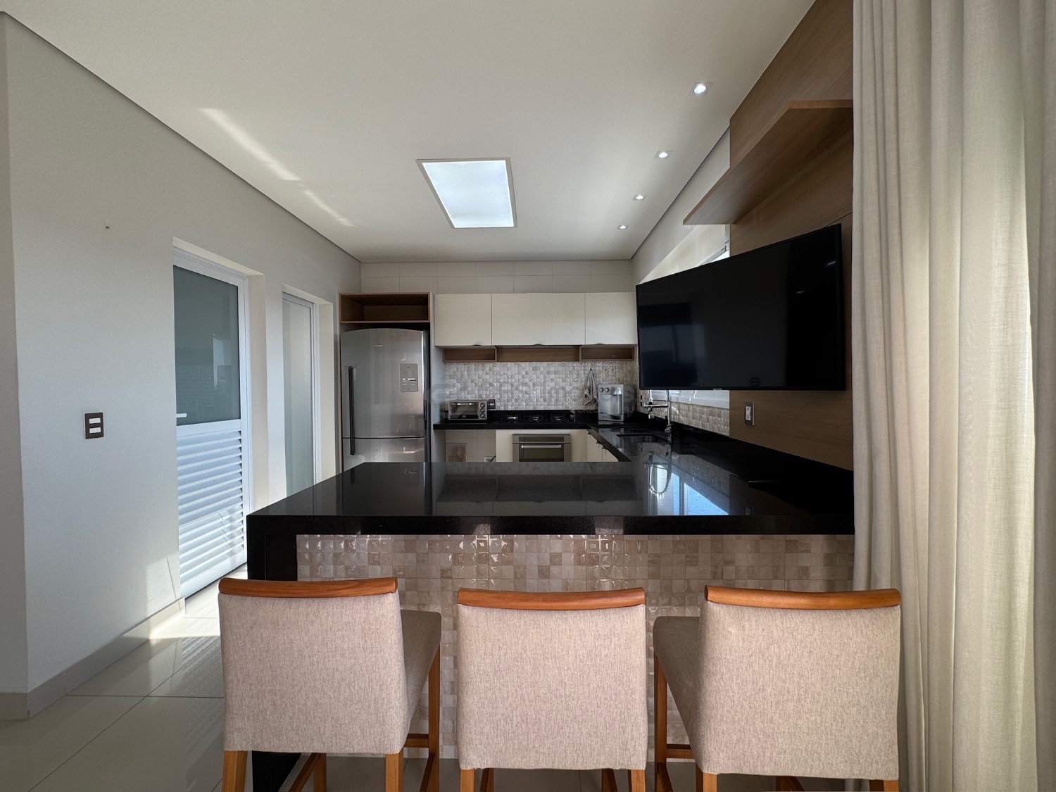 Lista dos móveis que ficarão no imóvel: mesa de jantar, aparador, sofá, geladeira, cooktop, microondas, máquina de lavar roupa, tv da cozinha, tv área de lazer, mesa área de lazer e fogão.