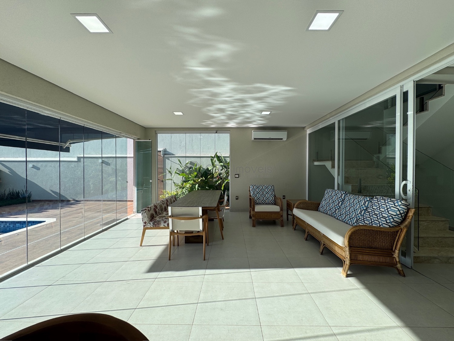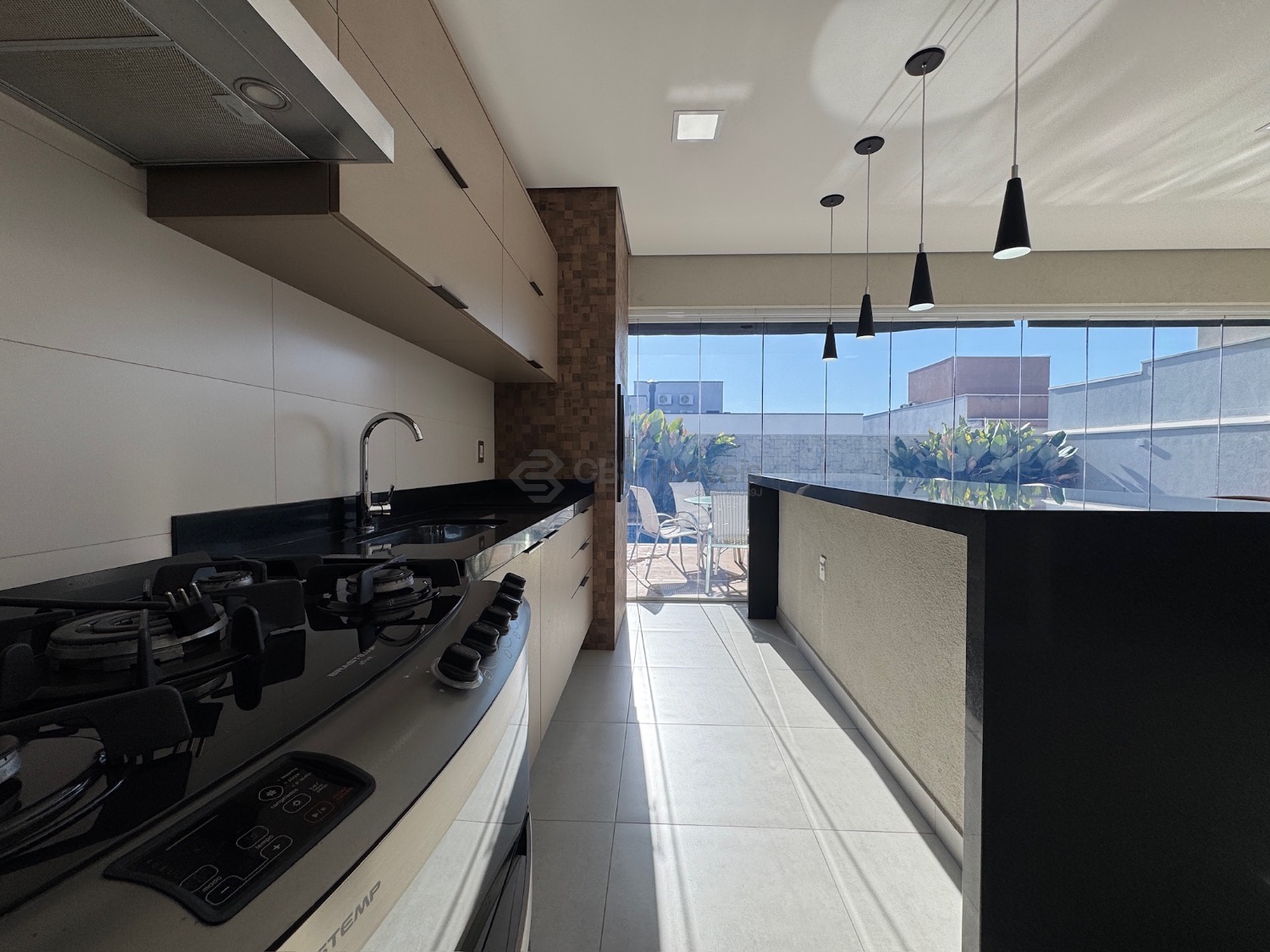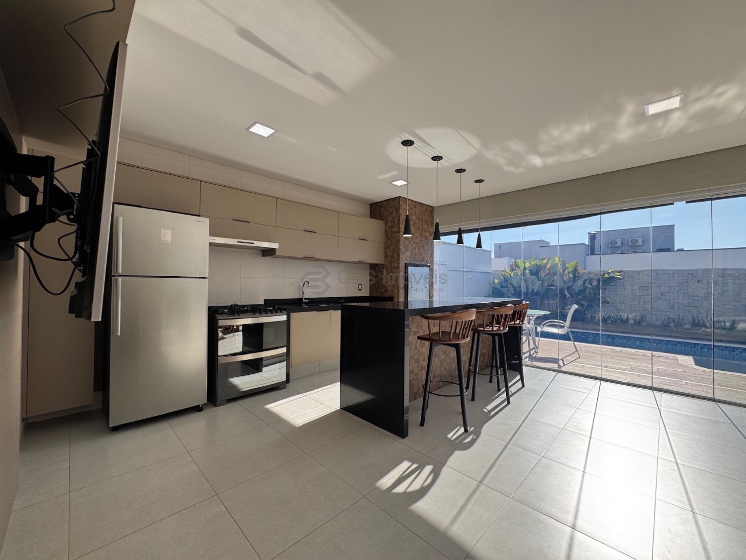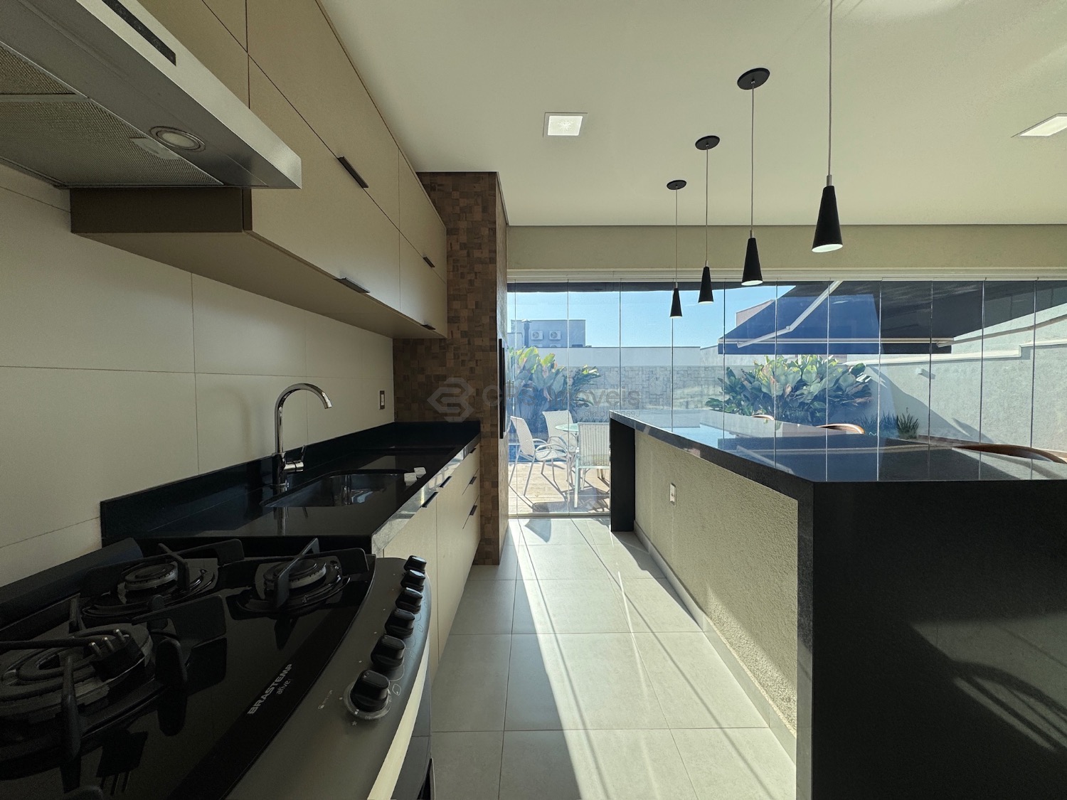 Lista dos móveis que ficarão no imóvel: mesa de jantar, aparador, sofá, geladeira, cooktop, microondas, máquina de lavar roupa, tv da cozinha, tv área de lazer, mesa área de lazer e fogão.