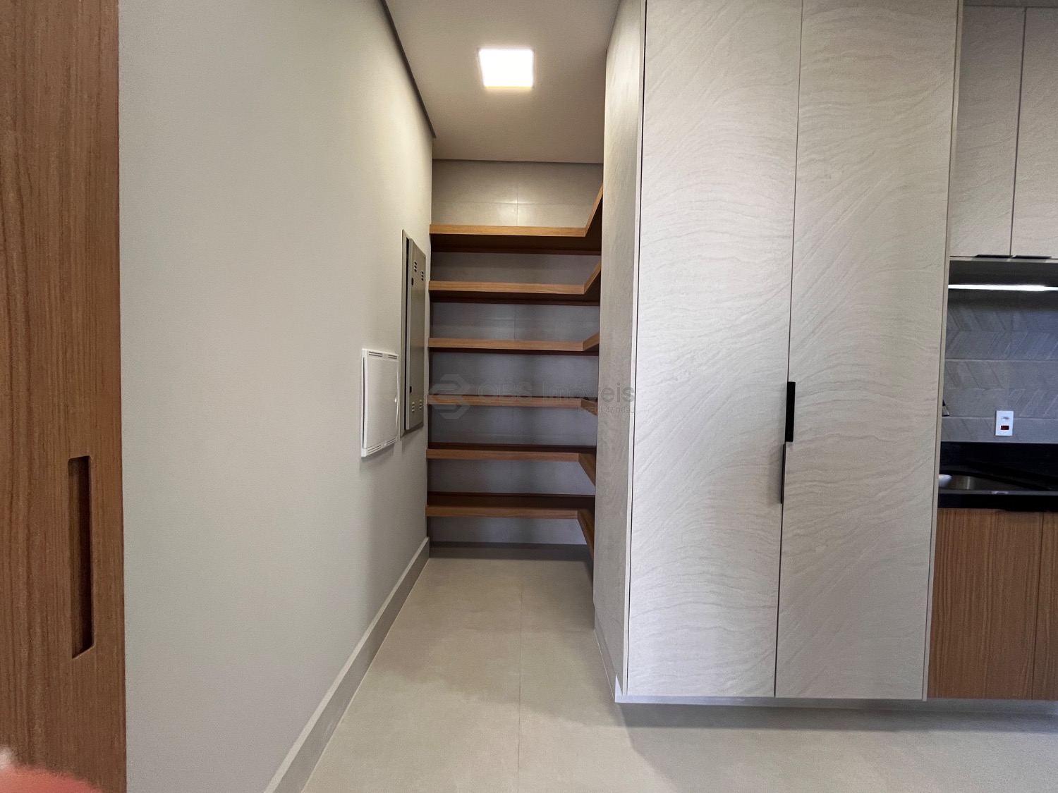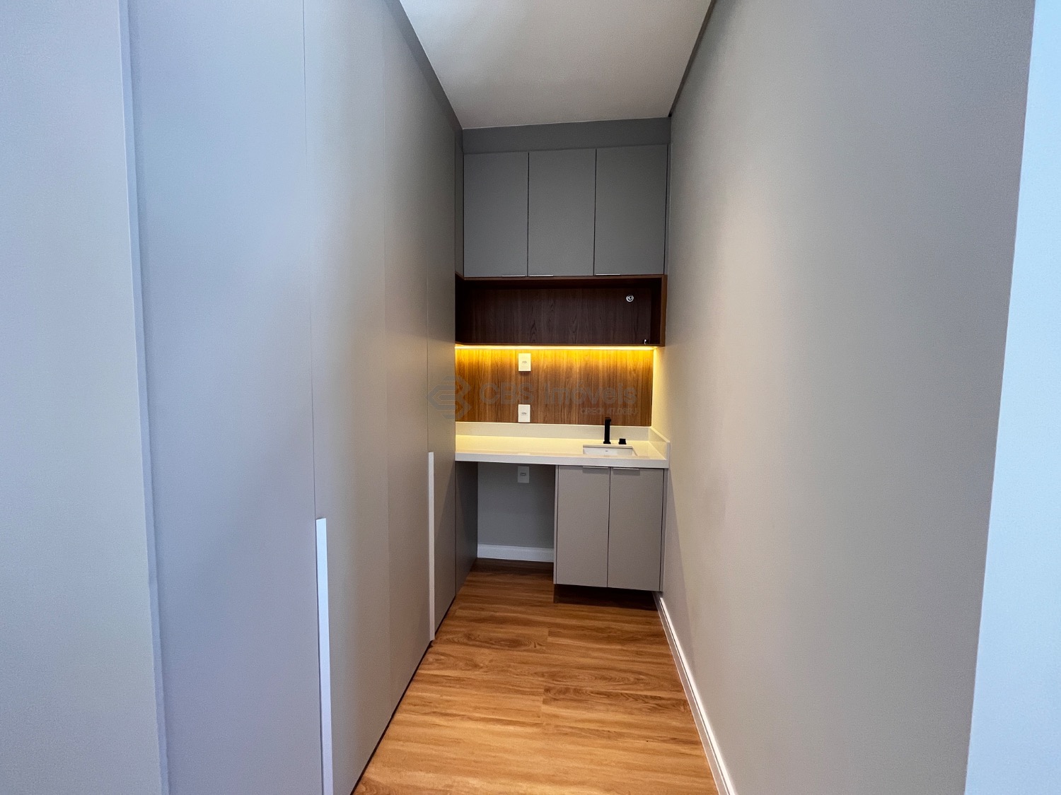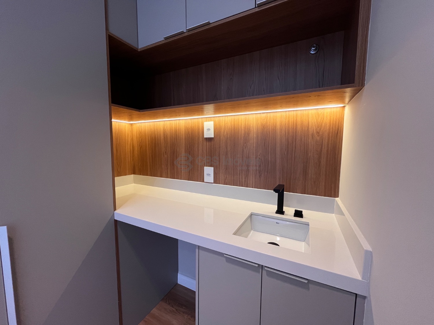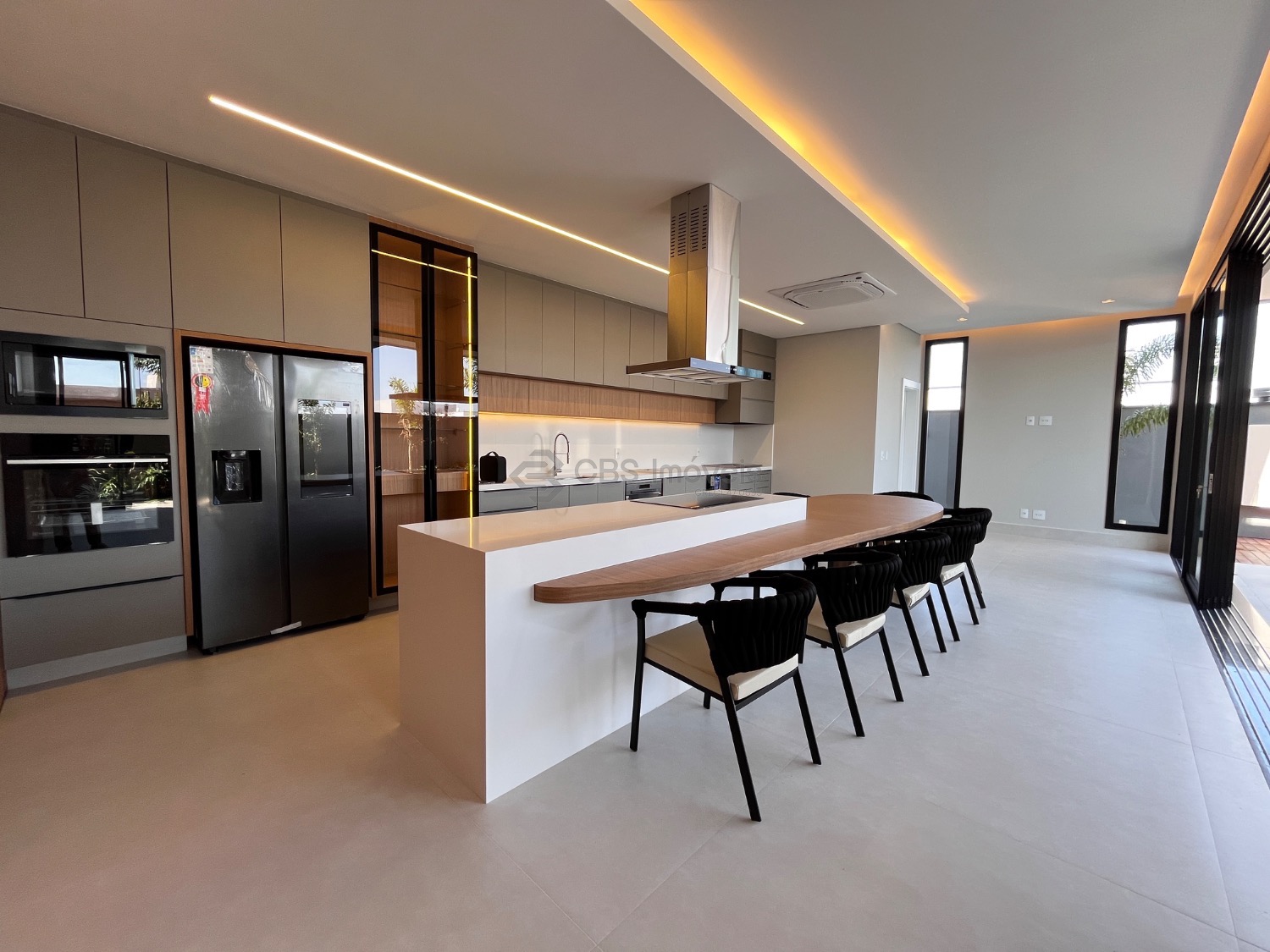 A cozinha é tipo americana, com linda mesa projetada para o ambiente, possui eletrodomésticos instaldos, inclusive cervejeira e forno elétrico com função air fryer.
