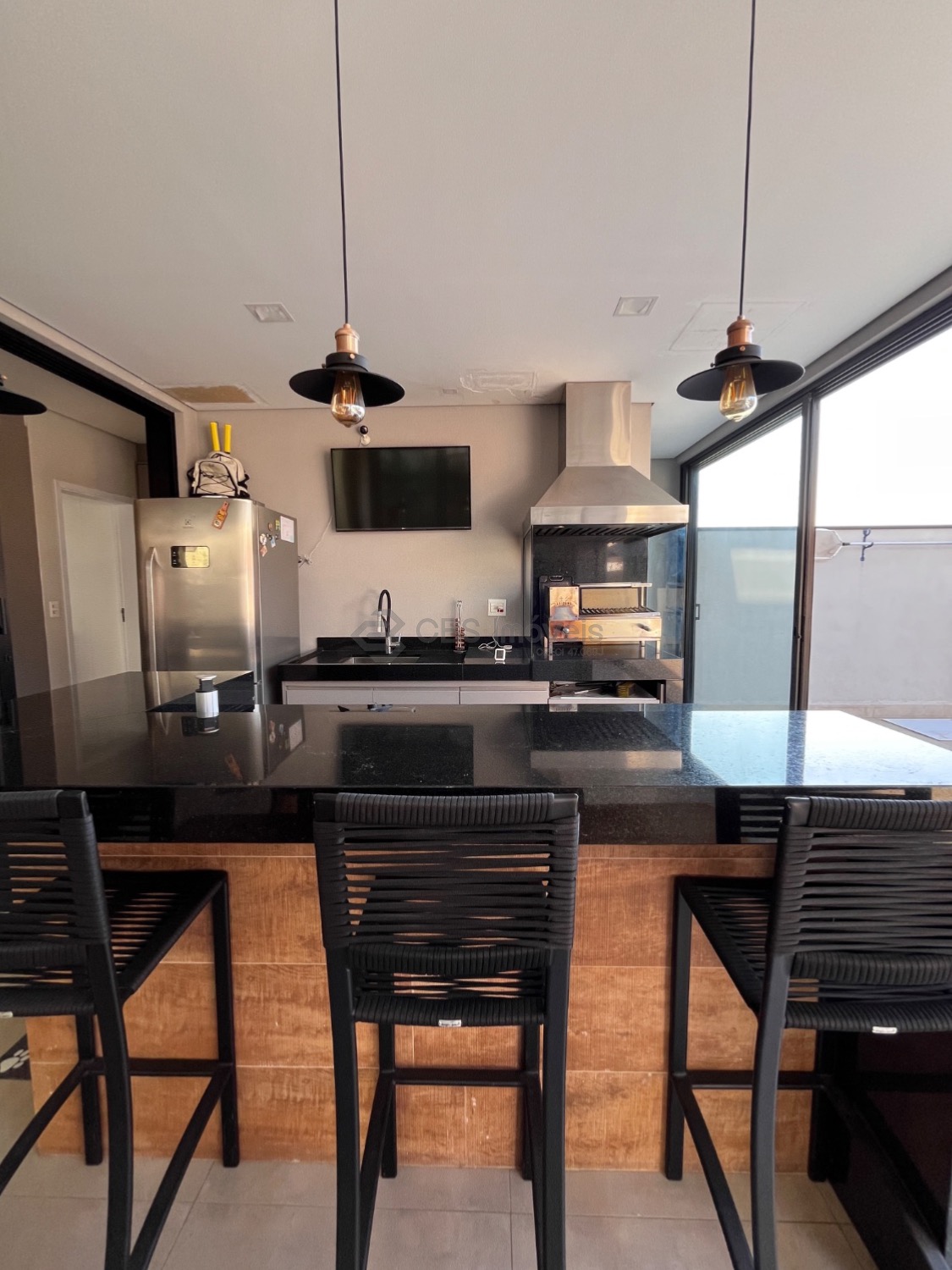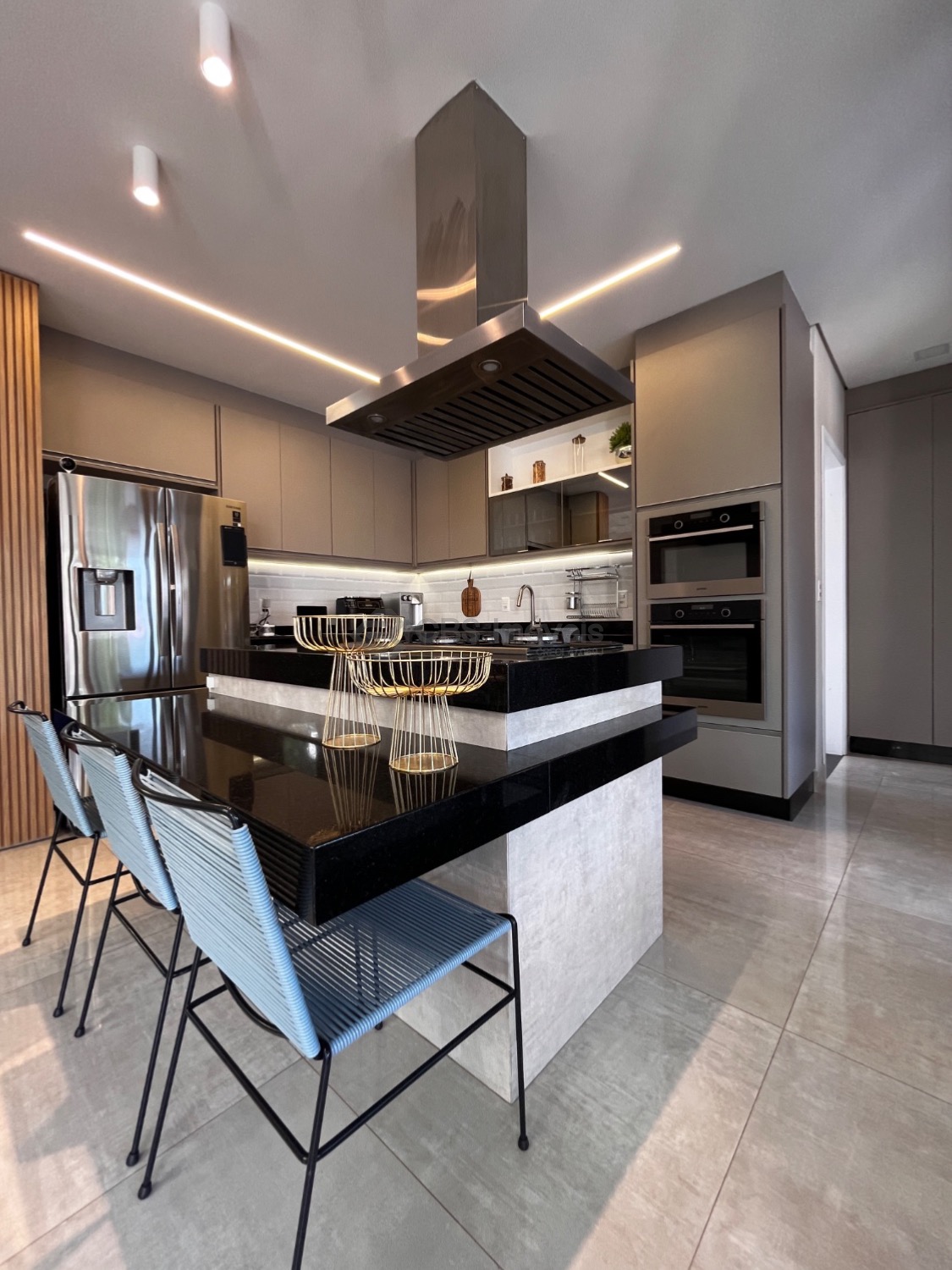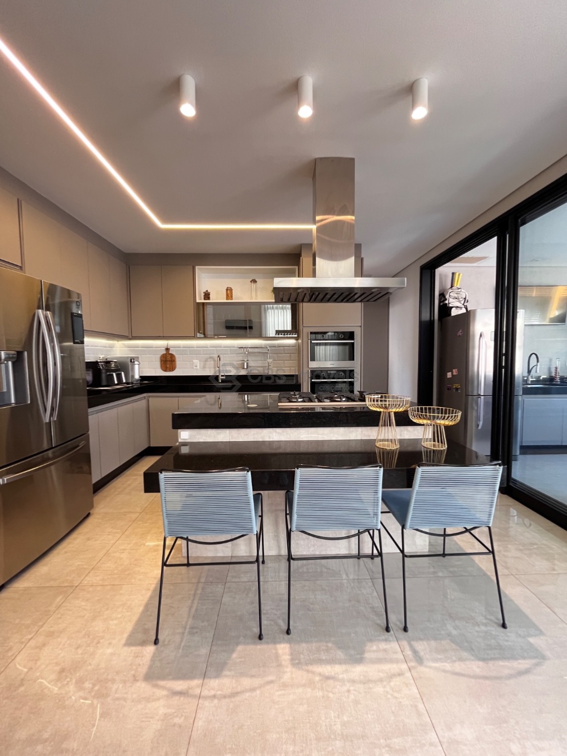 A cozinha é tipo americana, completa com armários e eletrodomésticos de primeira linha. Ela ainda possui lavabo, área de serviço, depósito e um fino acabamento por toda casa!