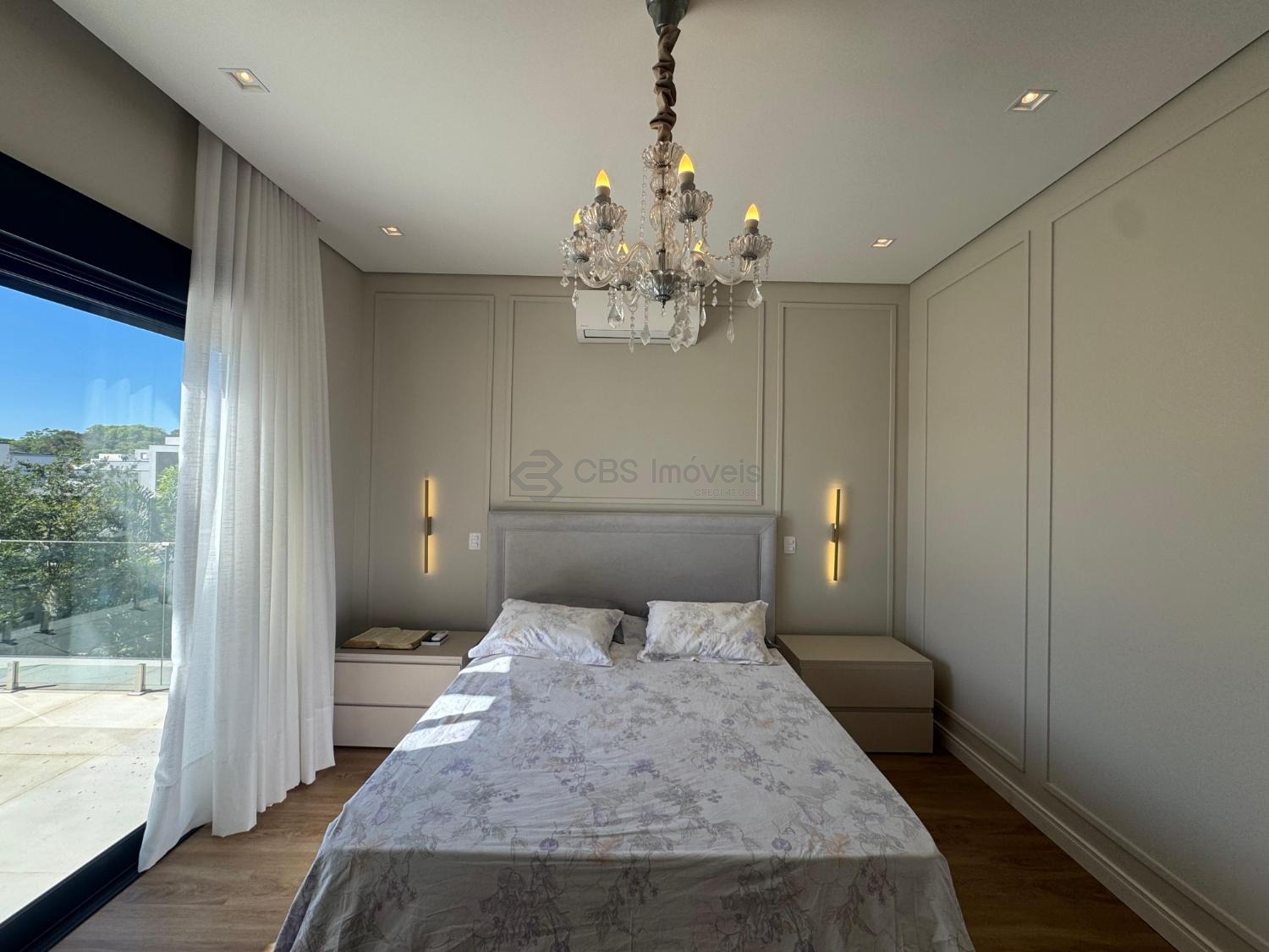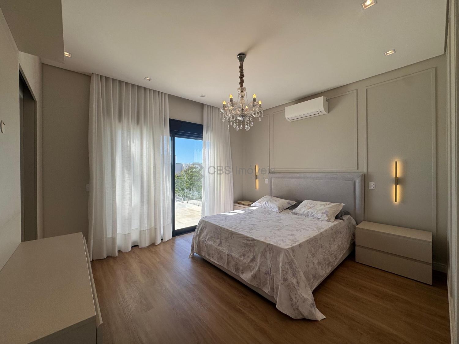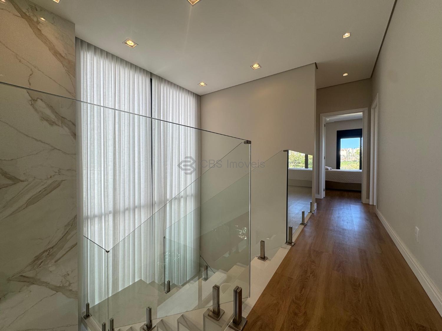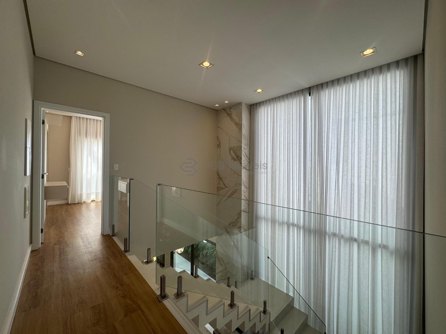No piso superior 3 suítes, sendo a master com closet em vidro reflecta, ar condicionado, varanda, persiana elétrica.