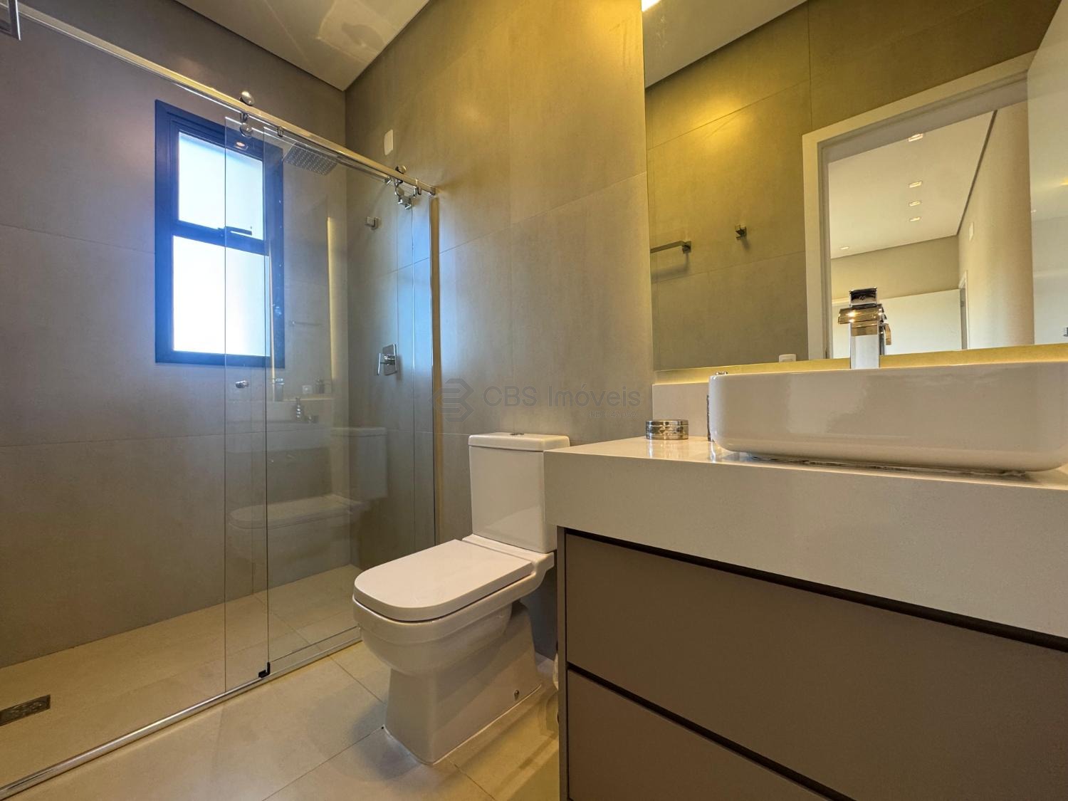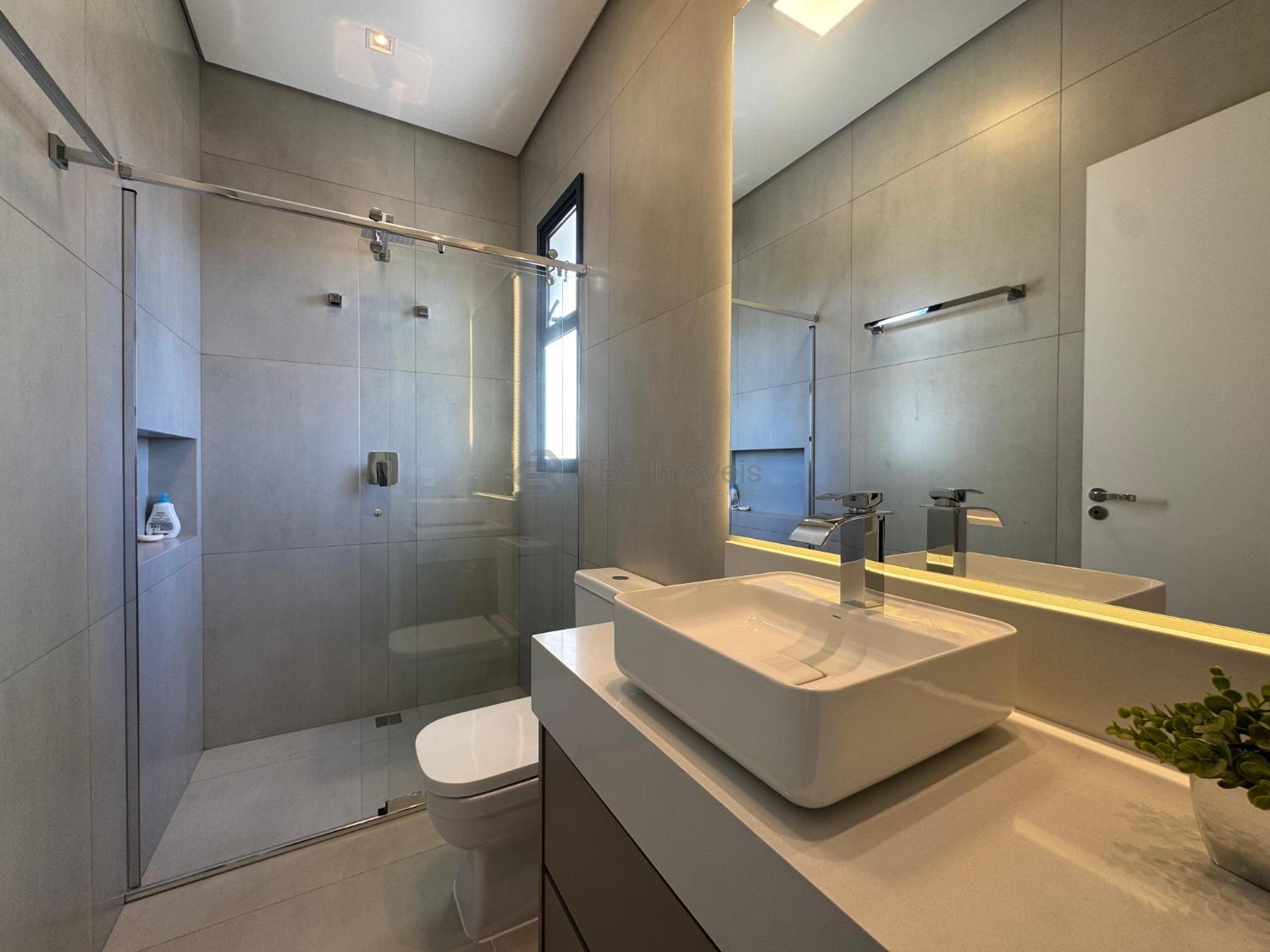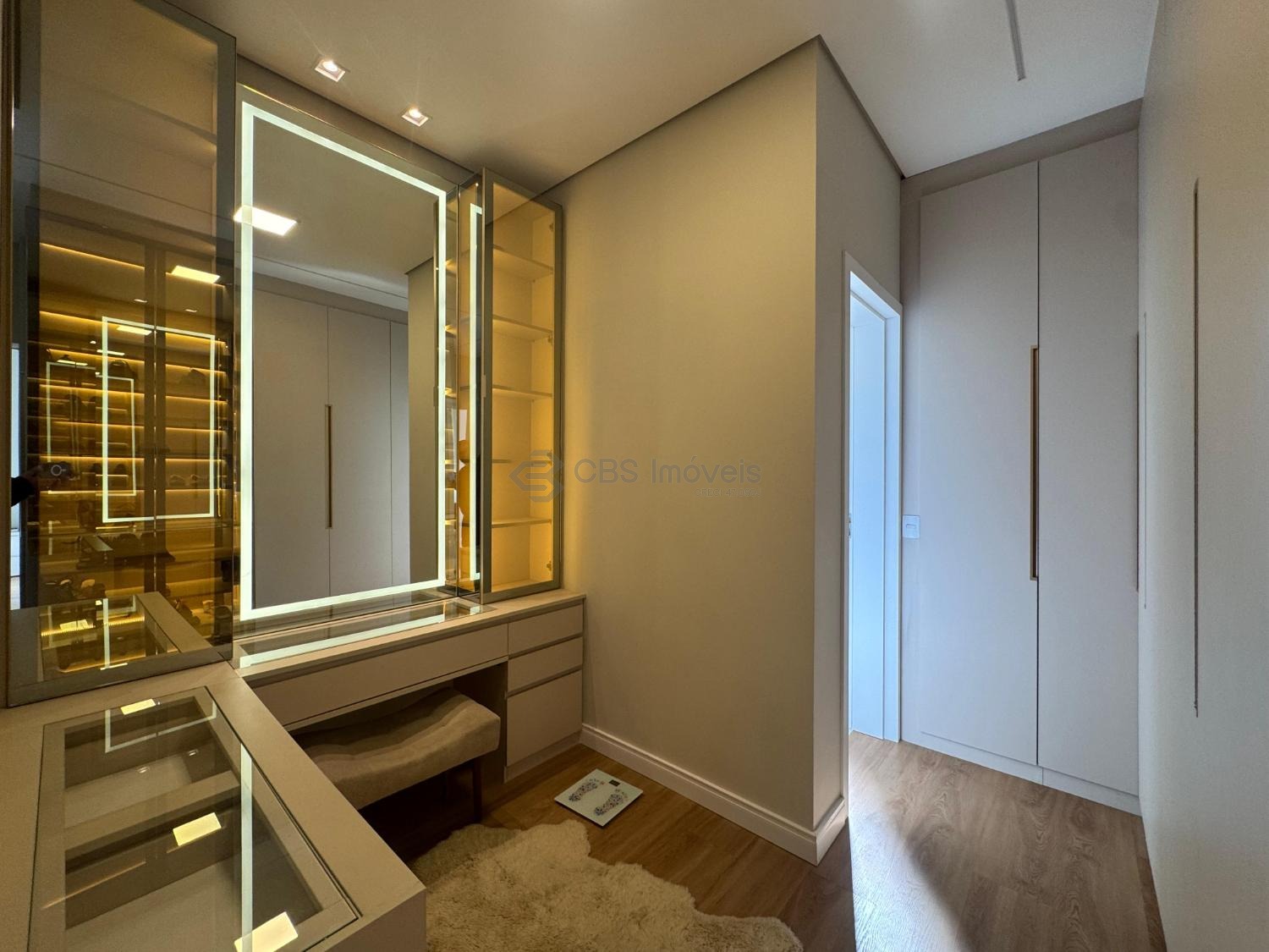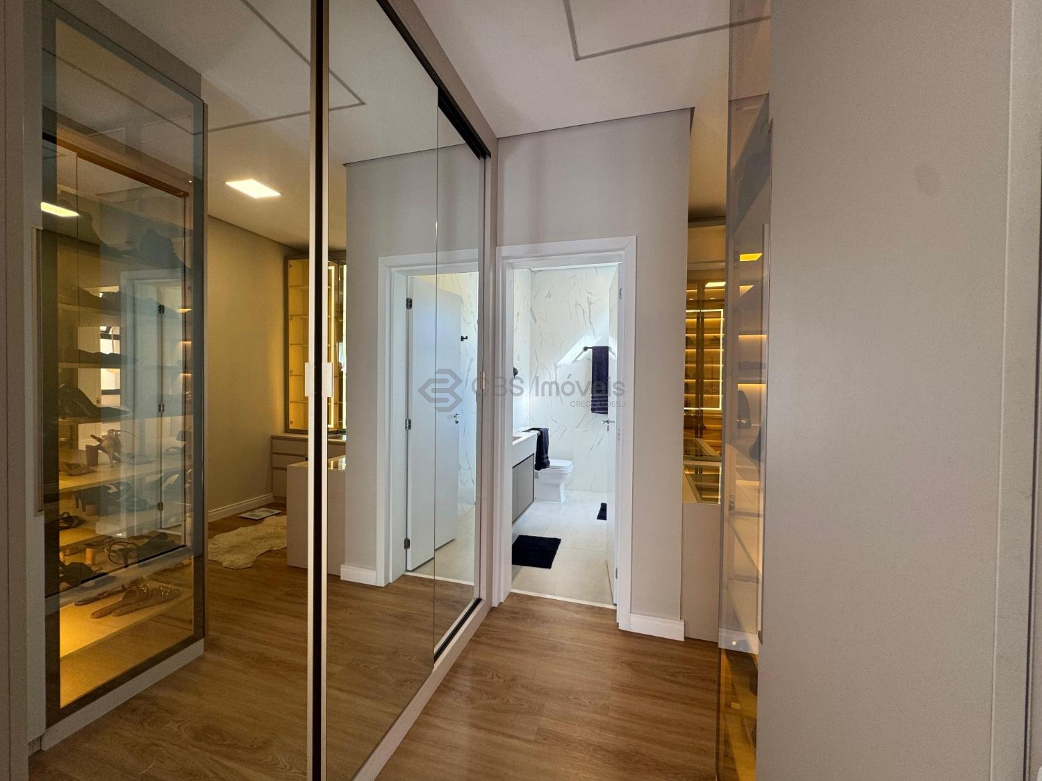 No piso superior 3 suítes, sendo a master com closet em vidro reflecta, ar condicionado, varanda, persiana elétrica.