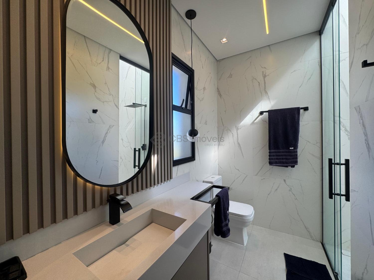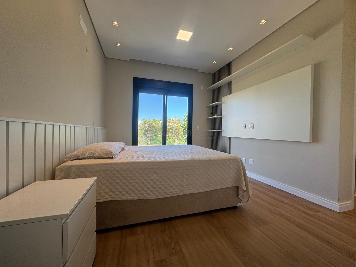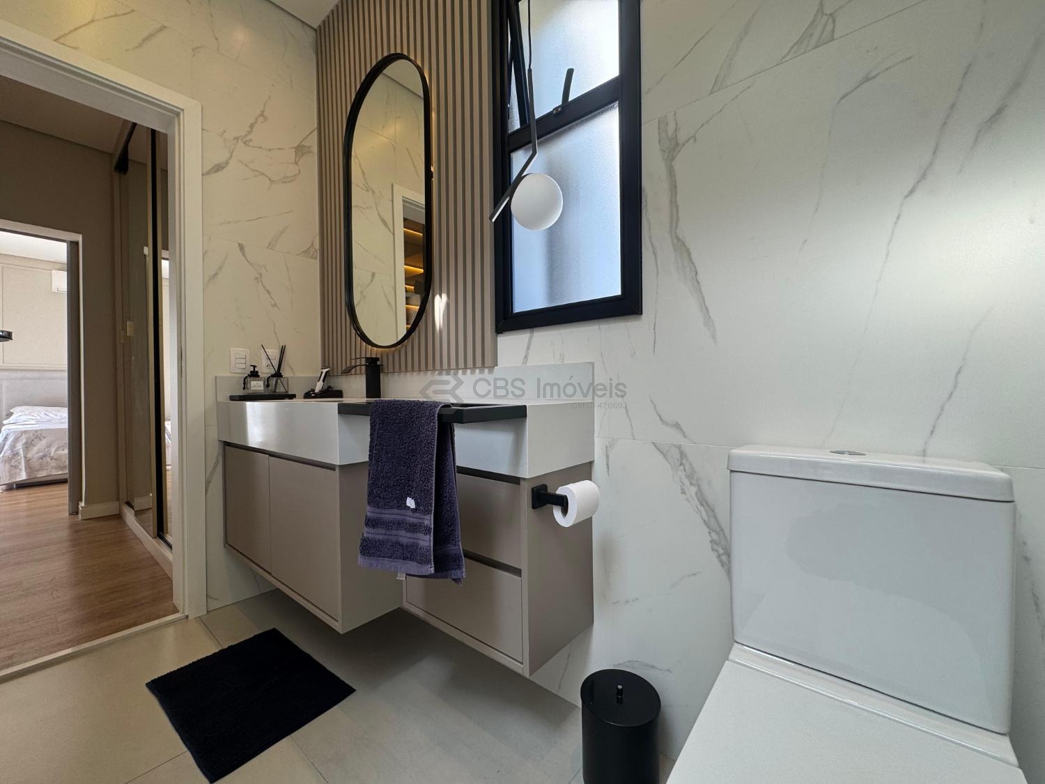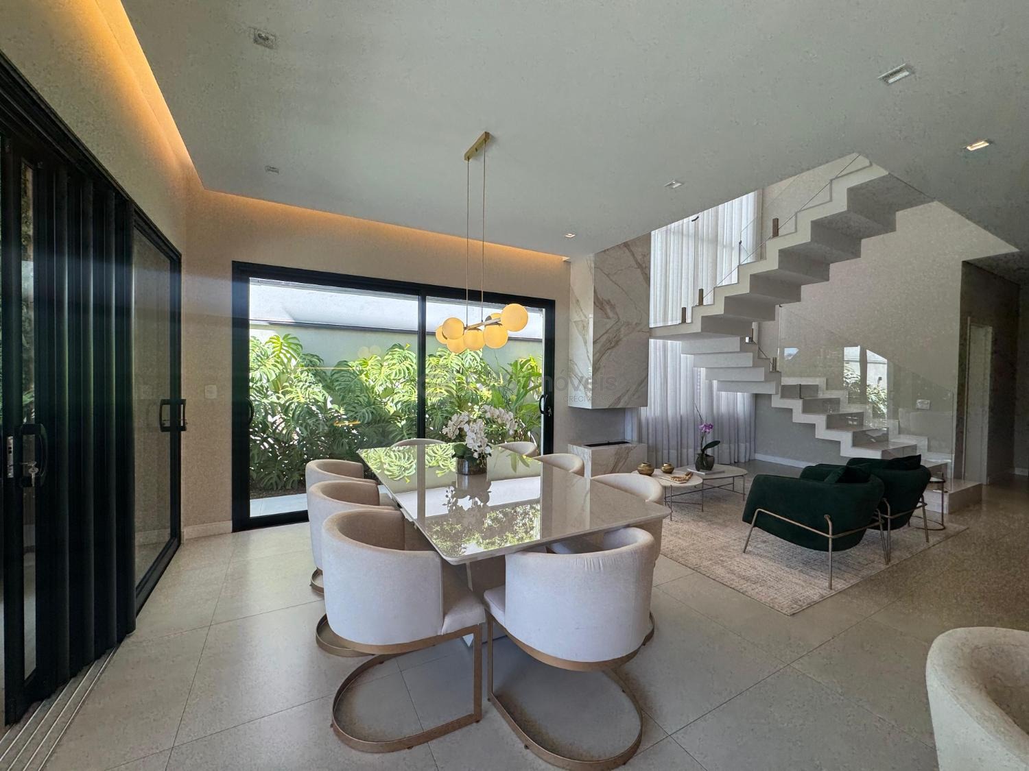 No piso superior 3 suítes, sendo a master com closet em vidro reflecta, ar condicionado, varanda, persiana elétrica.