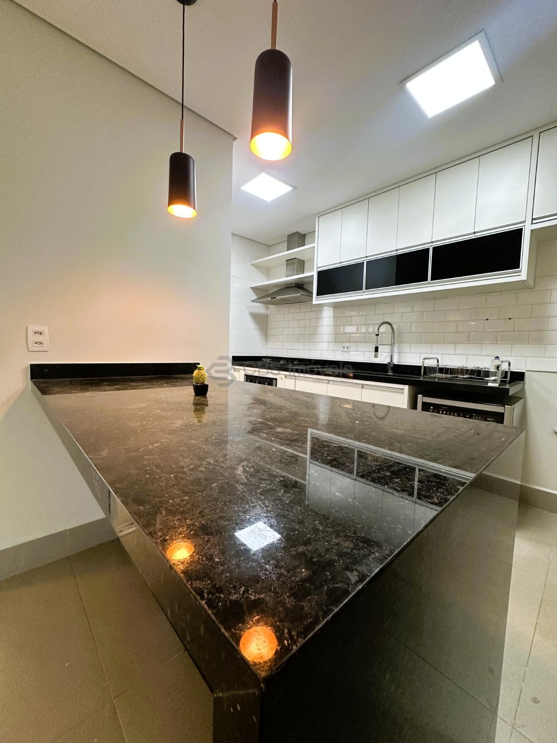 No térreo possui living para 3 ambientes com pé direito duplo e muita integração, cozinha completa, área de serviço e depósito.