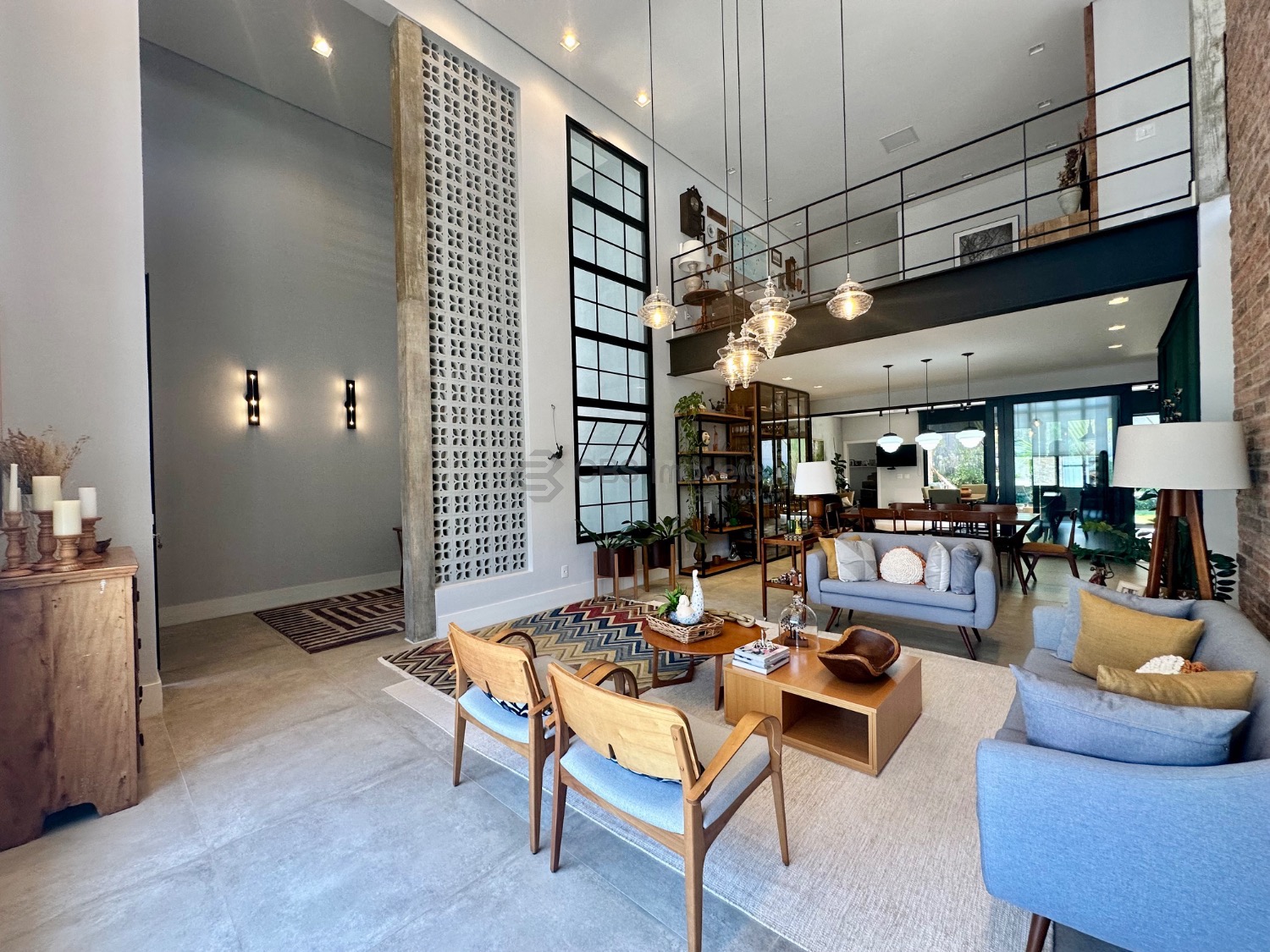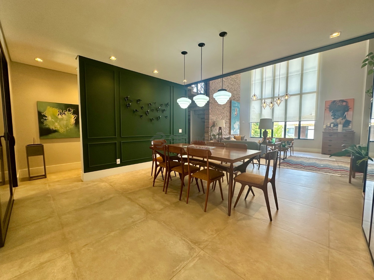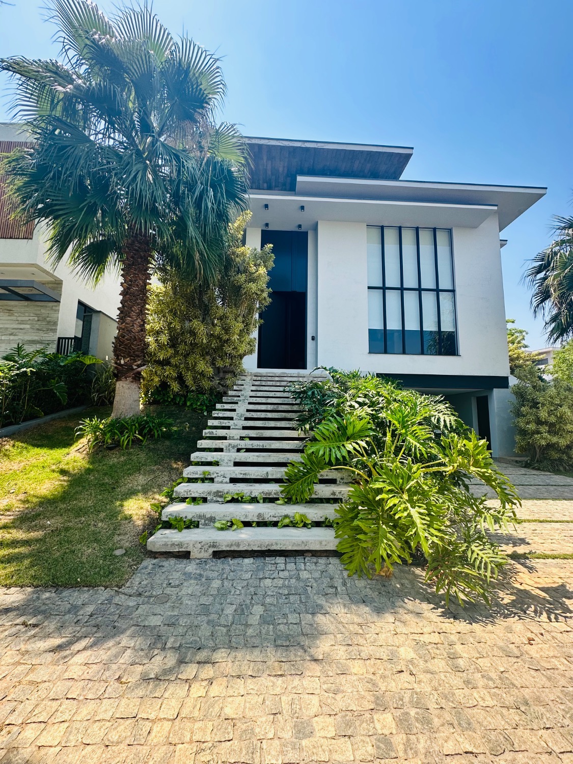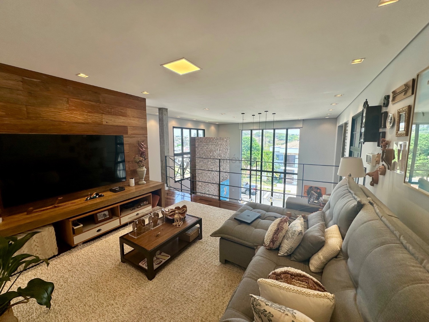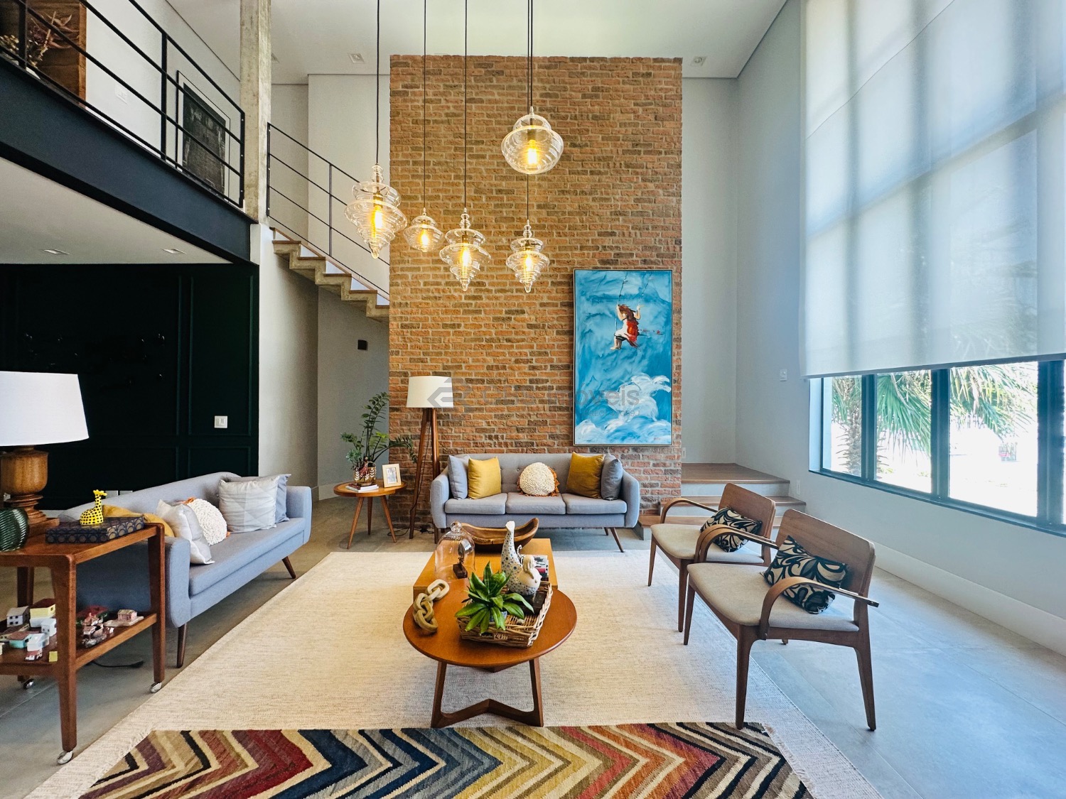 Este imóvel se destaca pelo pé-direito alto e pela integração dos espaços, oferecendo uma ampla sala para três ambientes, lavabo, escritório e depósito. No piso superior, são três suítes, todas climatizadas com ar-condicionado, sendo a master com closet e armários planejados, garantindo praticidade e sofisticação.