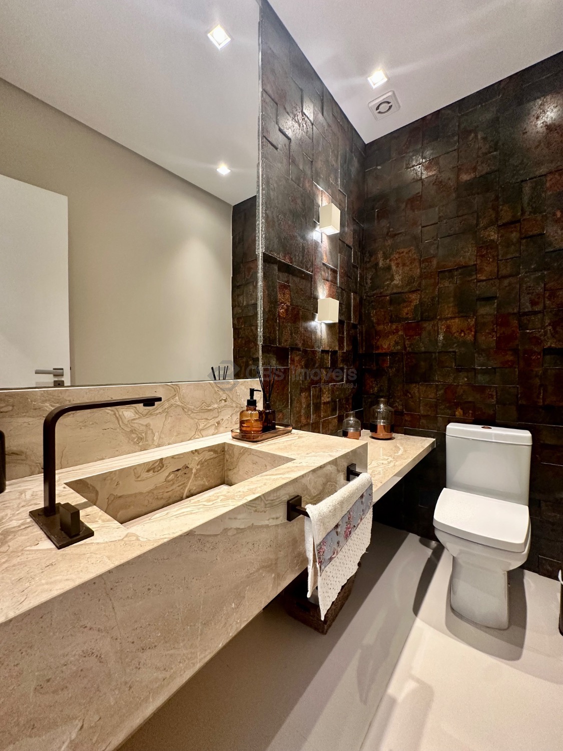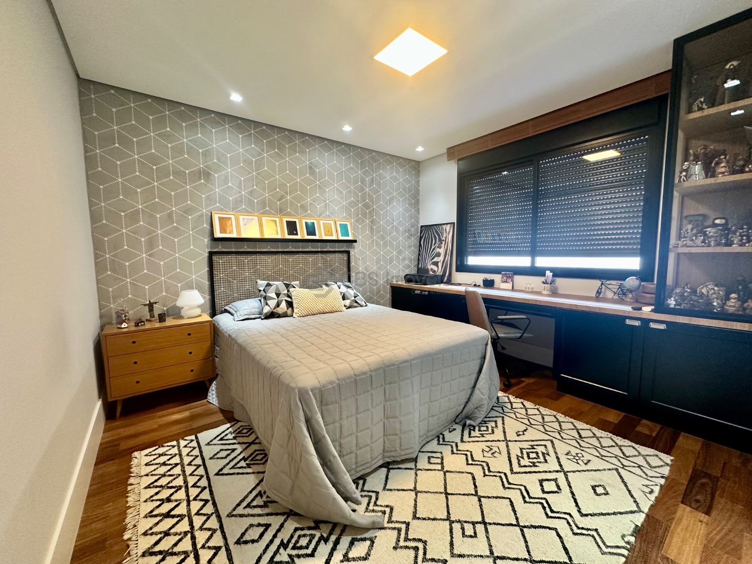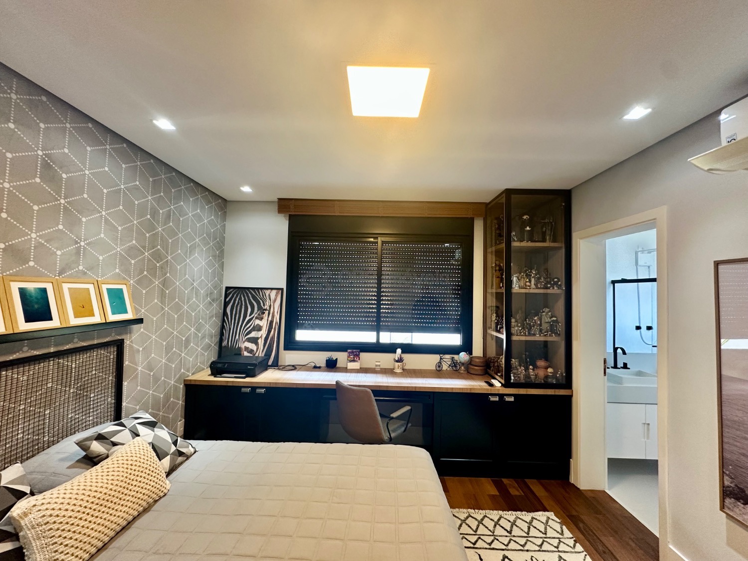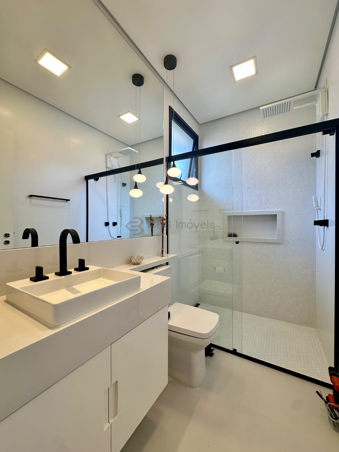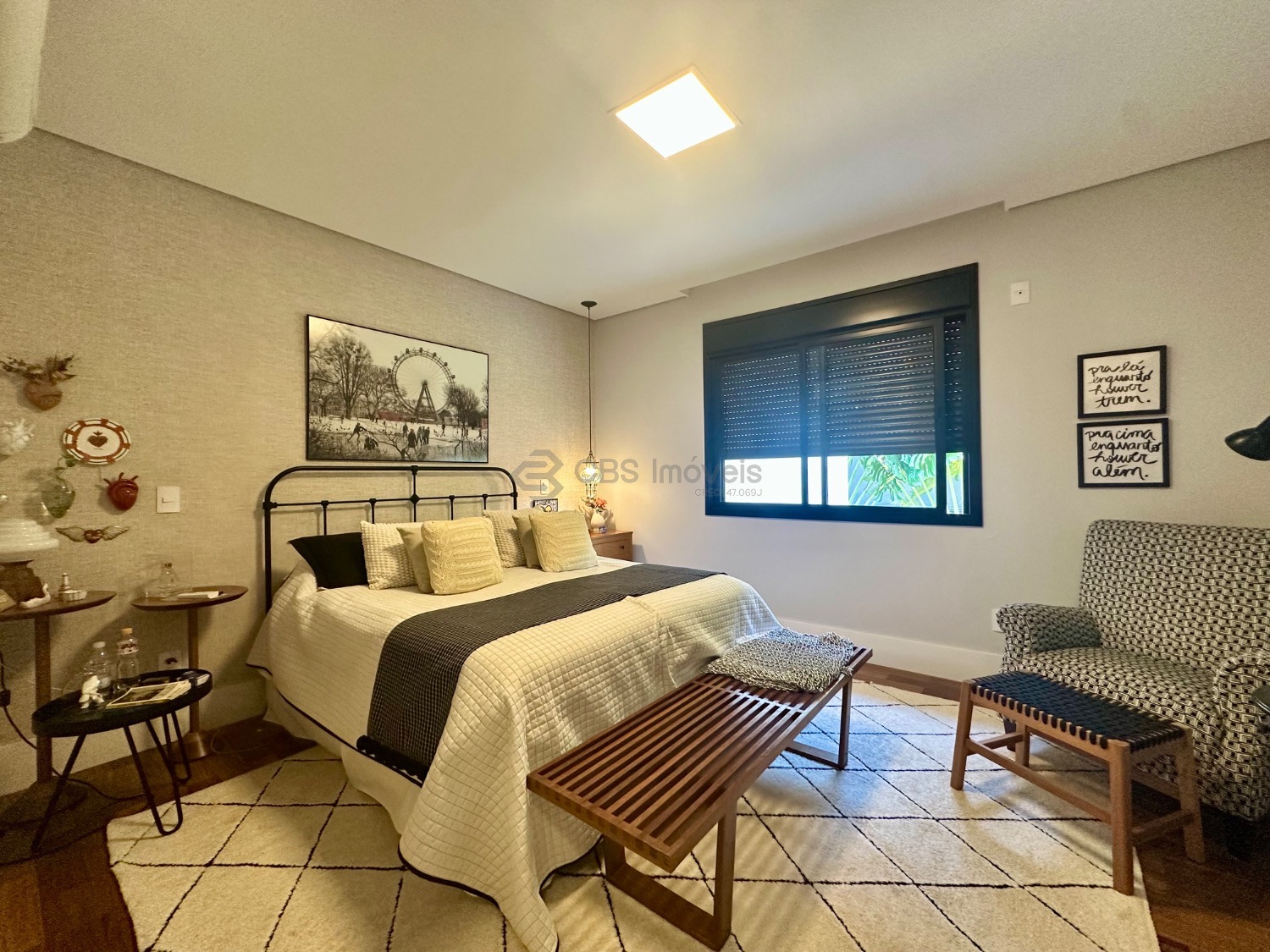 Este imóvel se destaca pelo pé-direito alto e pela integração dos espaços, oferecendo uma ampla sala para três ambientes, lavabo, escritório e depósito. No piso superior, são três suítes, todas climatizadas com ar-condicionado, sendo a master com closet e armários planejados, garantindo praticidade e sofisticação.