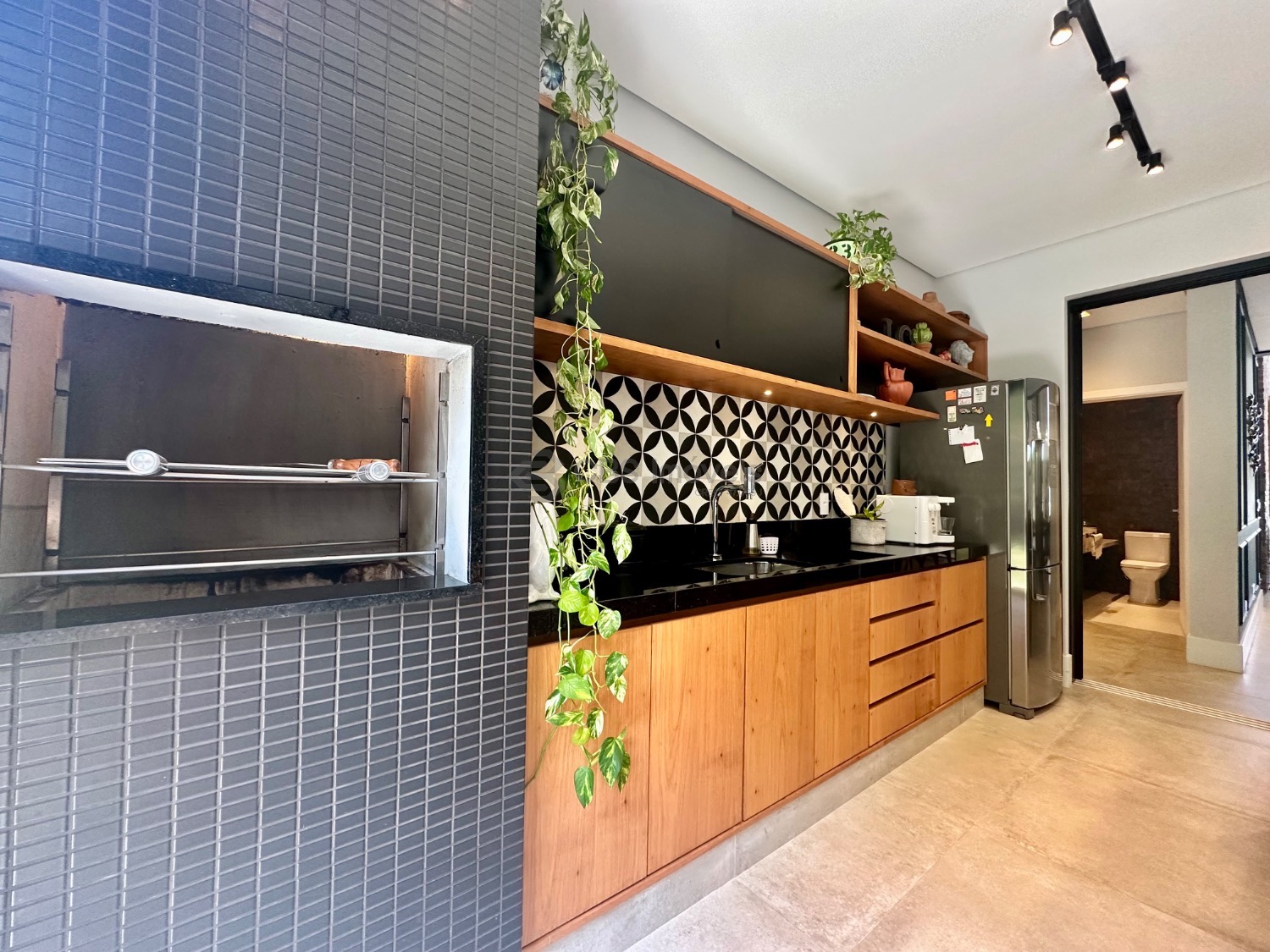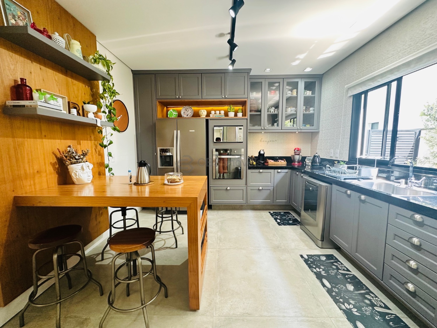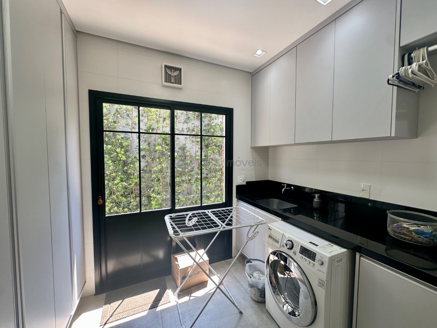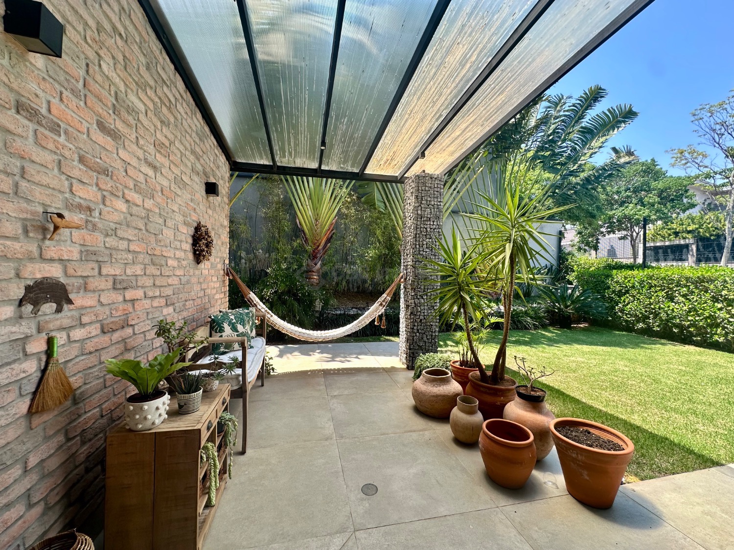 A área social conta com espaço gourmet equipado com churrasqueira, cozinha planejada, lavanderia e um agradável quintal gramado. A sala já possui preparo para instalação de ar-condicionado, e o imóvel dispõe ainda de seis vagas de garagem. Os acabamentos elevam o padrão do imóvel, com piso em cimento queimado Portobello e parquet, além do sistema de aquecimento solar com boiler e apoio elétrico.