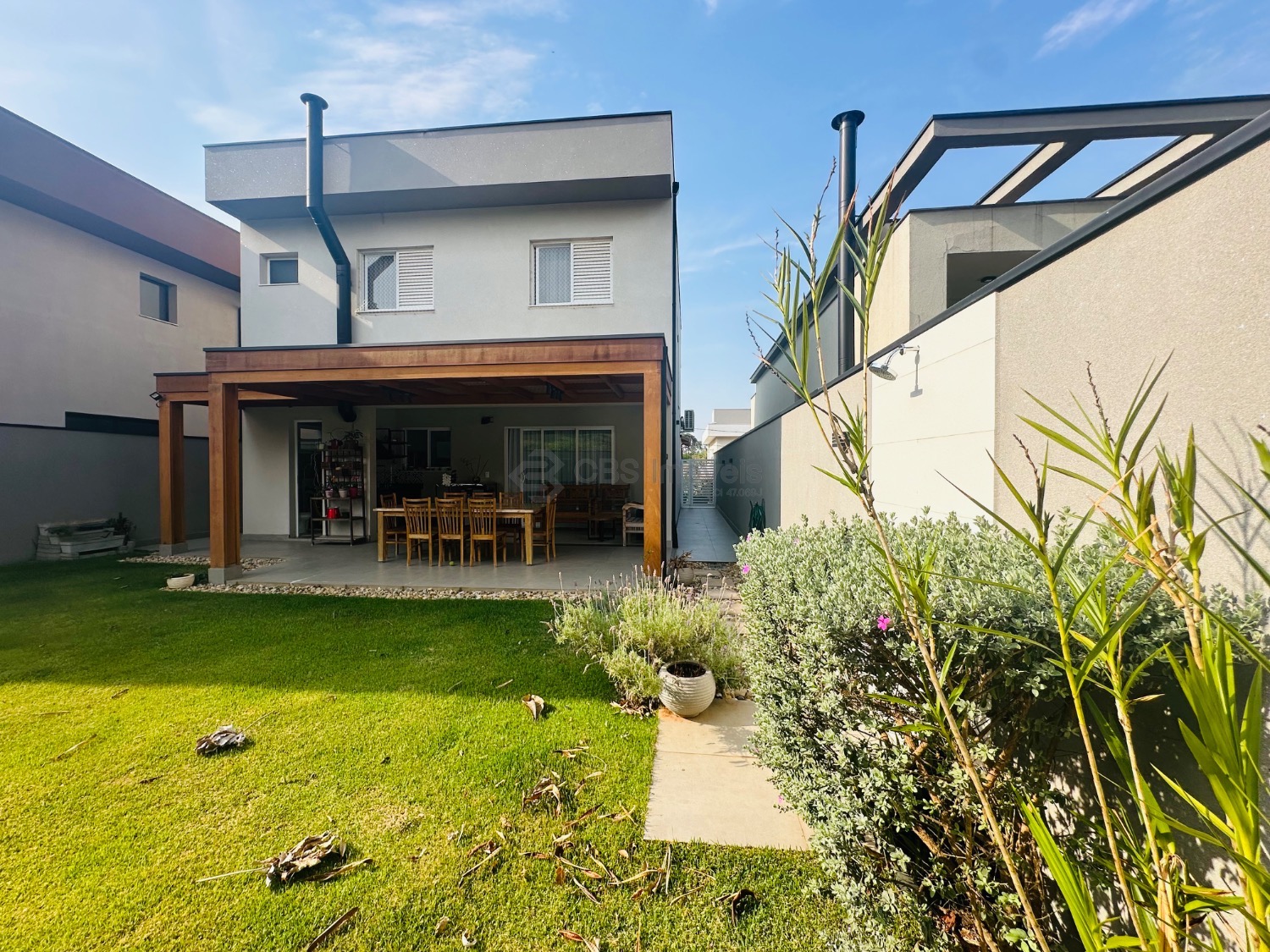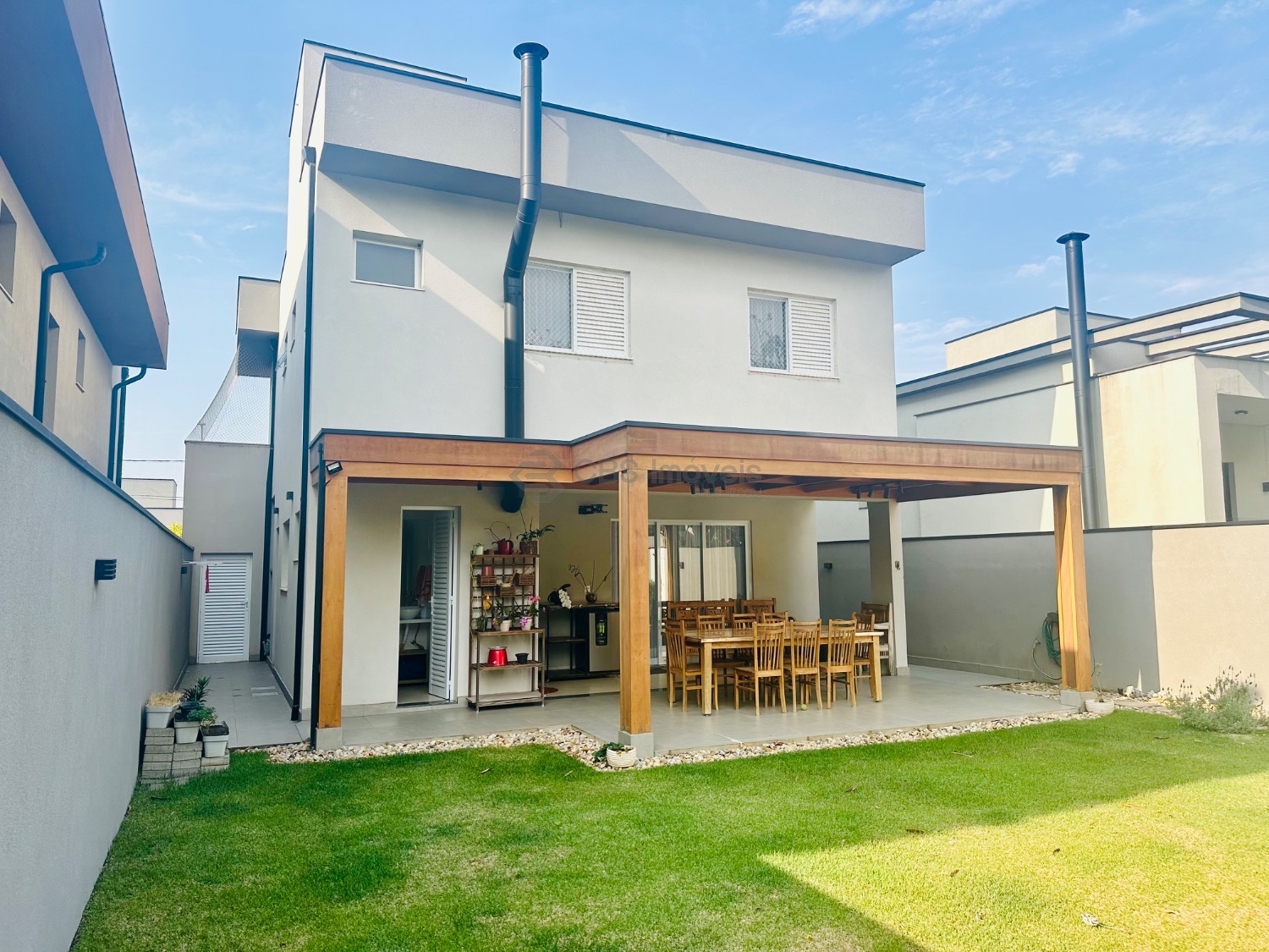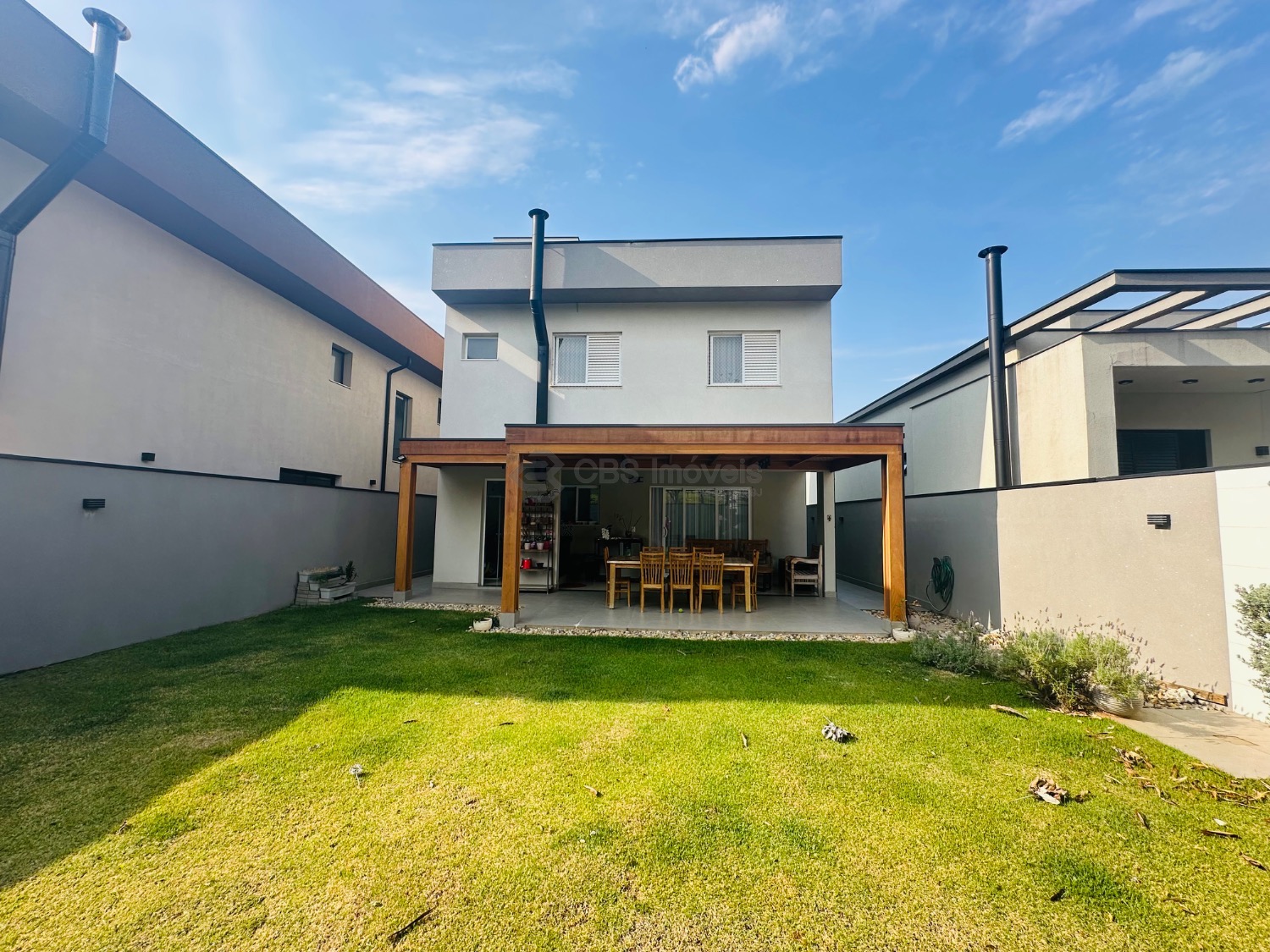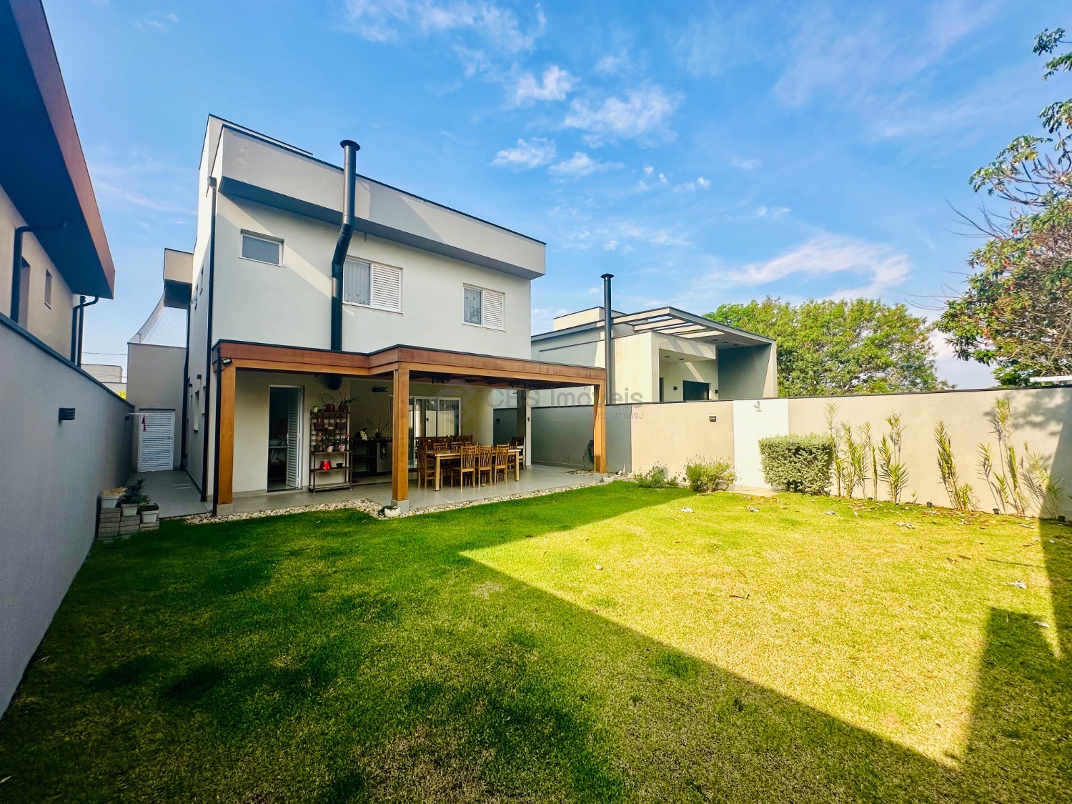 Sobrado moderno com 3 suítes, sendo uma delas master com closet e sacada, todas climatizadas com ar-condicionado. A área social é ampla e integrada, com sala de estar de pé-direito duplo, lavabo, sala de jantar e cozinha americana com armários planejados. Conta ainda com lavanderia e despensa. O espaço gourmet integrado à casa é perfeito para receber, com churrasqueira e um belo quintal gramado, ideal para momentos de lazer em família.