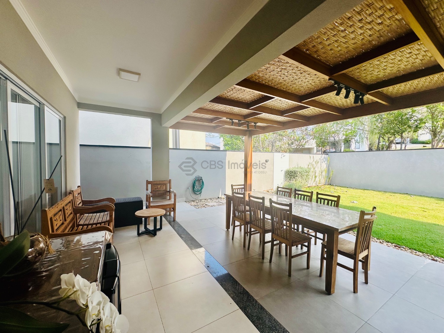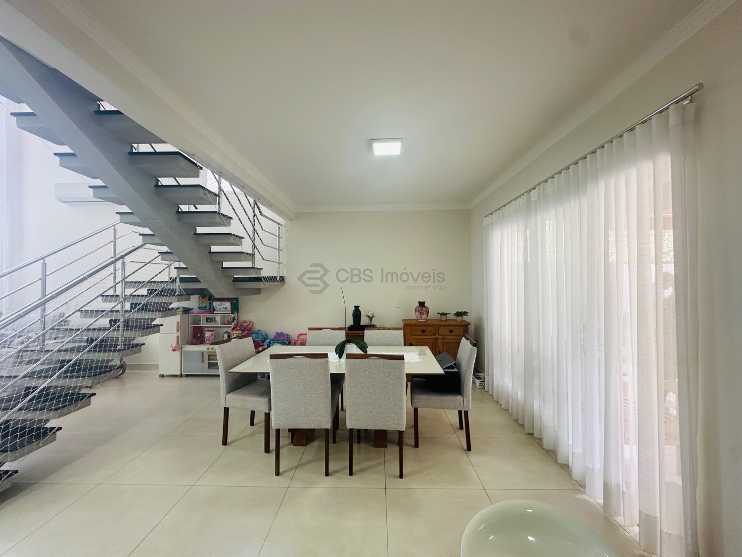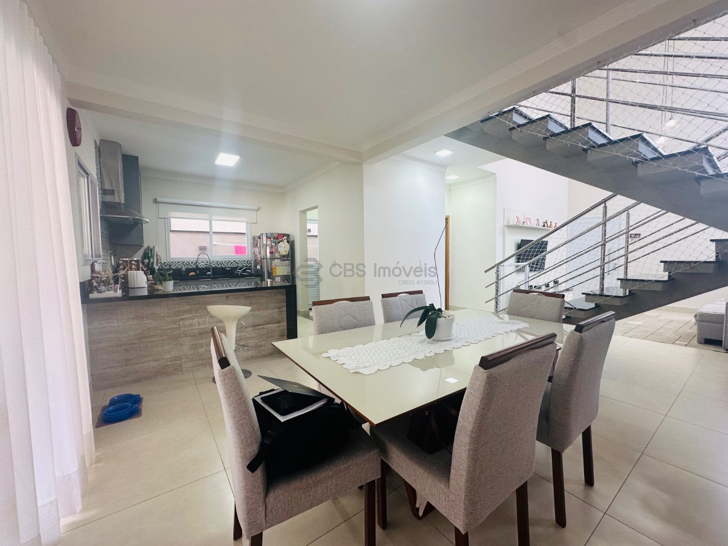 Sobrado moderno com 3 suítes, sendo uma delas master com closet e sacada, todas climatizadas com ar-condicionado. A área social é ampla e integrada, com sala de estar de pé-direito duplo, lavabo, sala de jantar e cozinha americana com armários planejados. Conta ainda com lavanderia e despensa. O espaço gourmet integrado à casa é perfeito para receber, com churrasqueira e um belo quintal gramado, ideal para momentos de lazer em família.